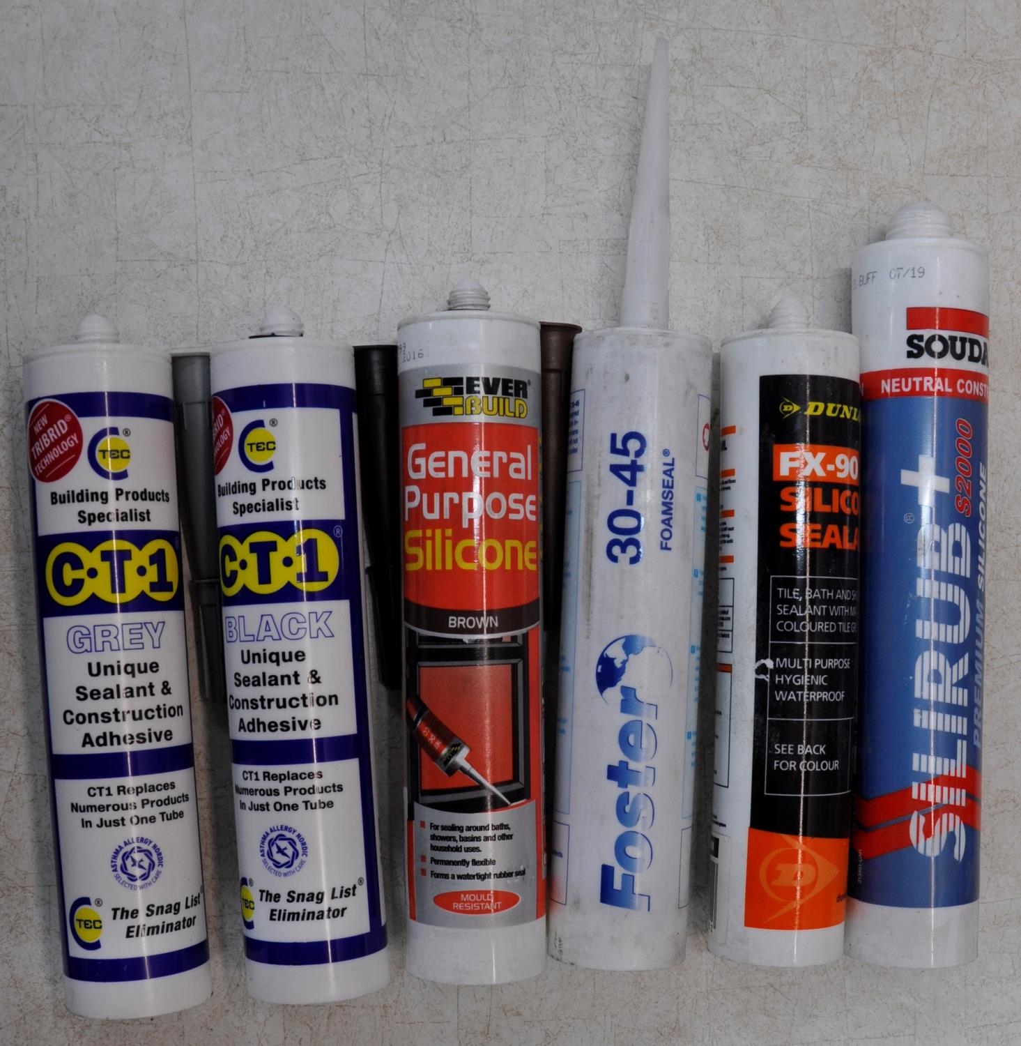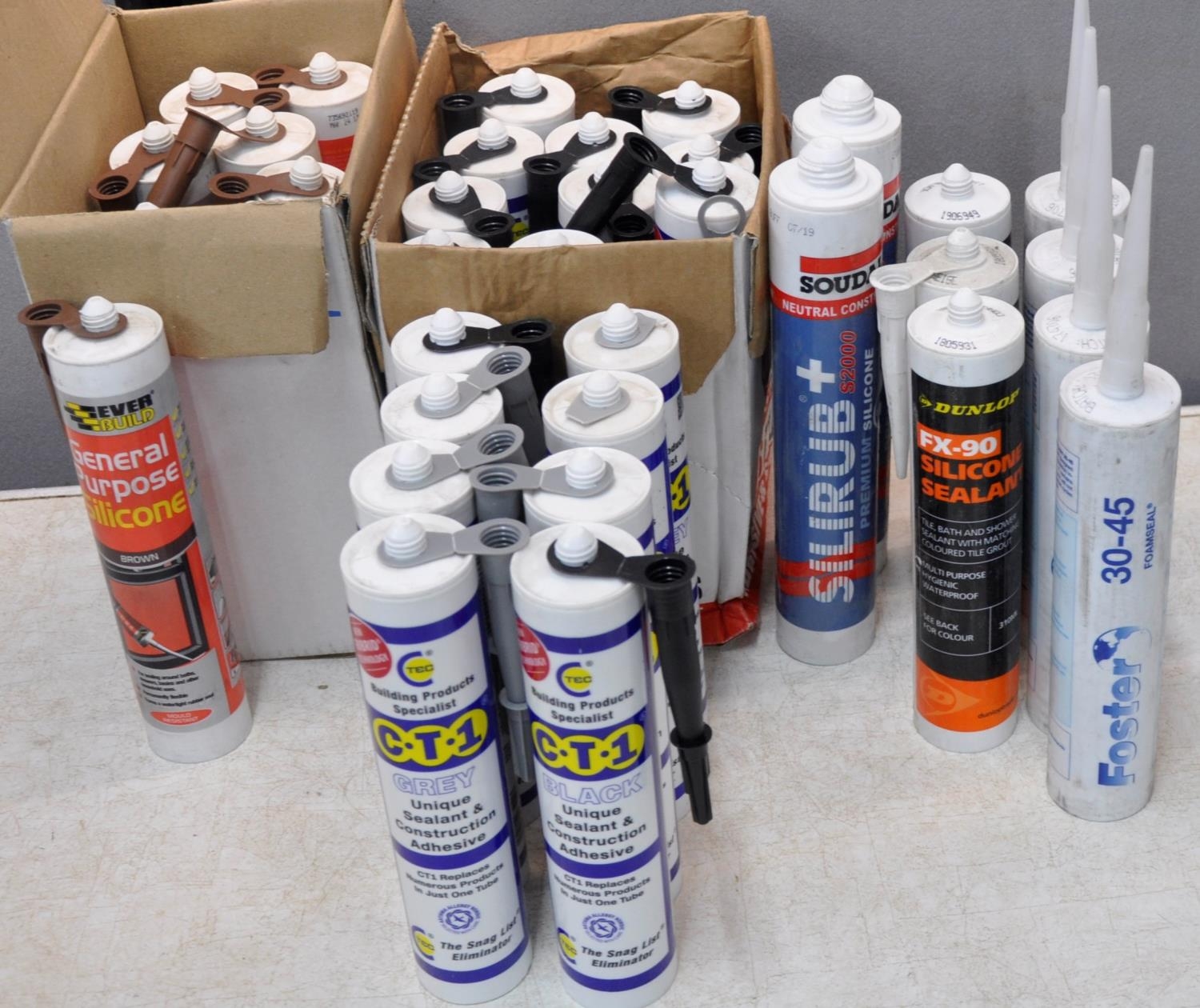 BOX OF VARIOUS SEALANTS AND ADHESIVES