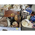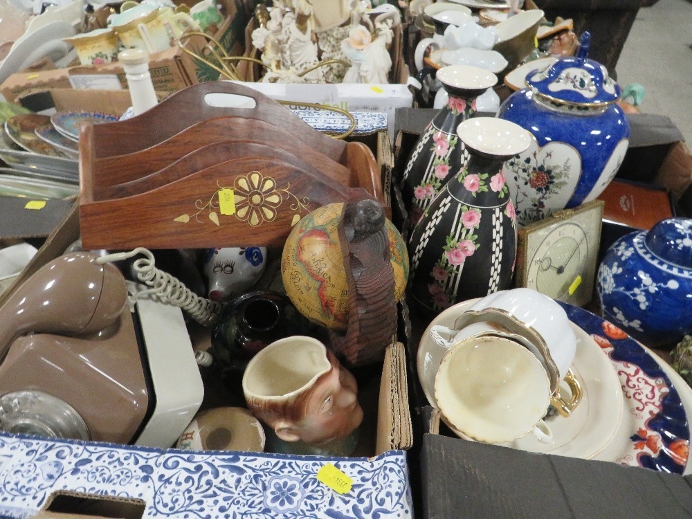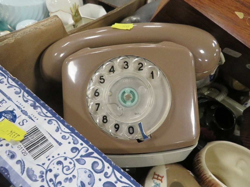 Two trays of collectables to include ceramics, vintage telephone etc