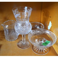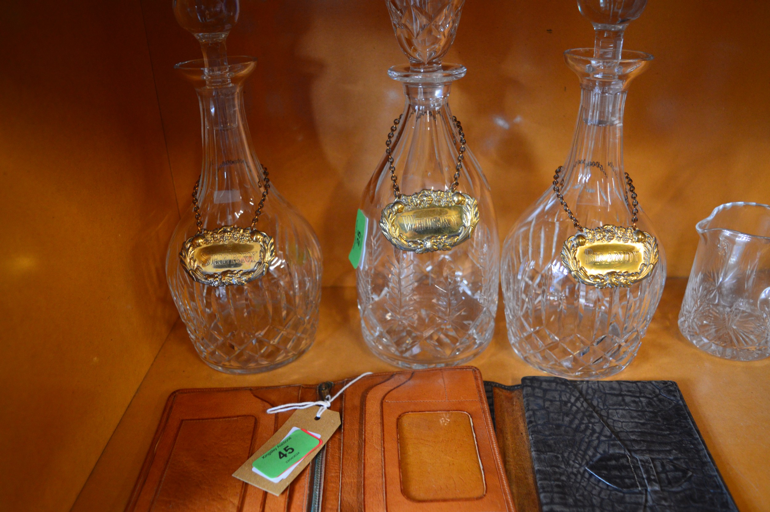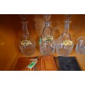 Pair of Crystal Decanters Plus One Etched Decanter, Plus Set of Three Spirits Labels