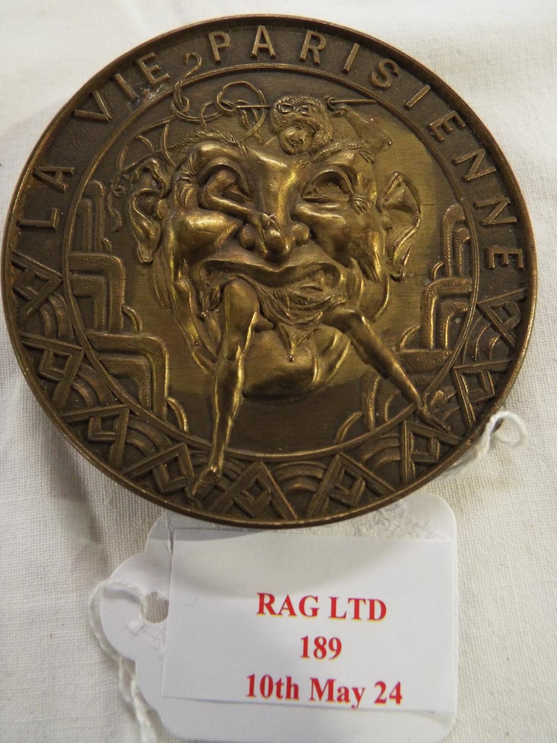 A vintage Deans & Adams of London 'La Vie Parisienne' brass belt buckle