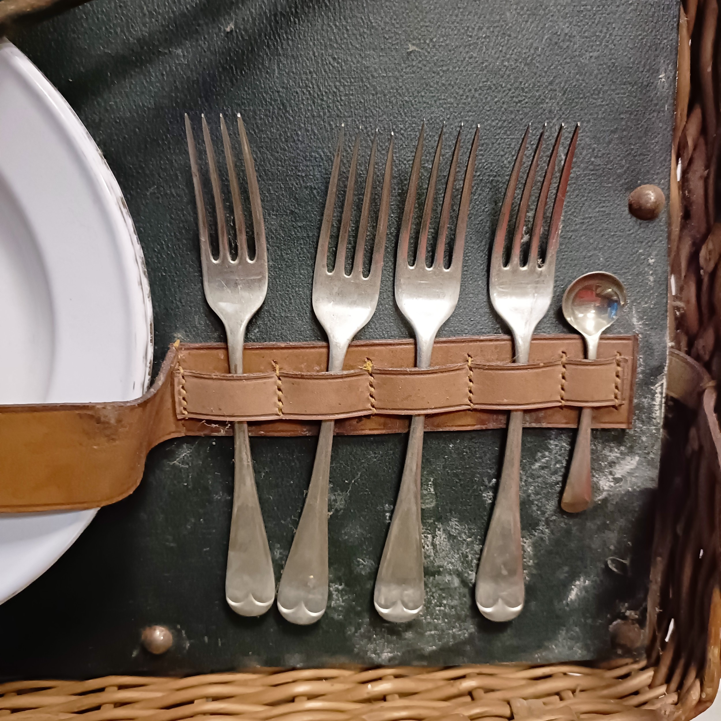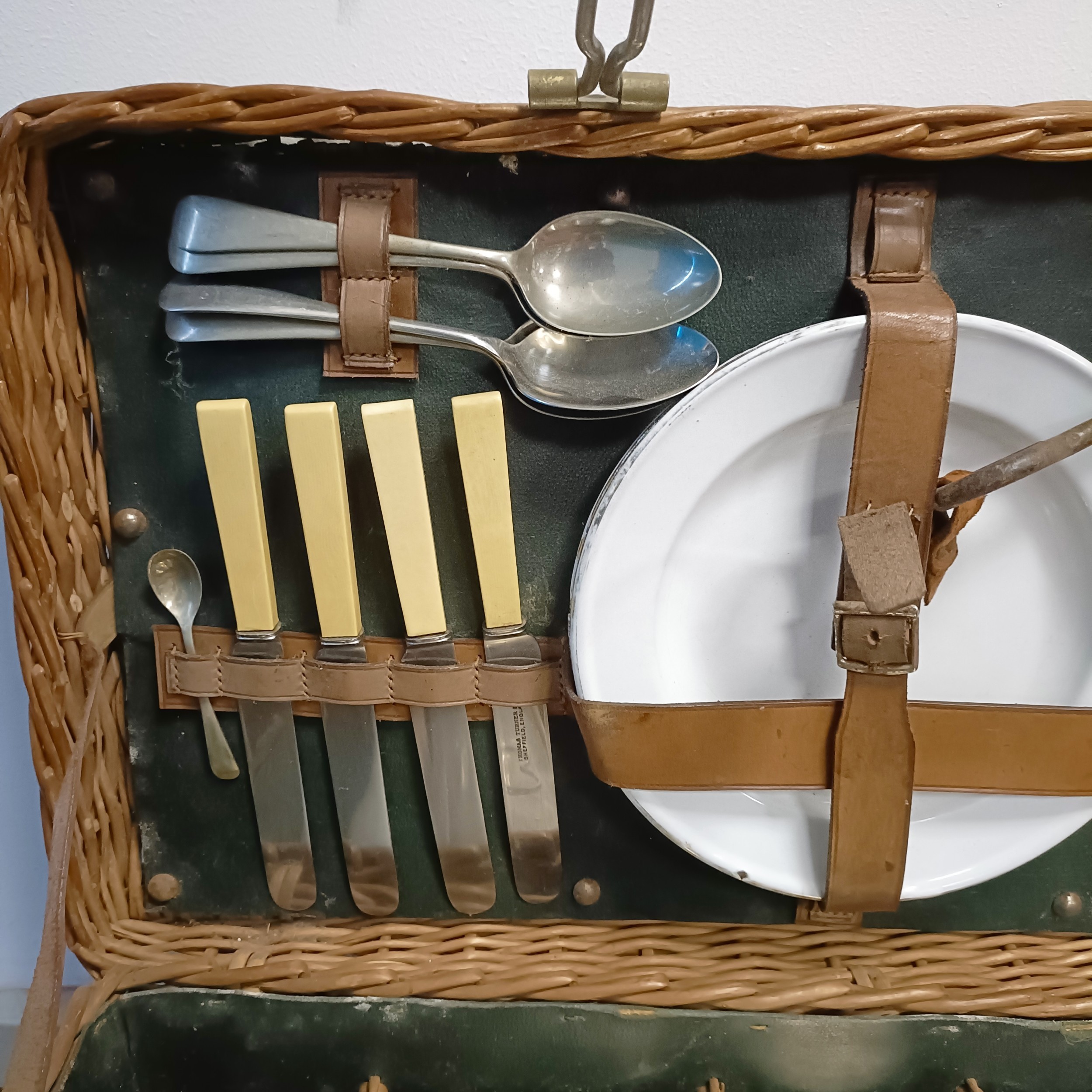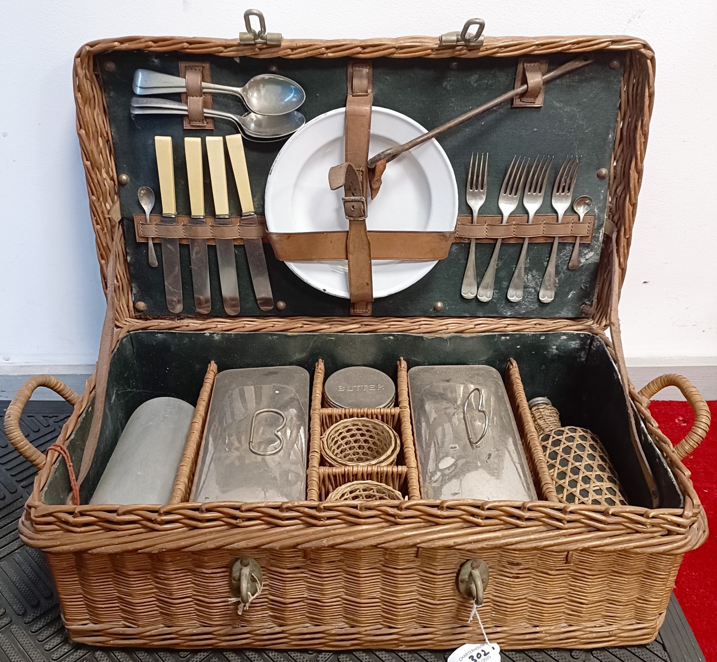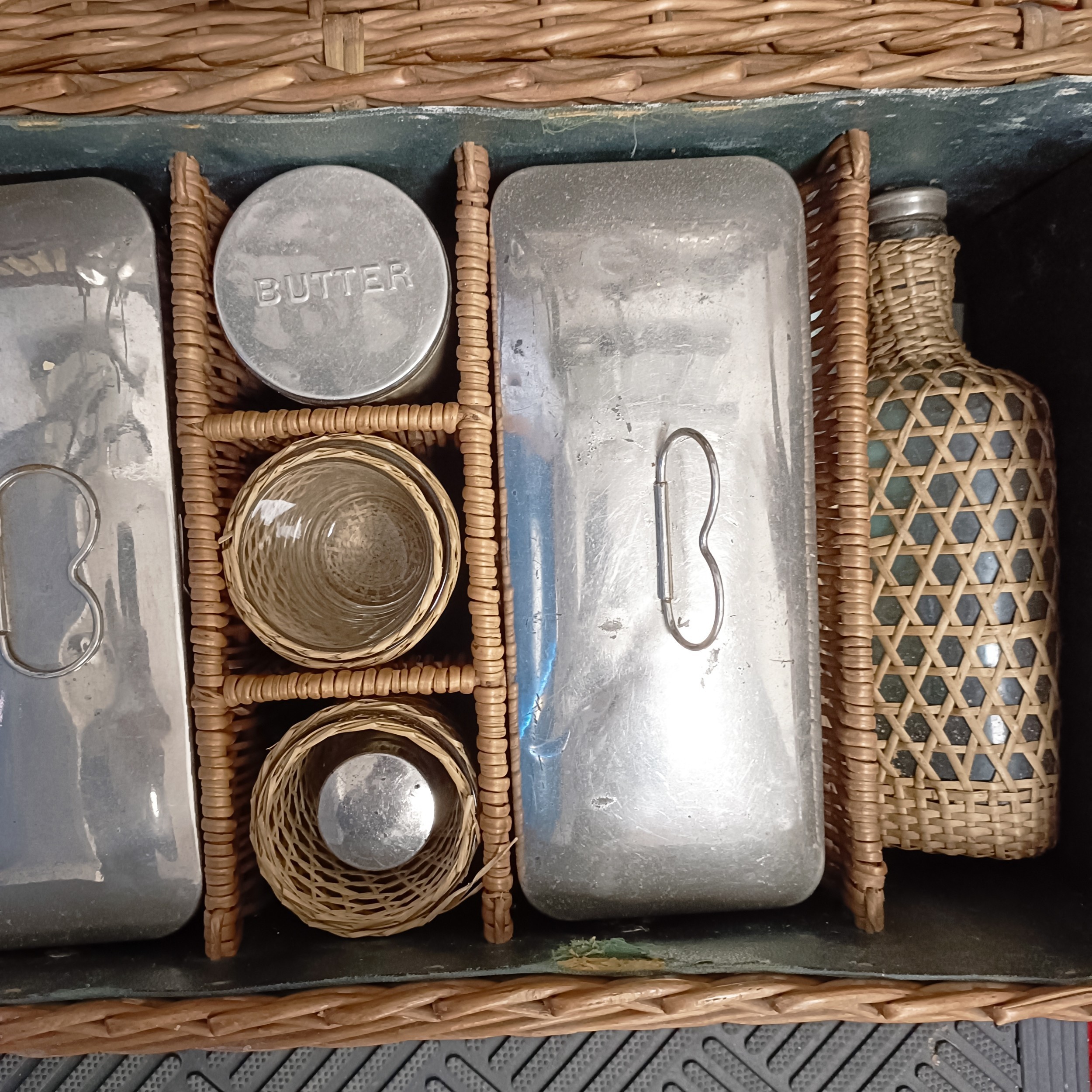 An early 20th century wicker pic-nic set, 69 cm wide (over handles)