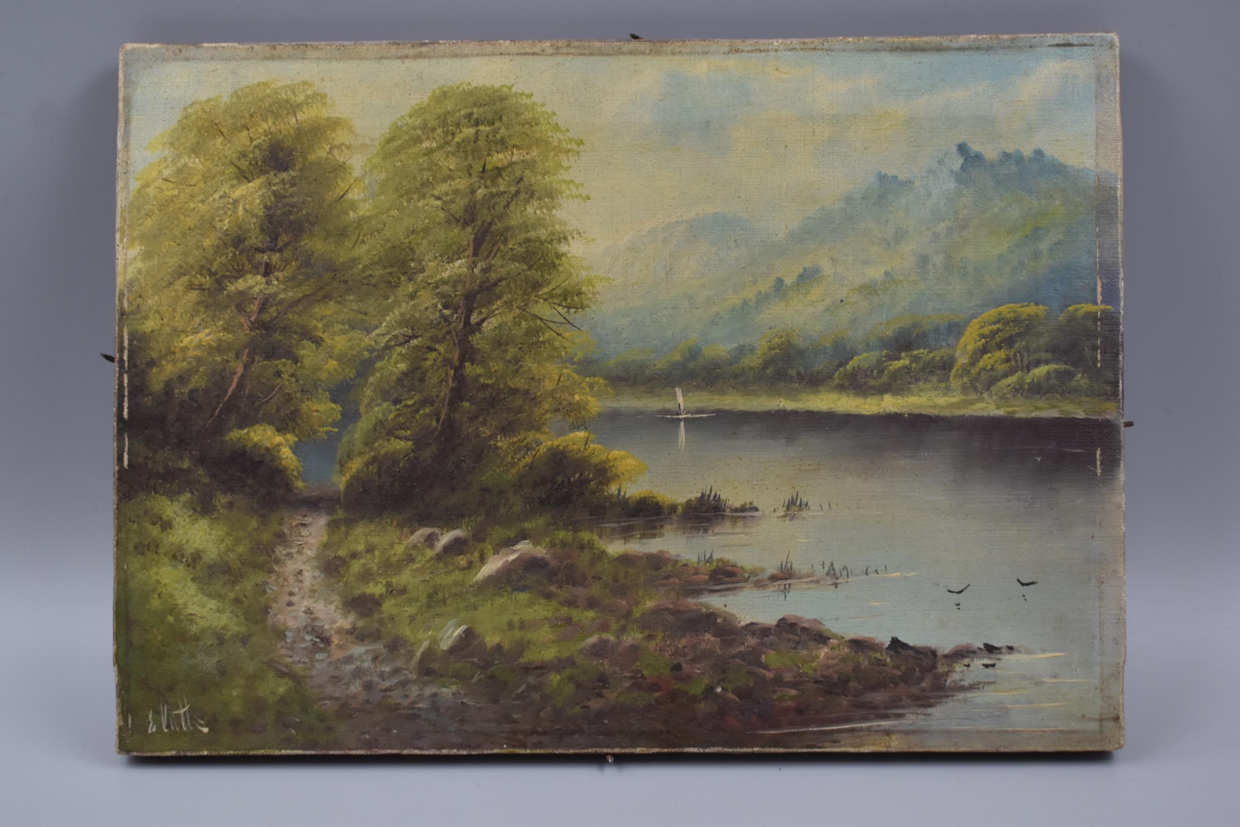Antique Oil on Canvass of Lakeland Scene with Signature to Bottom Left Corner (14" x 10")