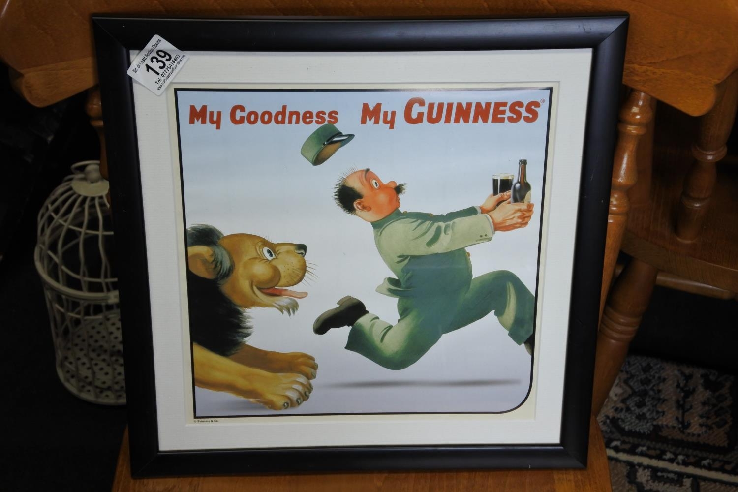 A framed Guinness print, reading 'My Goodness, My Guinness'.