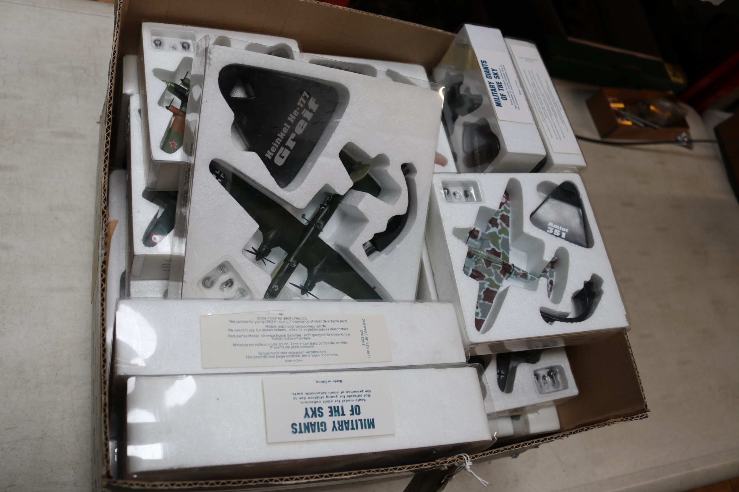 30+ Atlas part works Aircraft models in various sizes, "Military Giants Of The Sky". Includes Illouchine DB-3, Heinkel He -177, Cant Z-1007bis Alcione, Couriss C-46 Commando, Avro Lancaster Admiral Prune B29 Super Fortress, B-17F Memphis Belle, Lockheed SR-71 Blackbird, Mitsubishi G4M1 " BETTY", and others. All contained on the polystyrene packaging. Some have been displayed, There might also be parts missing or broken. GC-VGC £60-80