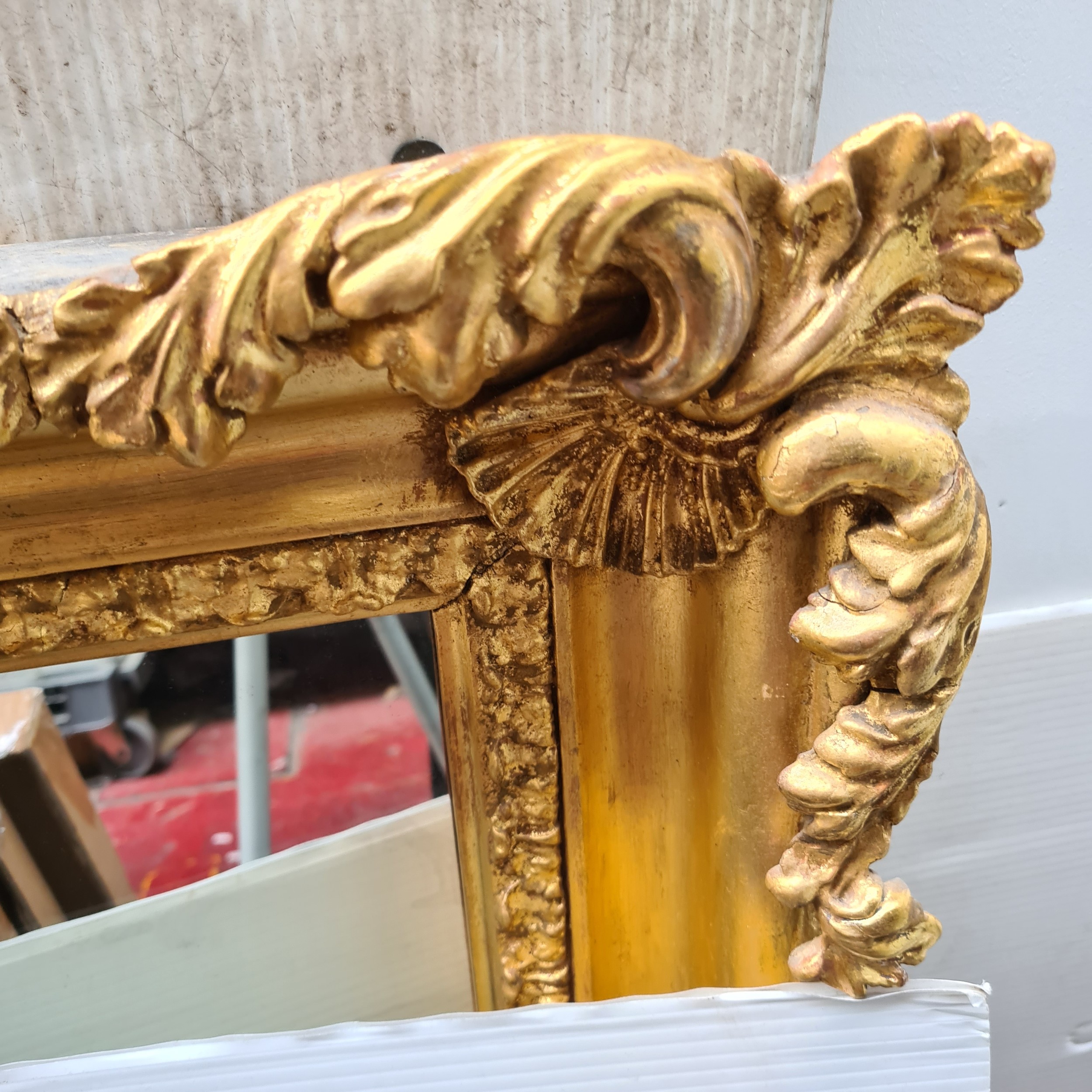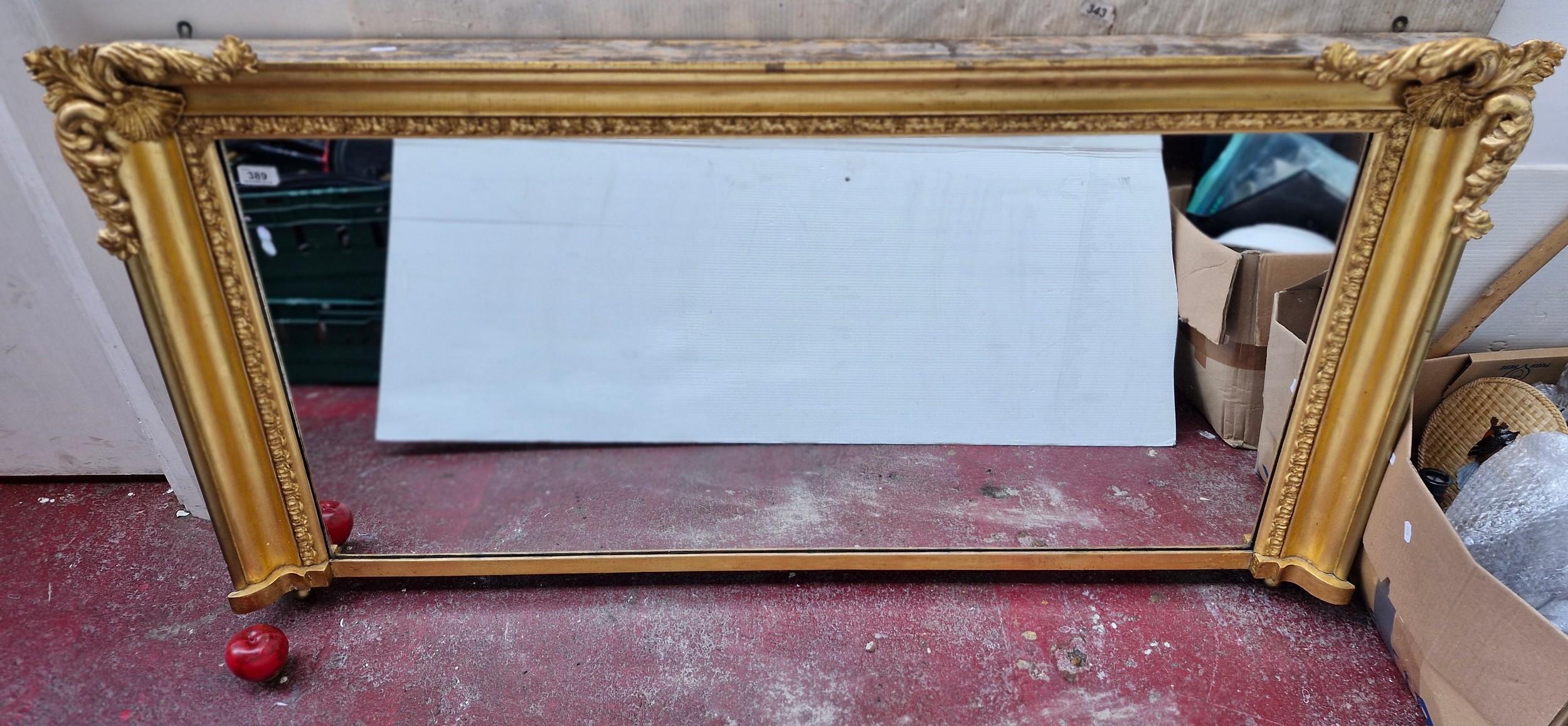 Star Lot : A lovely large Antique gilt horizontal mirror with scroll , shell and foliate motifs. Dimensions - 147CM x 73CM. From A lovely house on Morehampton Terrace.