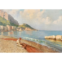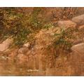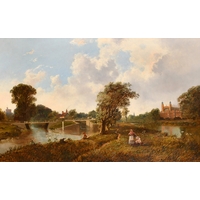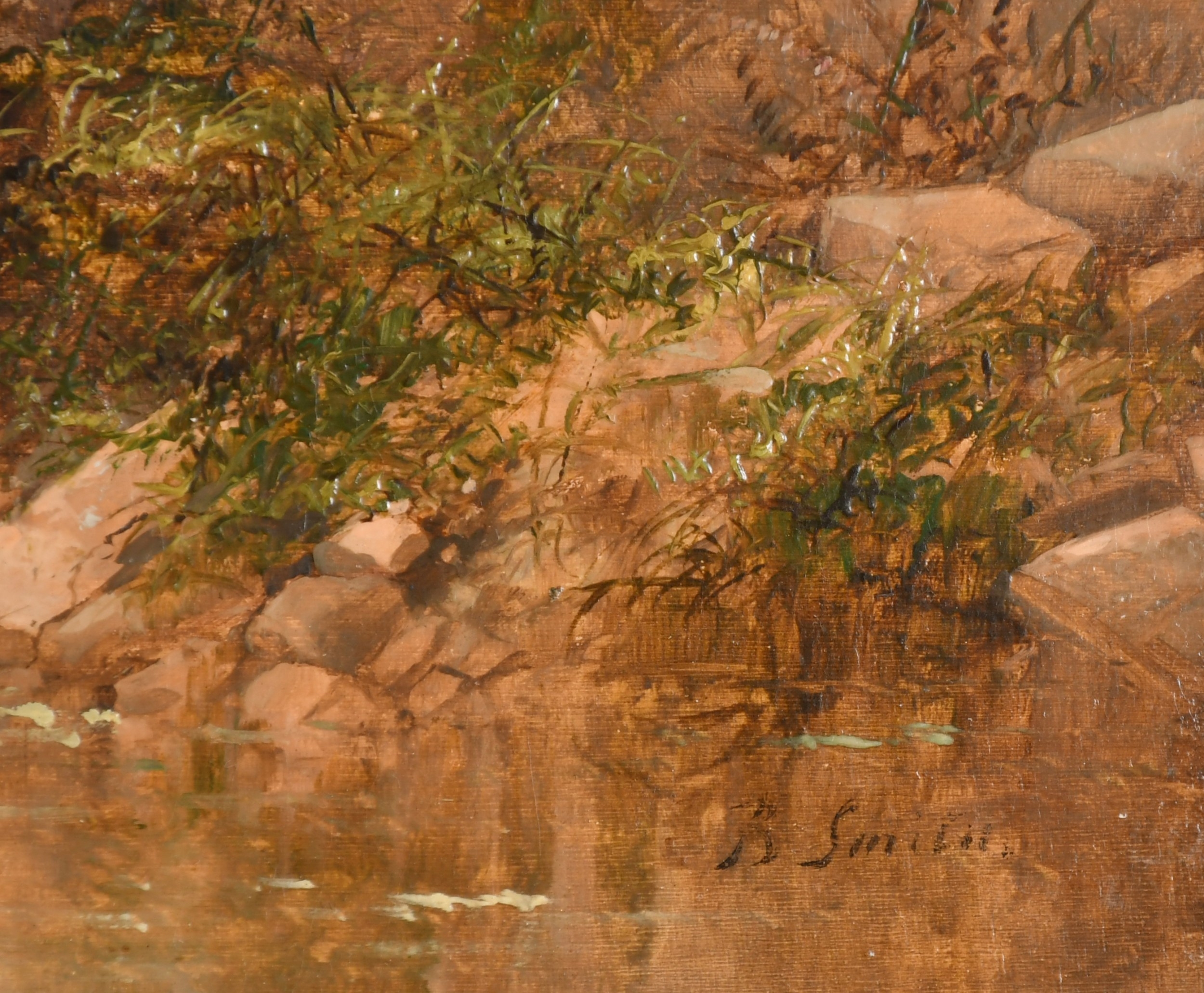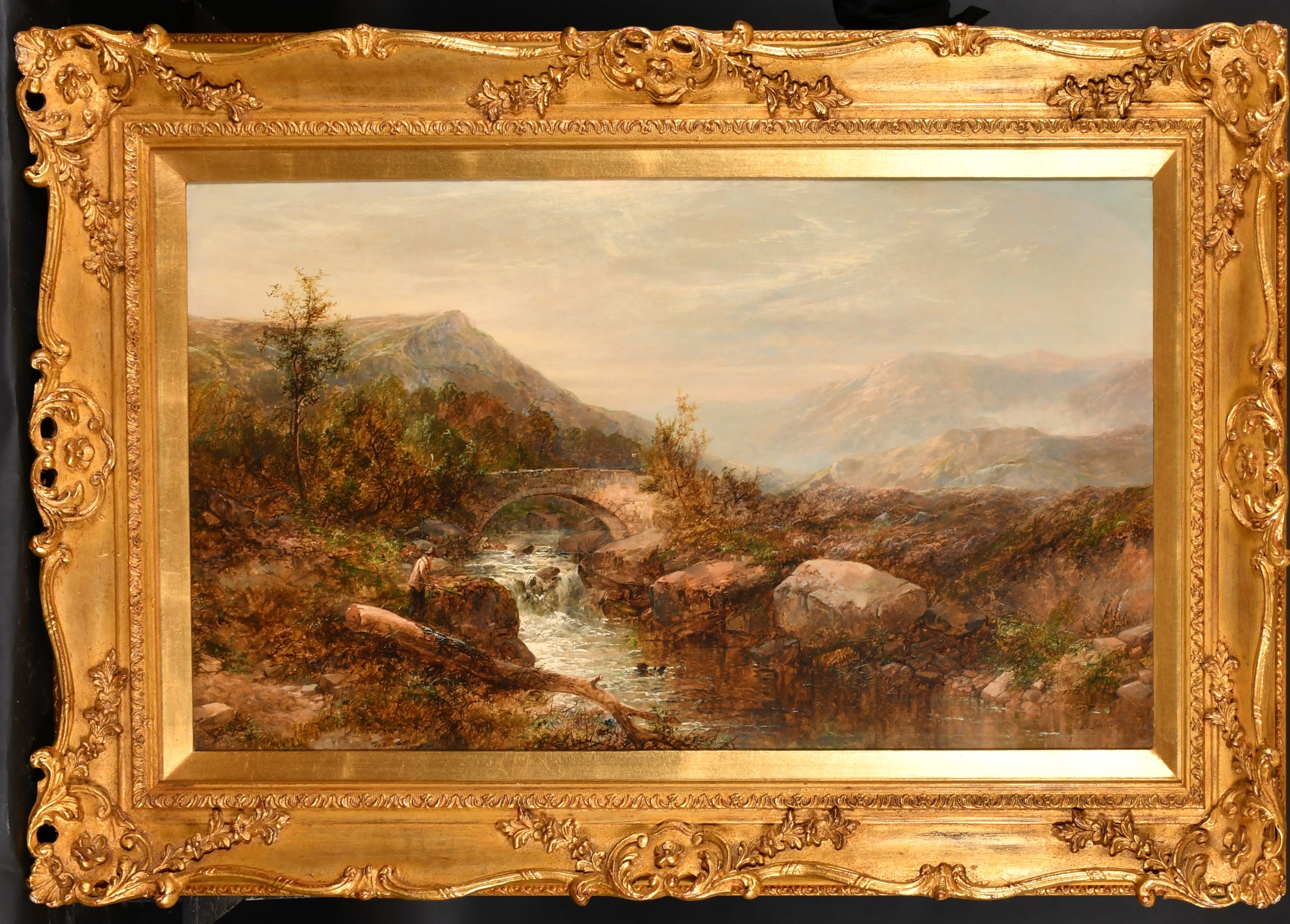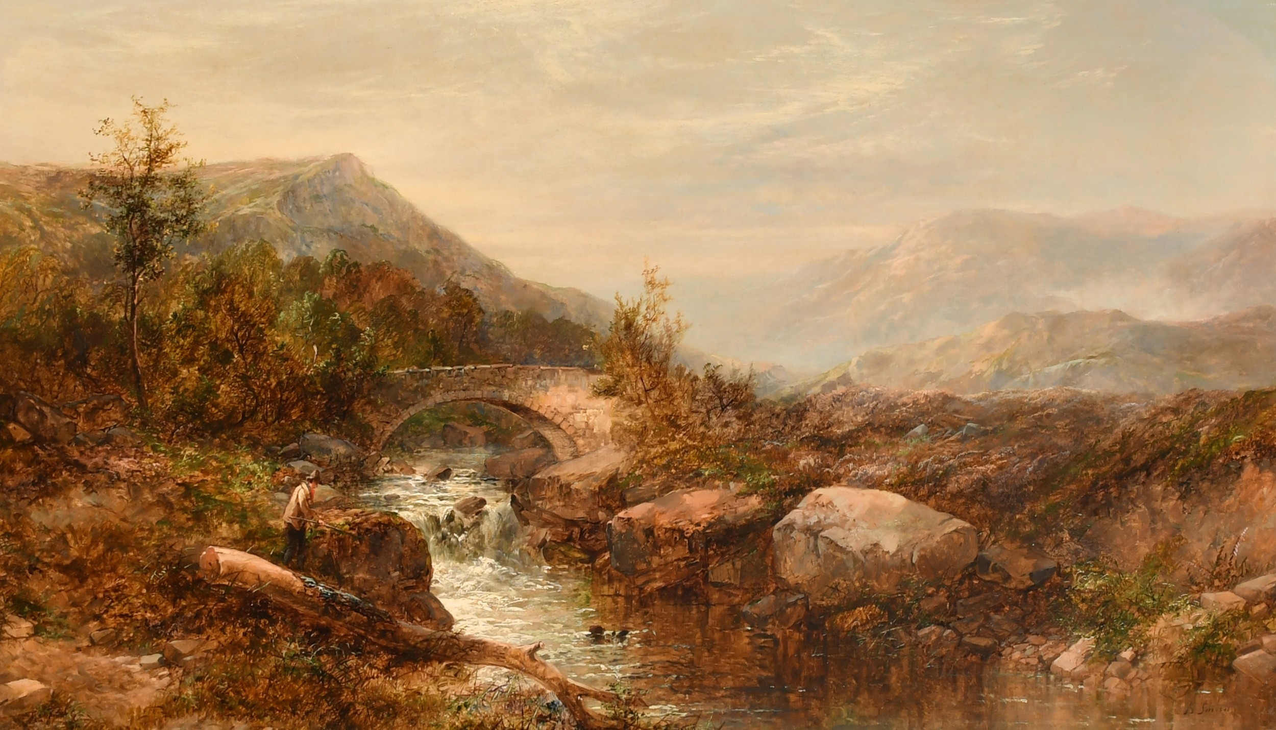 John Brandon Smith (1848-1884) British. A Fisherman in a River Landscape, Oil on canvas, Signed, 18" x 32" (45.7 x 81.3cm)