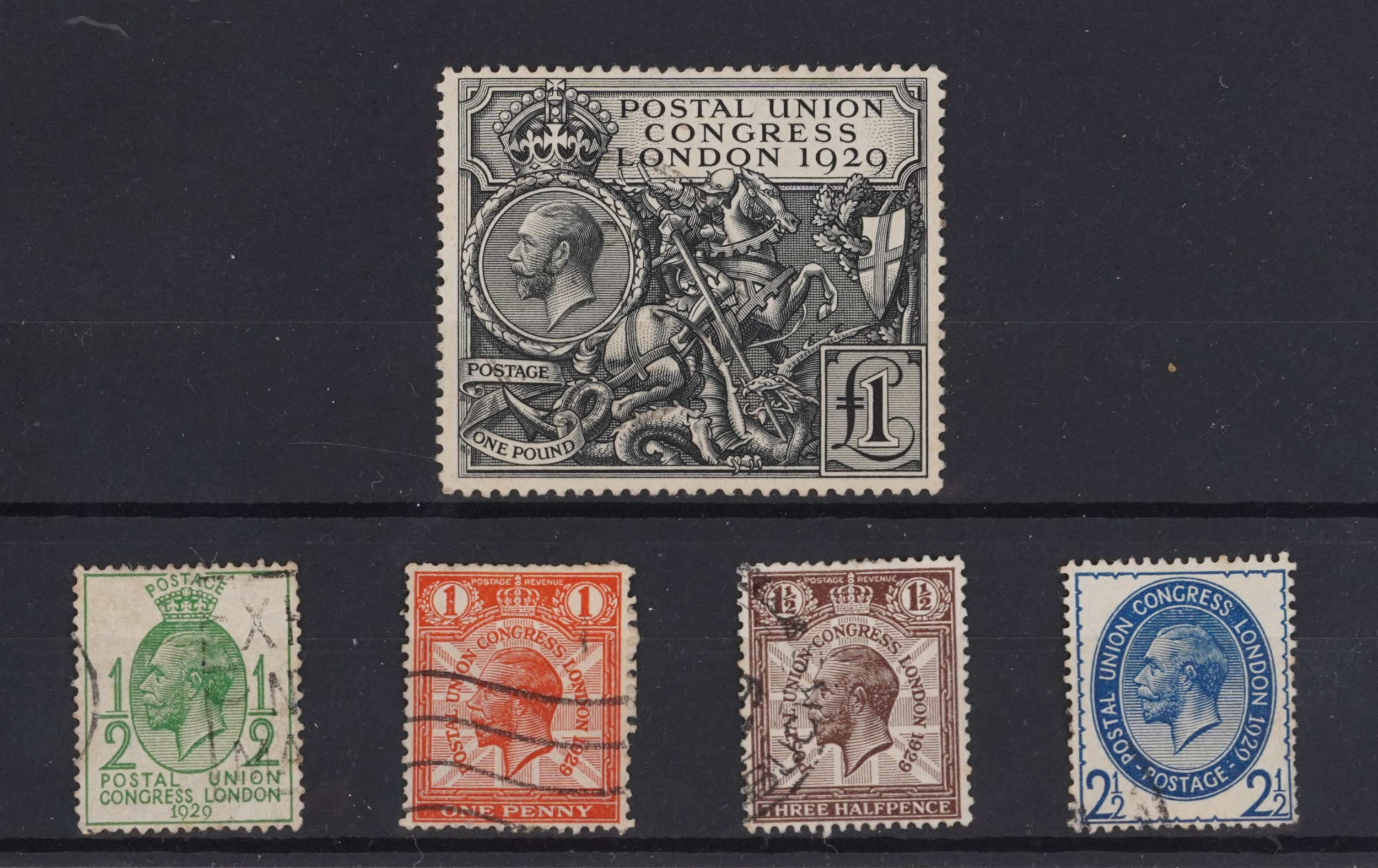 British 1929 Postal Union five stamp set including the one pound Black in very lightly used condition.