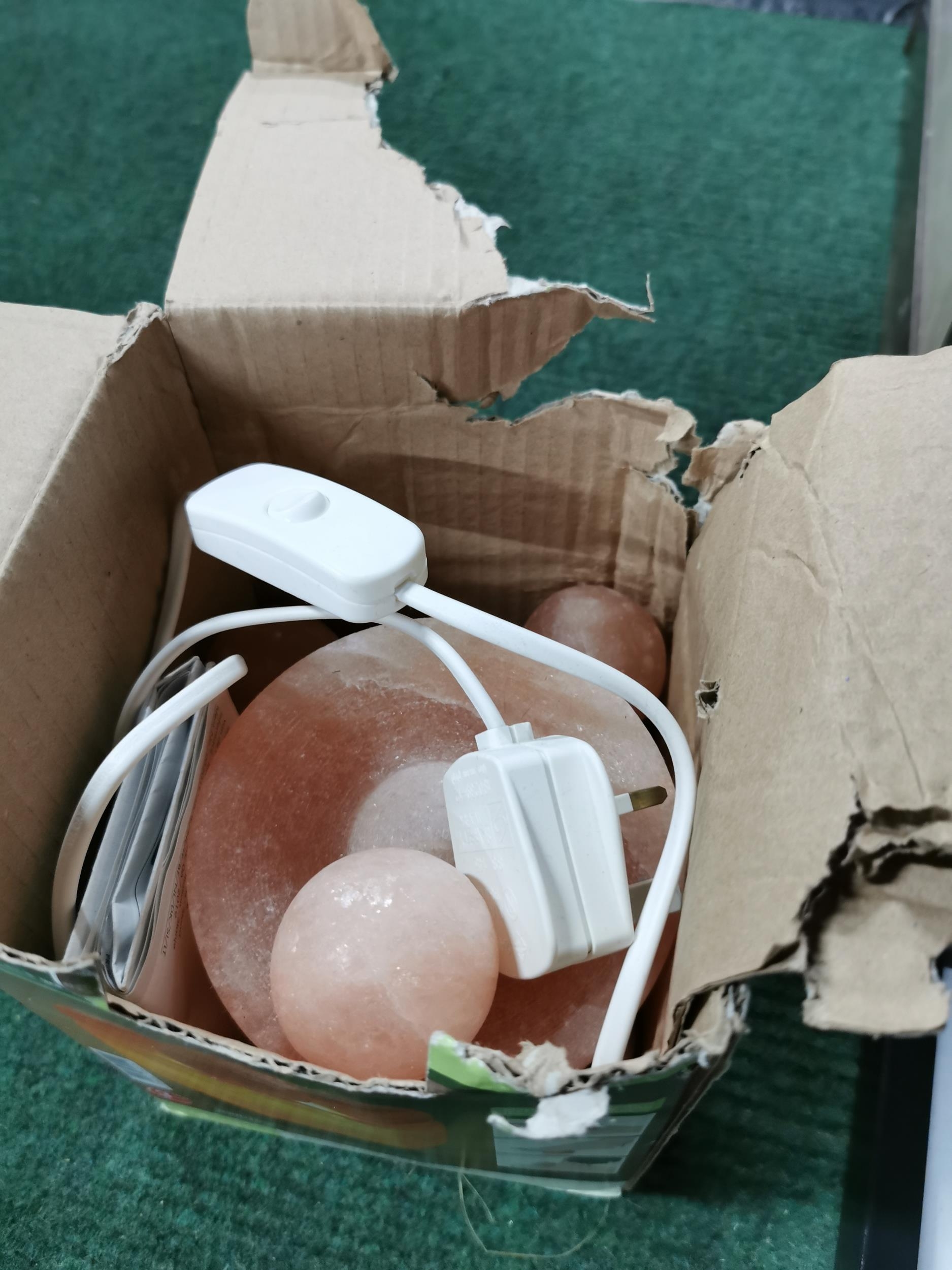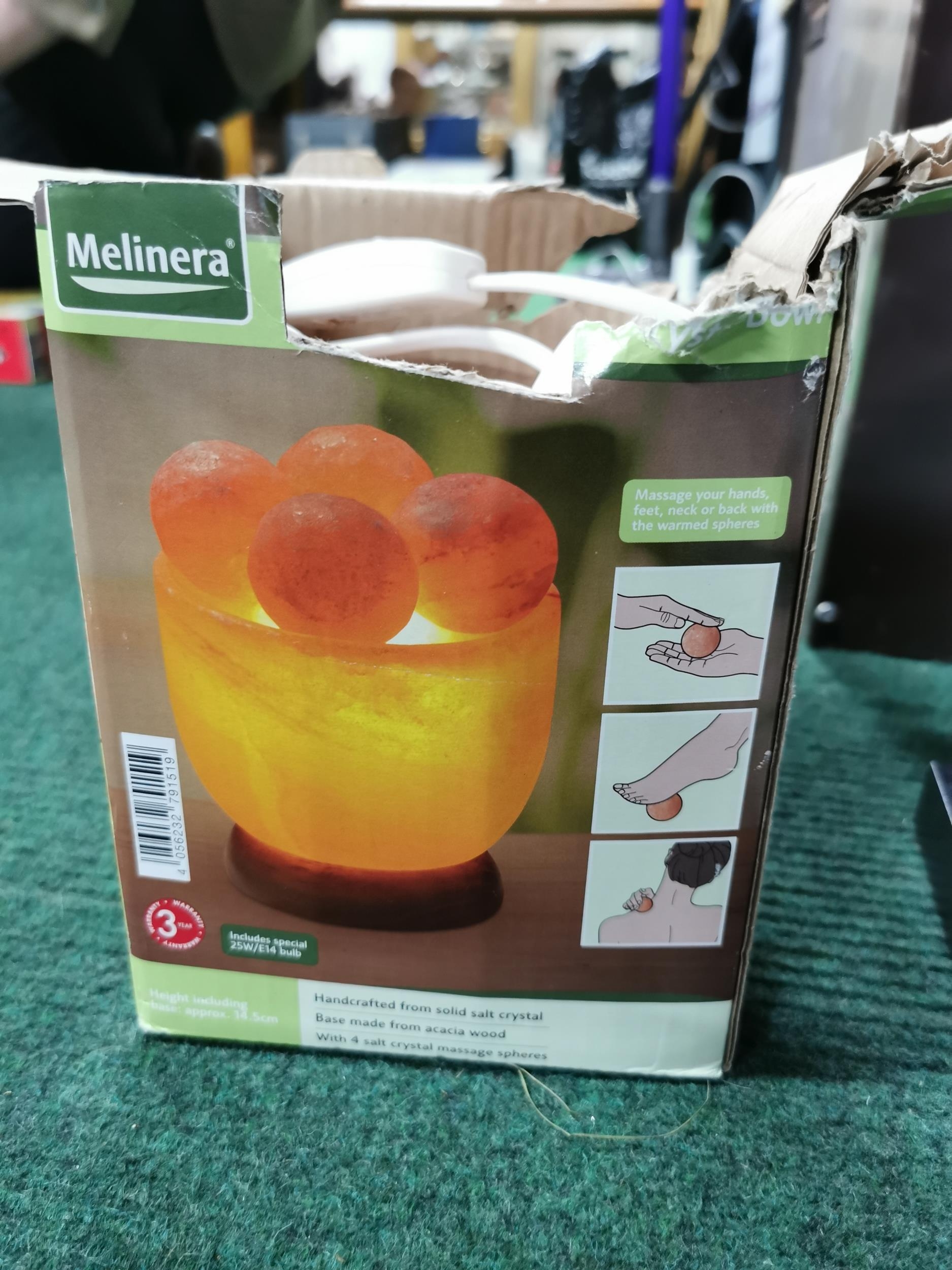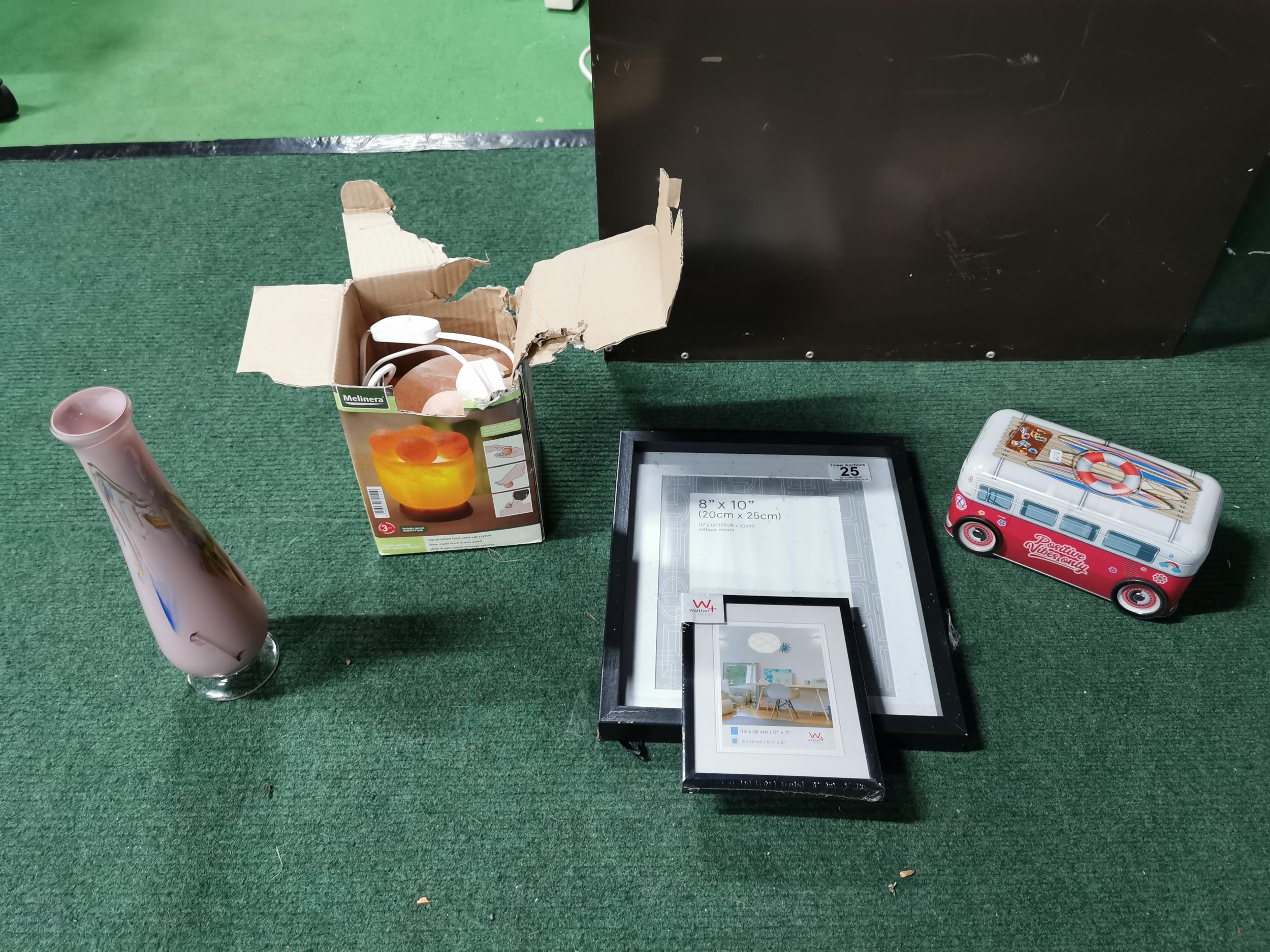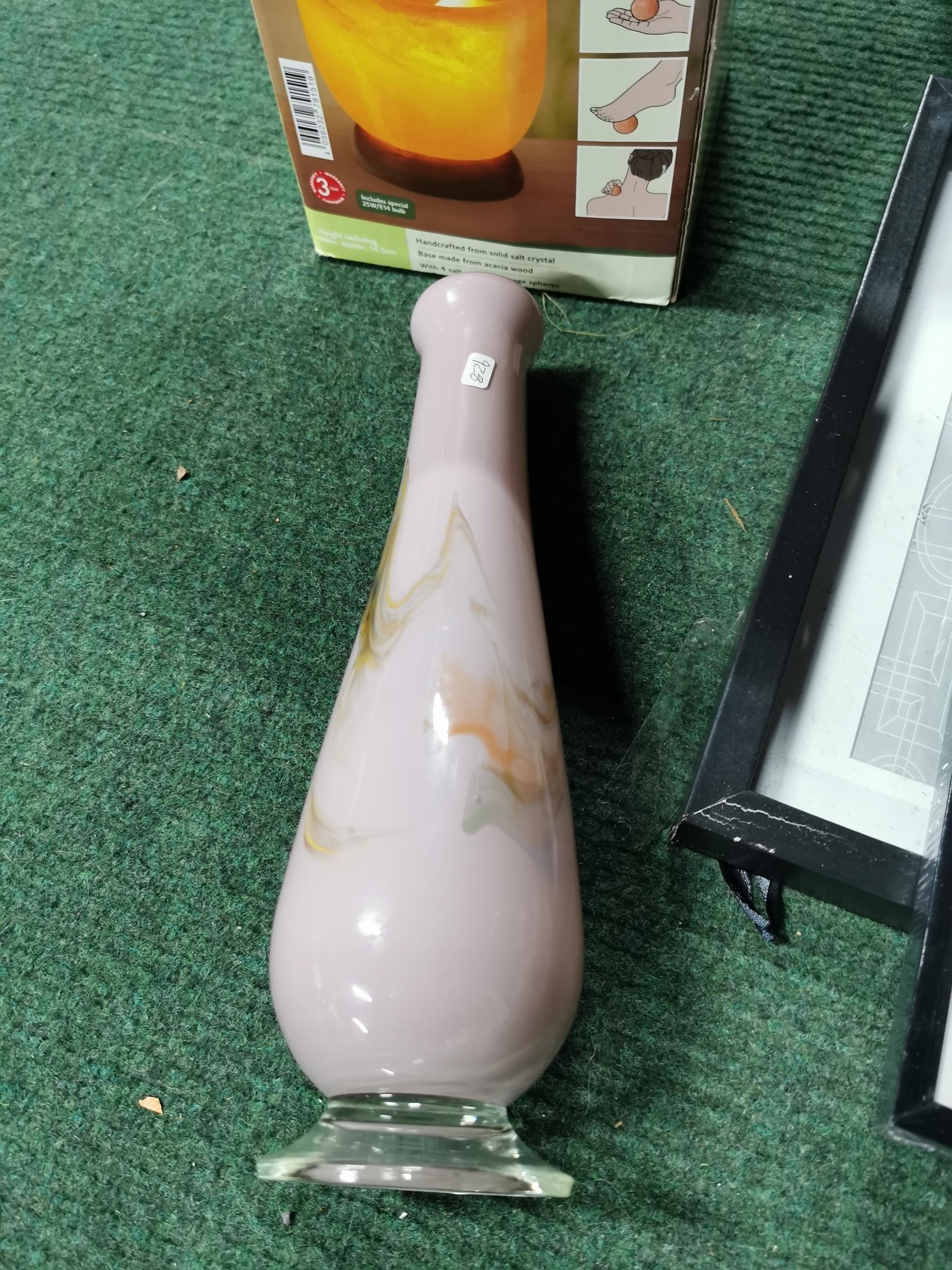 Boxed illuminated salt crystal bowl along with picture frames art glass vase etc