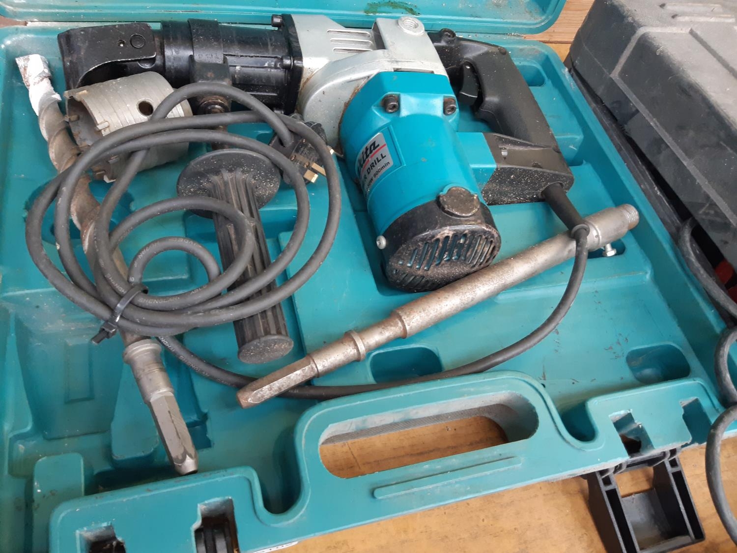 A CASED BLUE MAKITA MAINS ELECTRIC HEAVY DUTY HAMMER DRILL