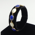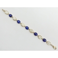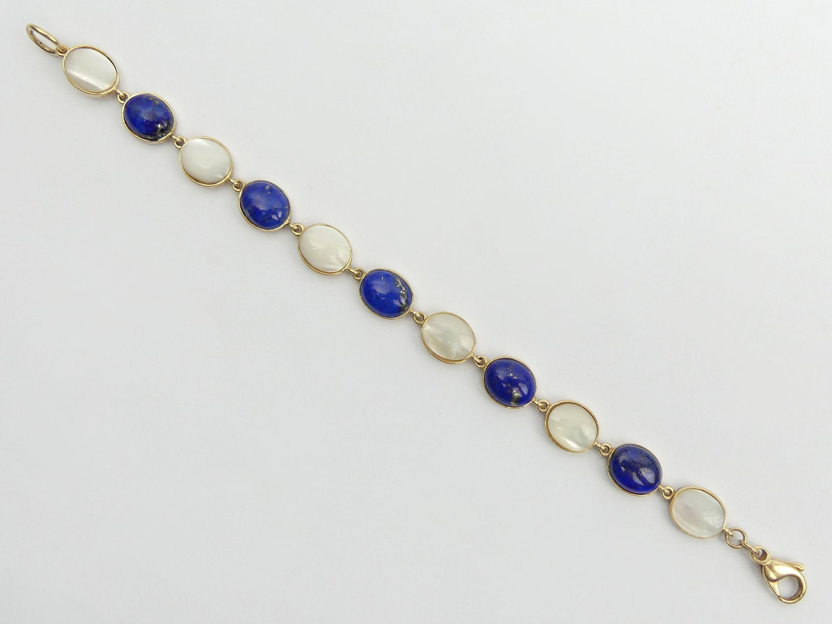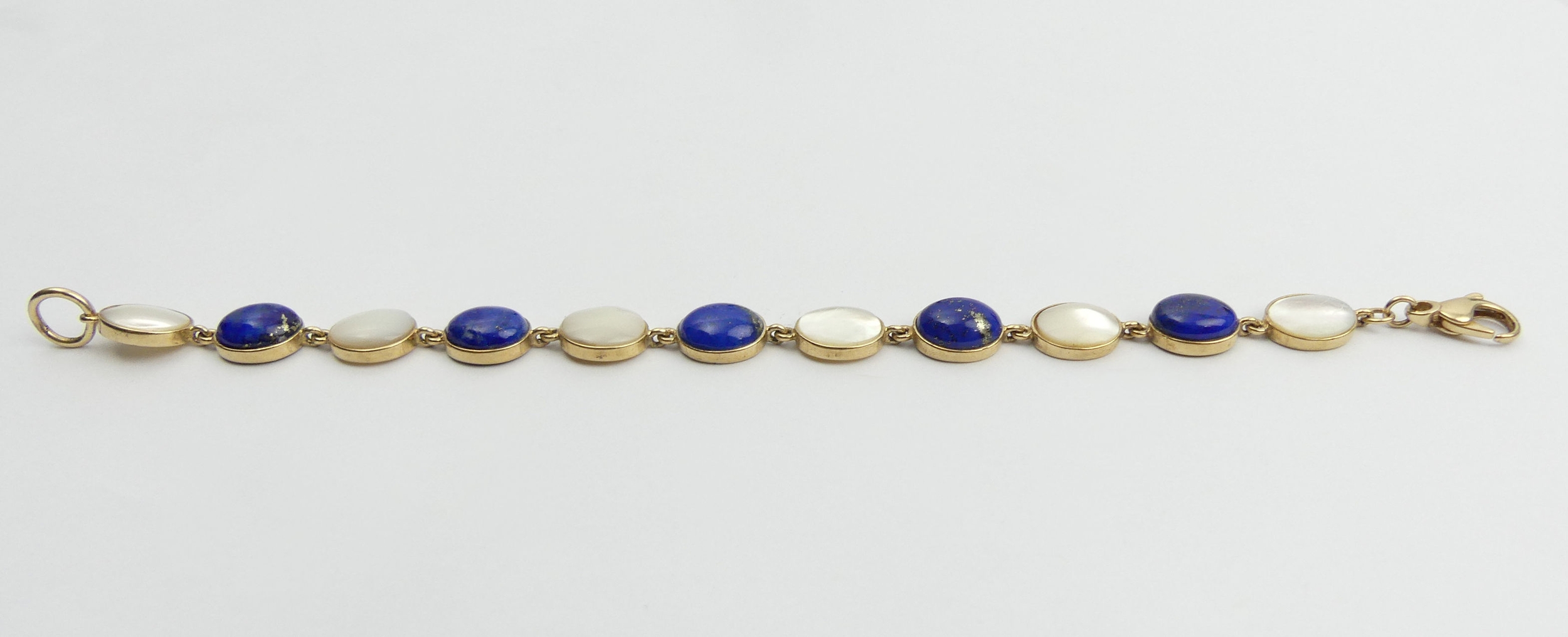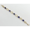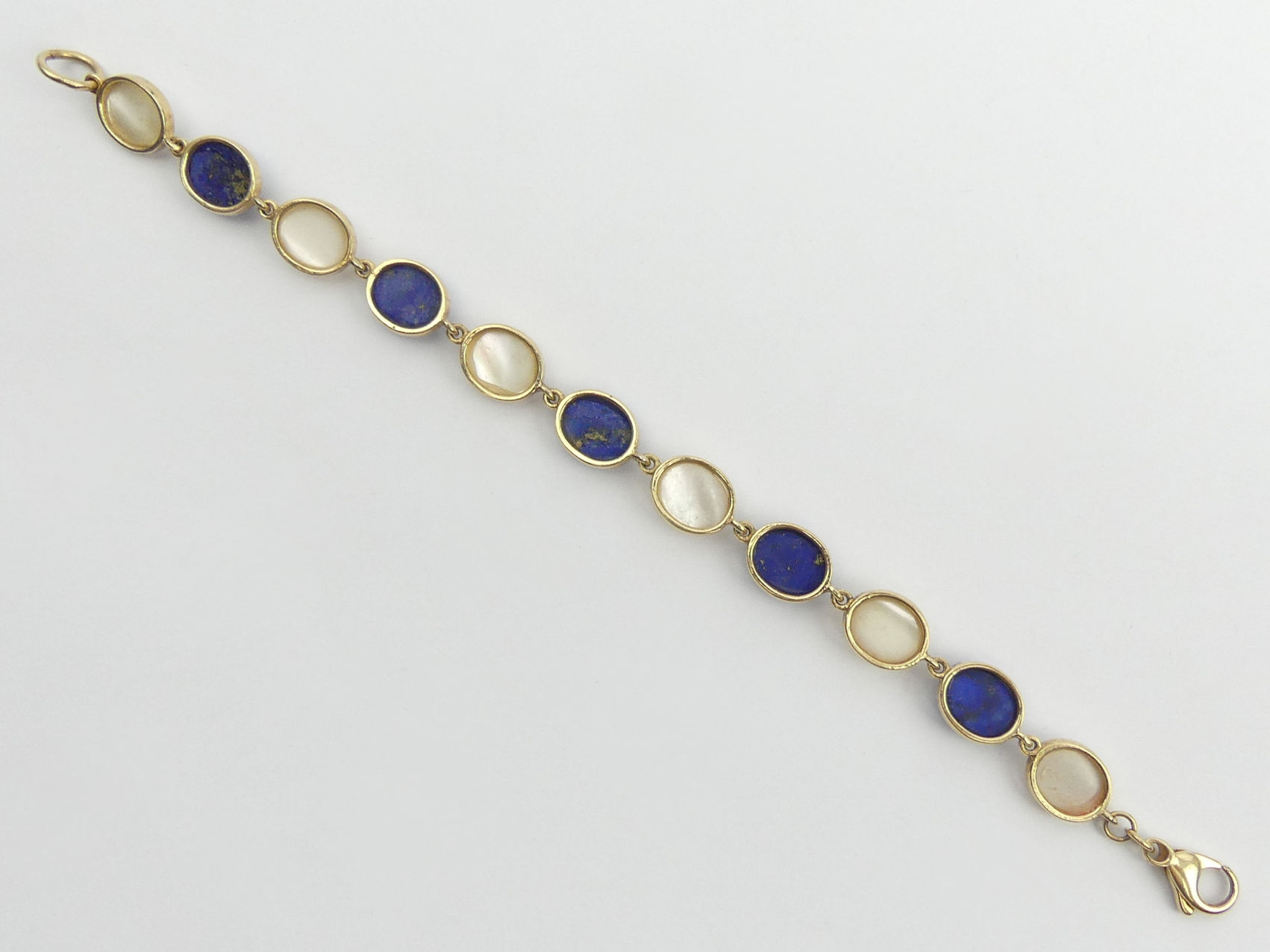 9ct gold lapis and moonstone cabochon bracelet, 10 grams, 17.5cm x 8.8mm. Postage £12
