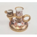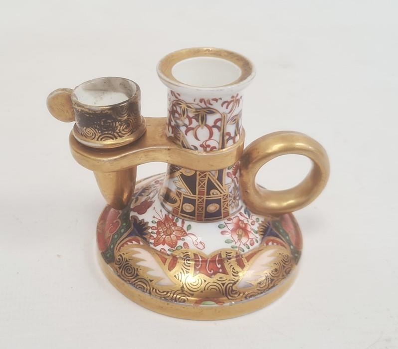 Spode chamberstick with snuffer circa. 1820, decorated in the Imari palette with cylindrical column and ring handle on circular base with painted pattern number 967, 7cm high.