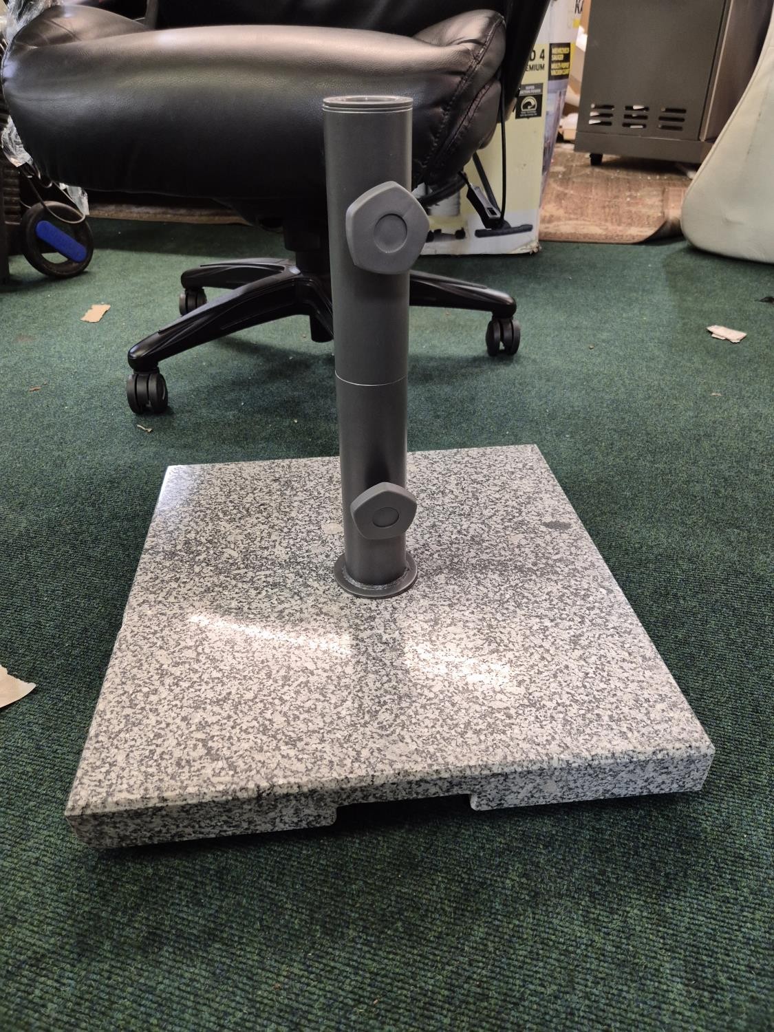 GRANITE ROLLING PARASOL BASE - NOTE ONE WHEEL DETACHED BUT P...