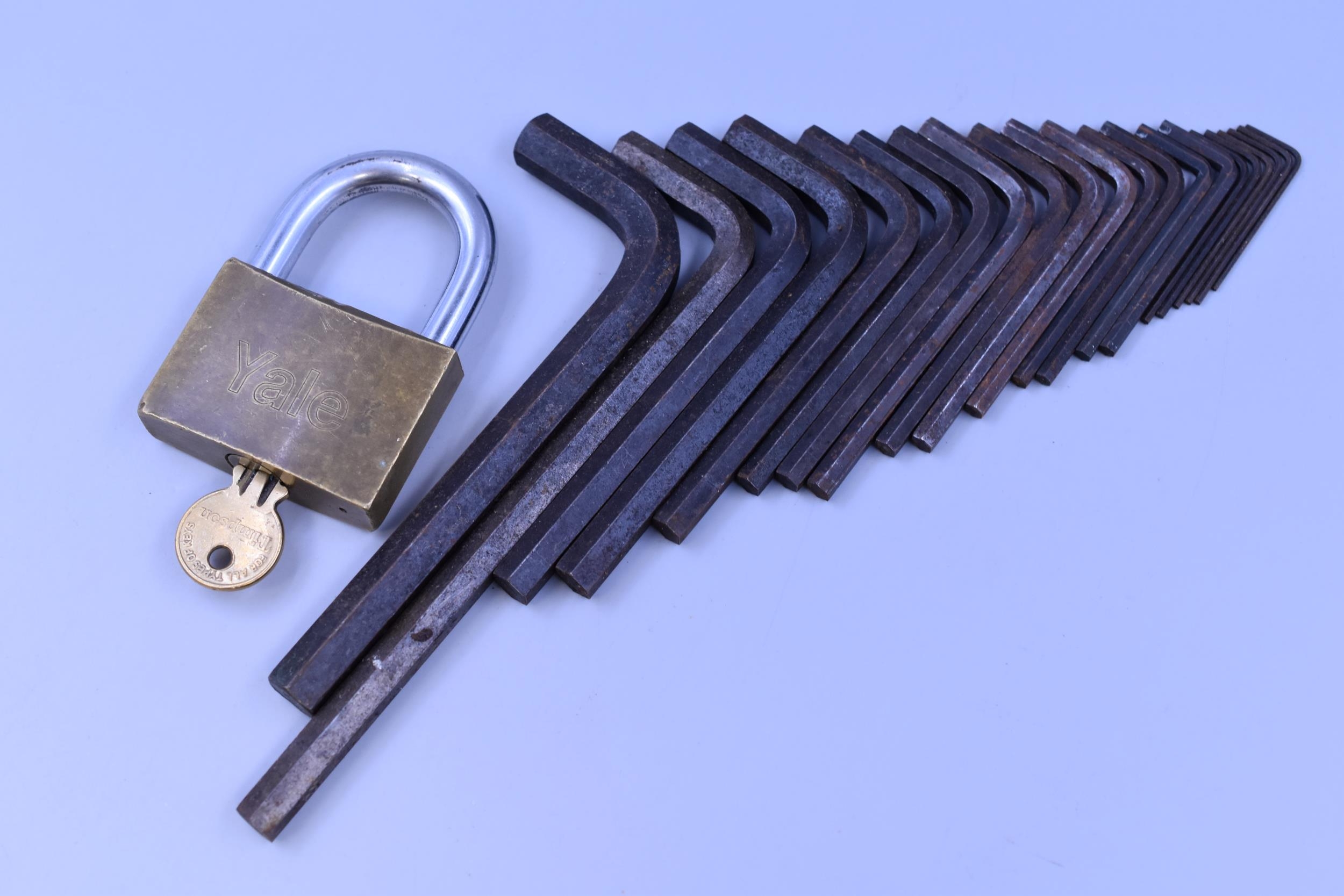 Mixed Lot to include a Large Vintage Brass Yale Padlock with one Key and a Collection of Allen Keys