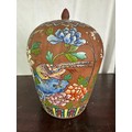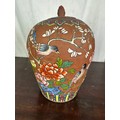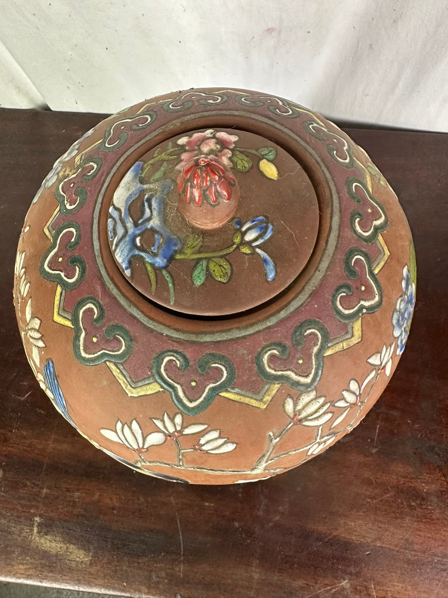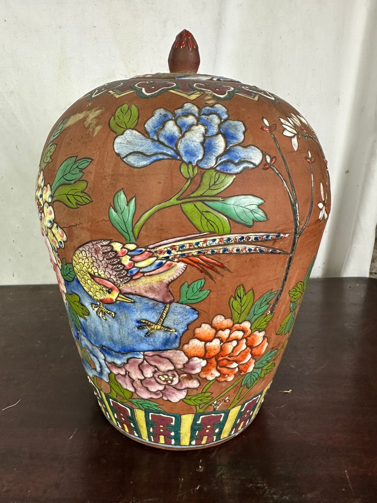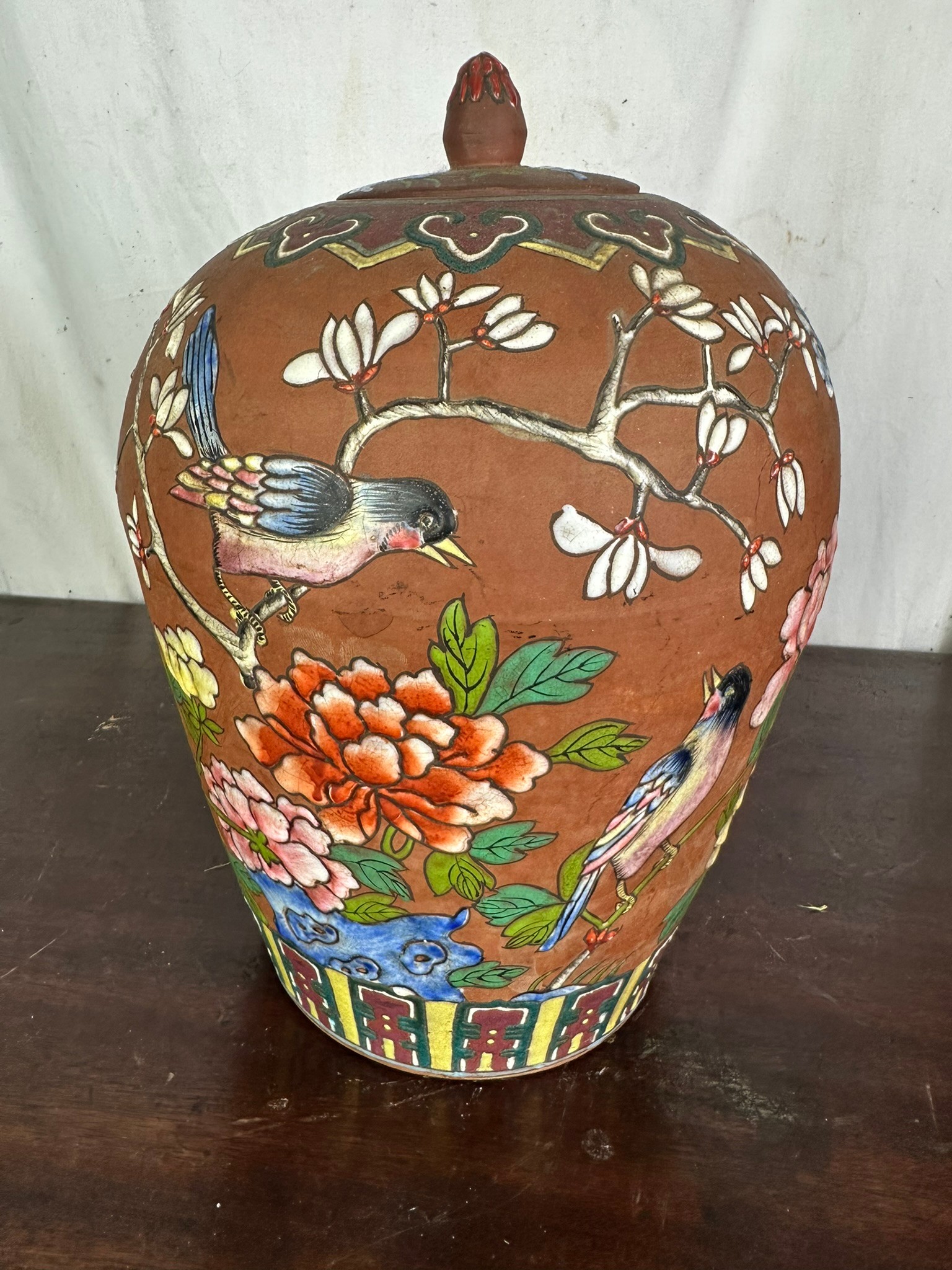 Chinese Yixing clay vase also known as a Zisha vase, hand painted with a design oof birds and flowers 12''h