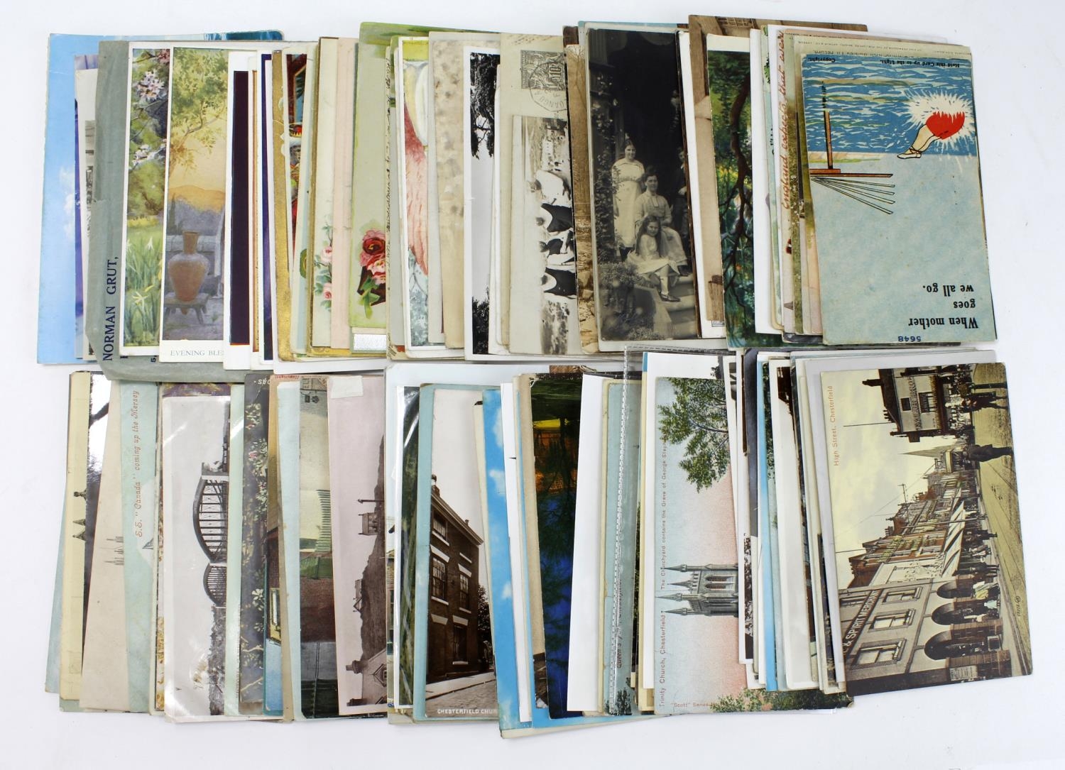 Mixed bundle of various postcards, including approx 40x Chesterfield. (approx 130+ cards)