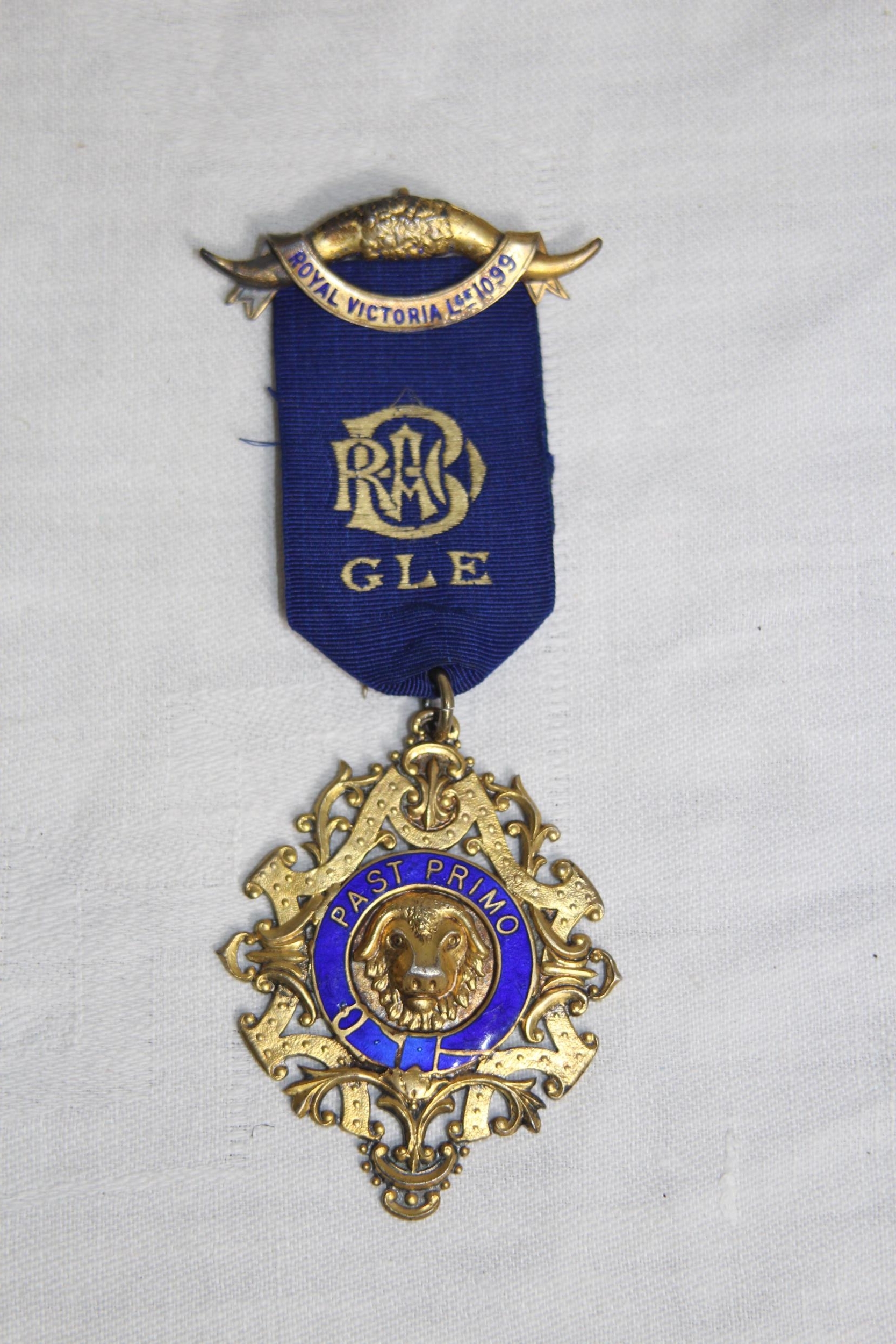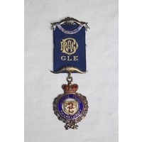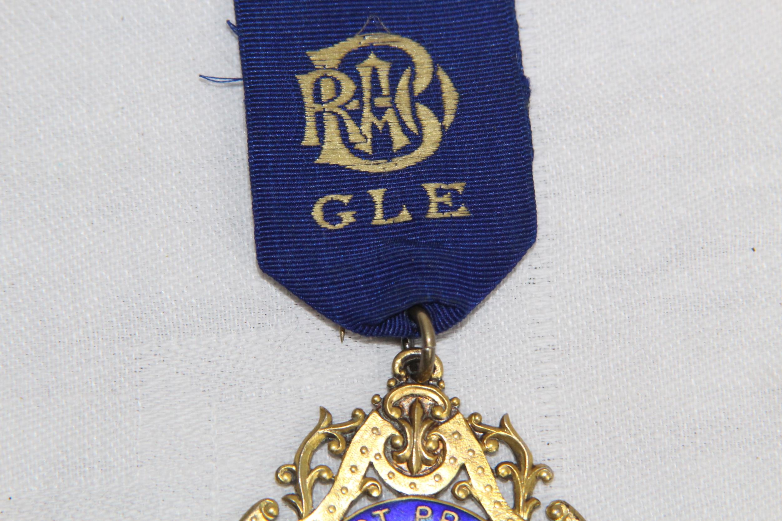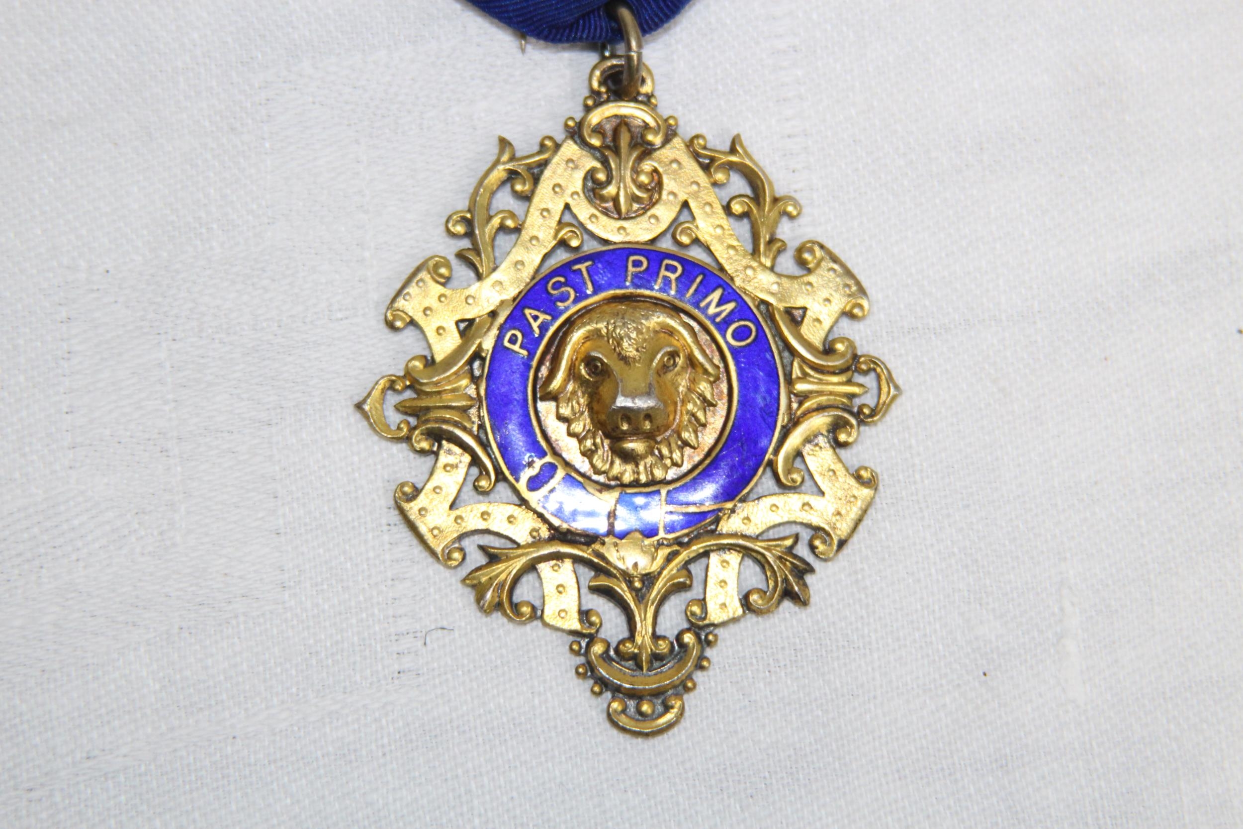 SILVER & ENAMEL MASONIC BUFFALO MEDAL/JEWEL, BIRMINGHAM 1920, 1925-26 INSCRIPTION, 32 GRAMS INC RIBBON