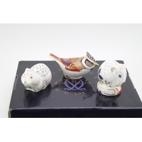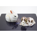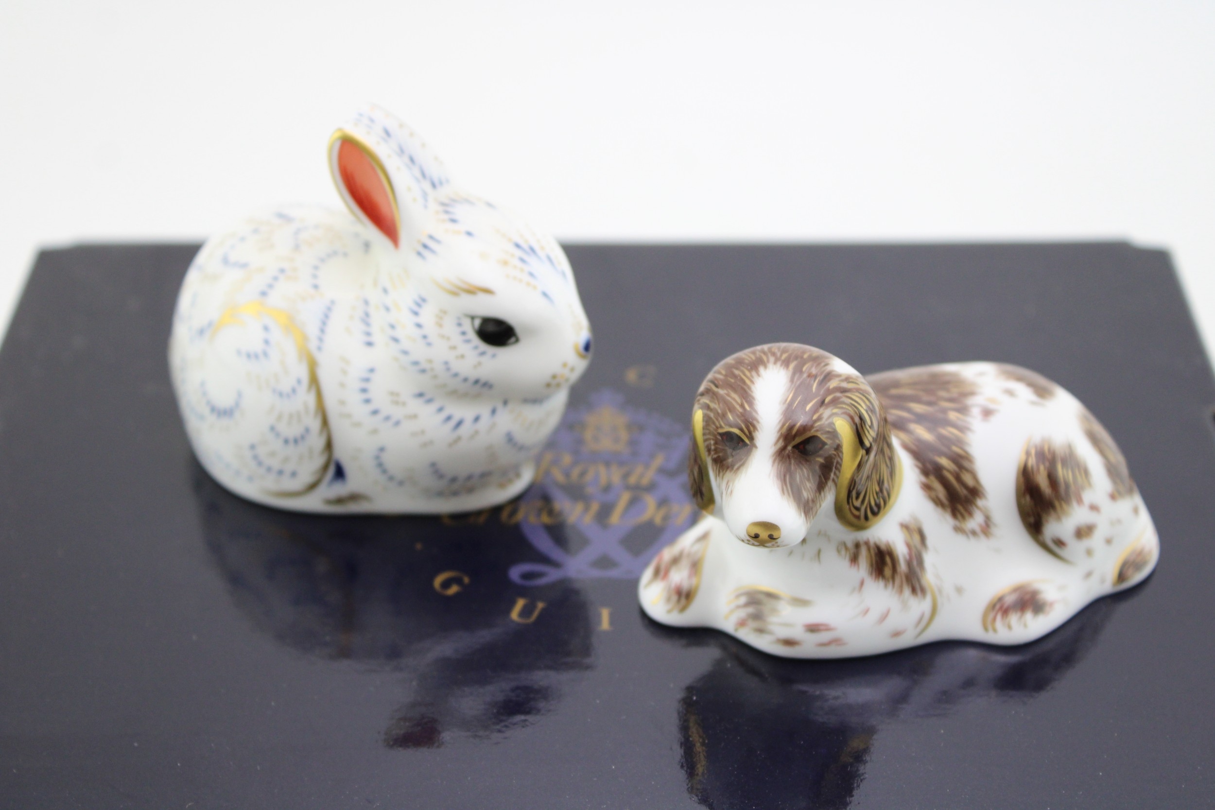 Boxed Royal Crown Derby paperweights to include a bunny and a scruff puppy, first quality (2).