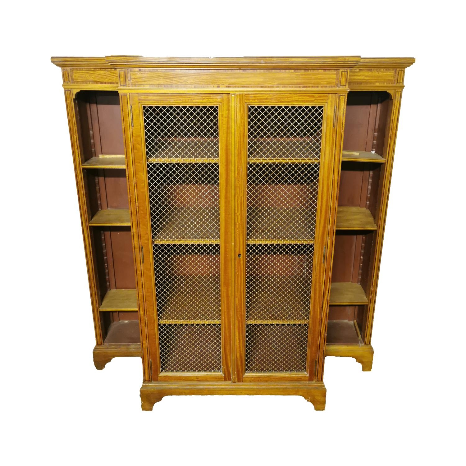 Good quality satinwood side cabinet in the Sheridan style {125 cm H x 118 cm W x 41 cm D}.