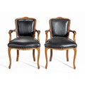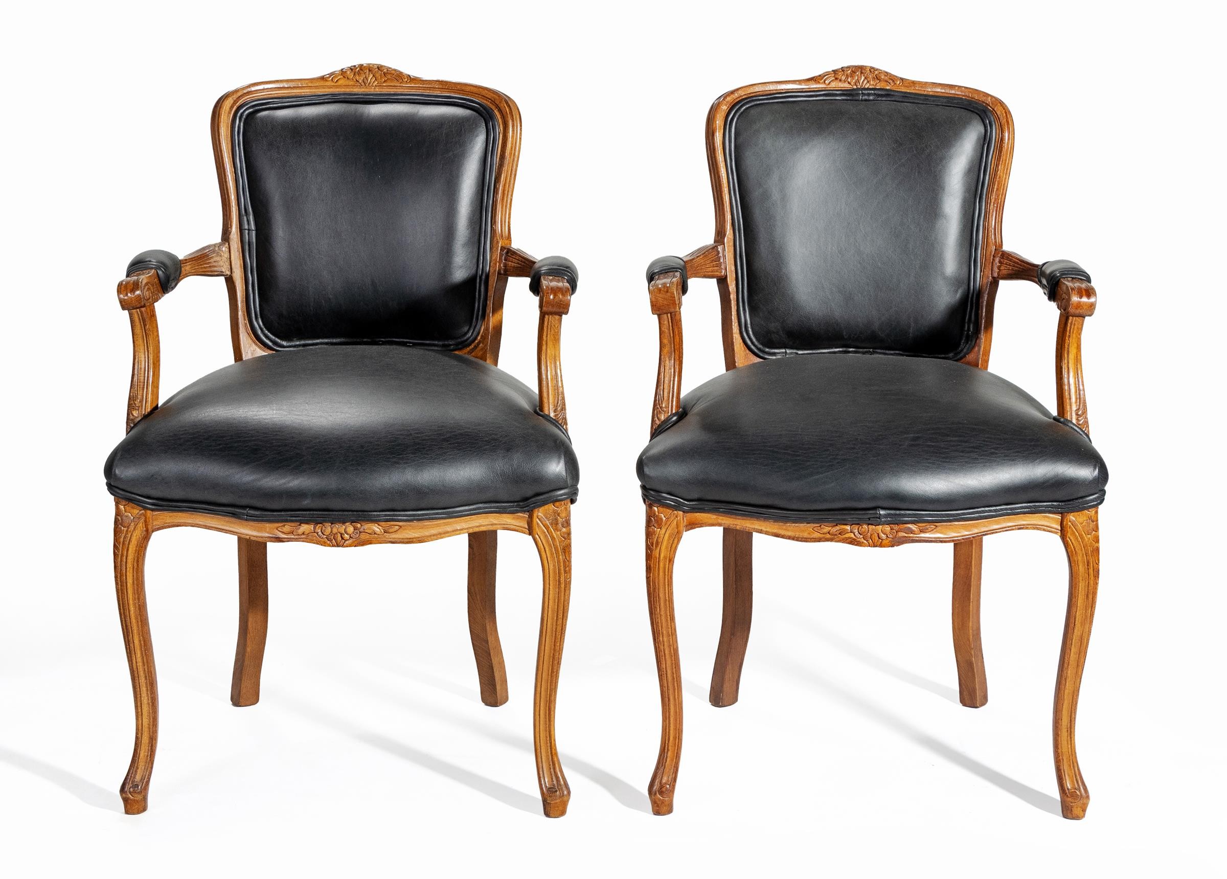 A PAIR OF LOUIS XVI-STYLE LEATHER UPHOLSTERED ARMCHAIRS