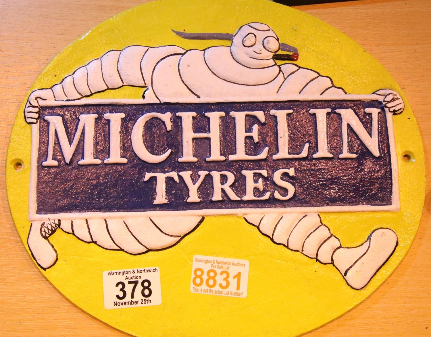 Cast iron Michelin Tyres sign, 29 x 25 cm. P&P Group 1 (£14+VAT for the first lot and £1+VAT for subsequent lots)