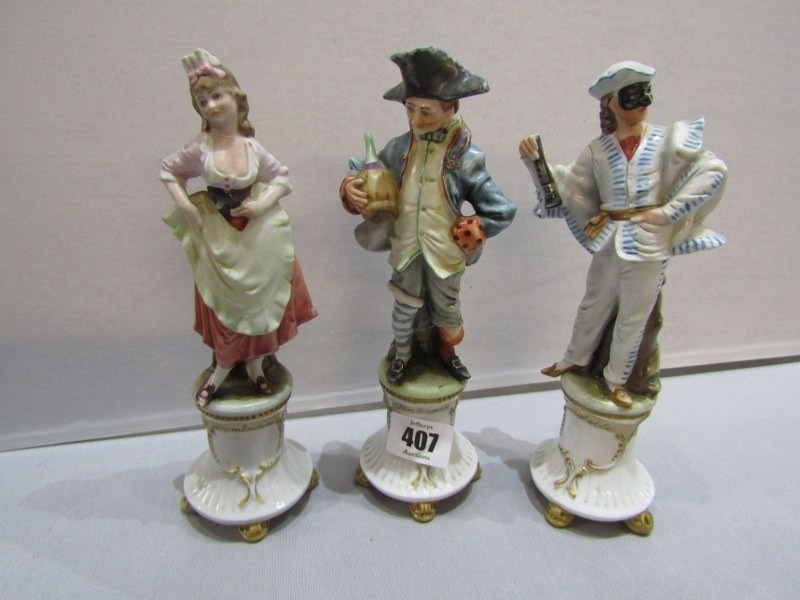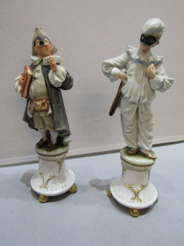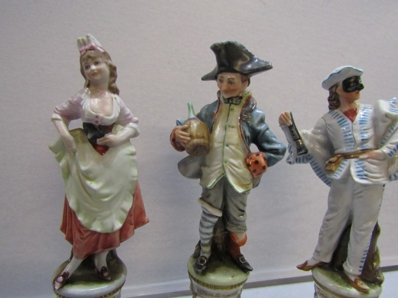 Stenterello with head re-glued and body re-glued to base at the ankles. Balantone with body re-glued to base and index finger missing. Brighello with end of instrument missing. Other figures in good condition. See Photos