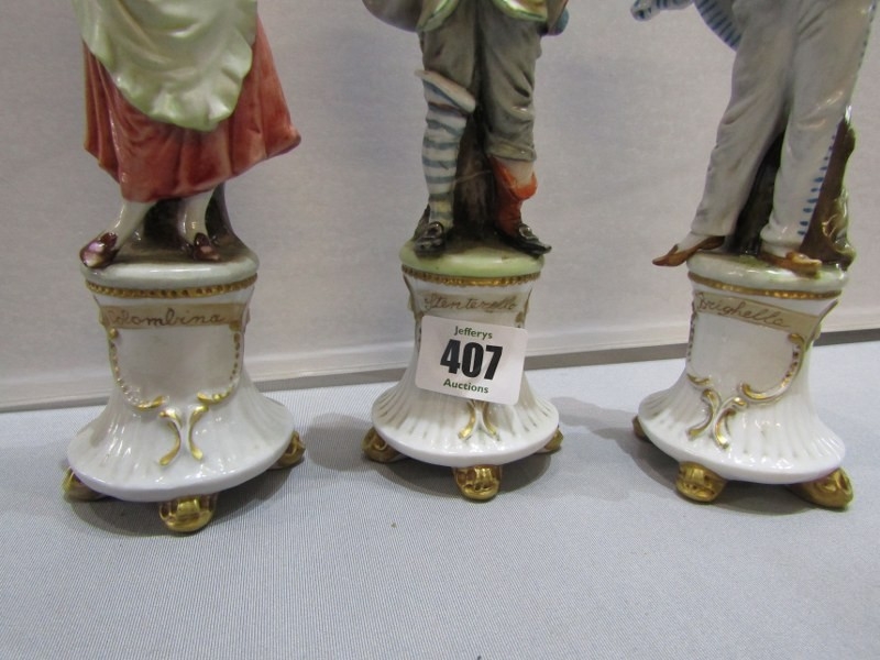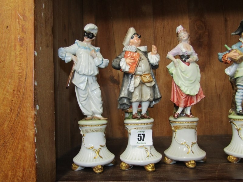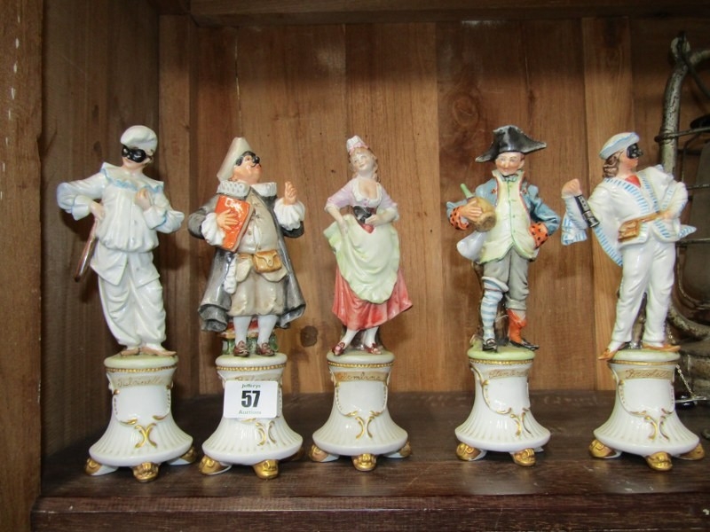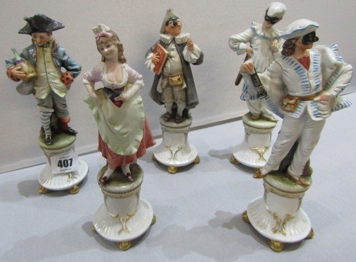 CAPODIMONTE, 5 various named figures on pedestals, "The Italian Comedy", 20cm height