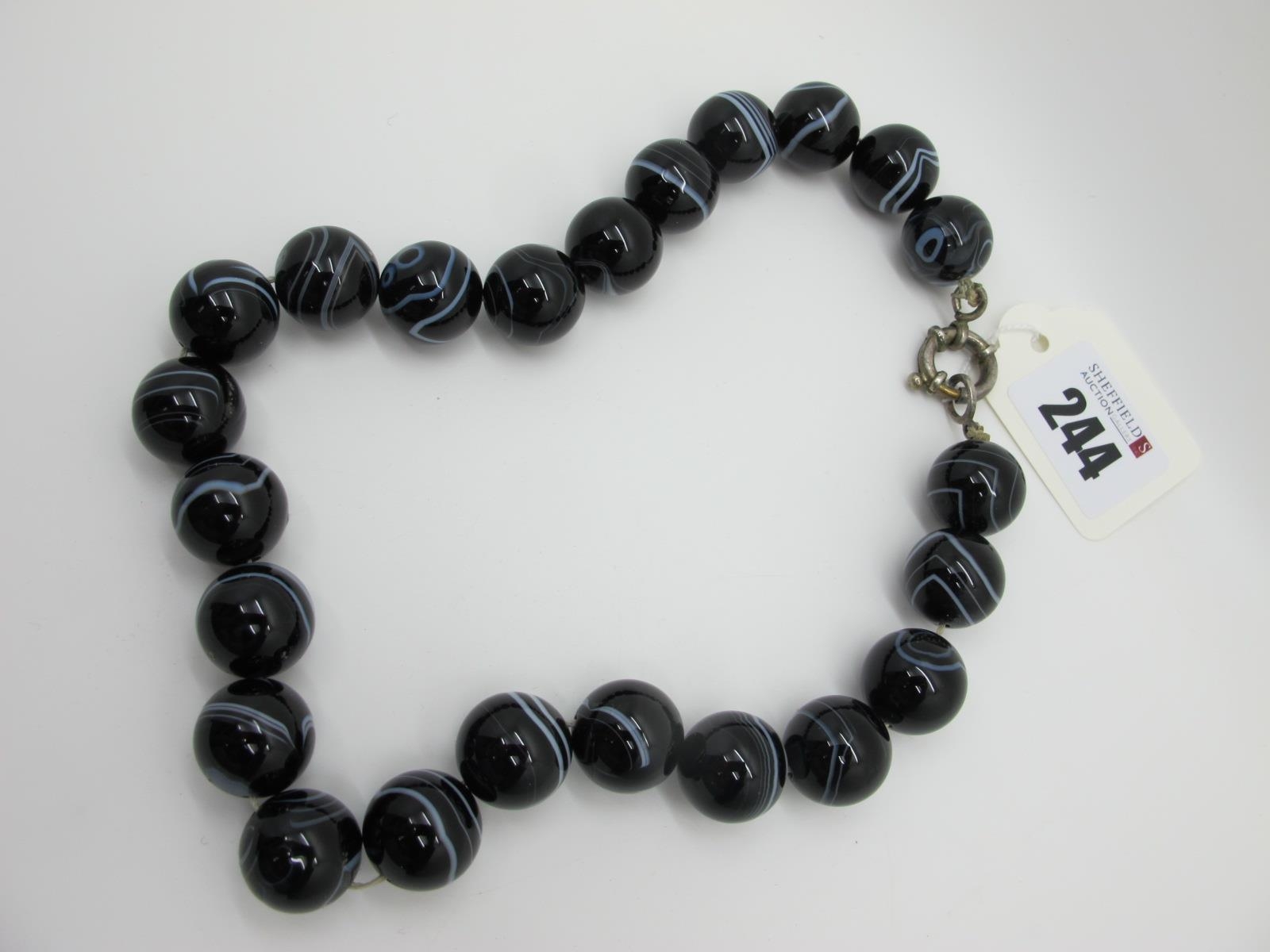 A Vintage Single Strand Banded Agate Large Bead Necklace, (in need of re-stringing).