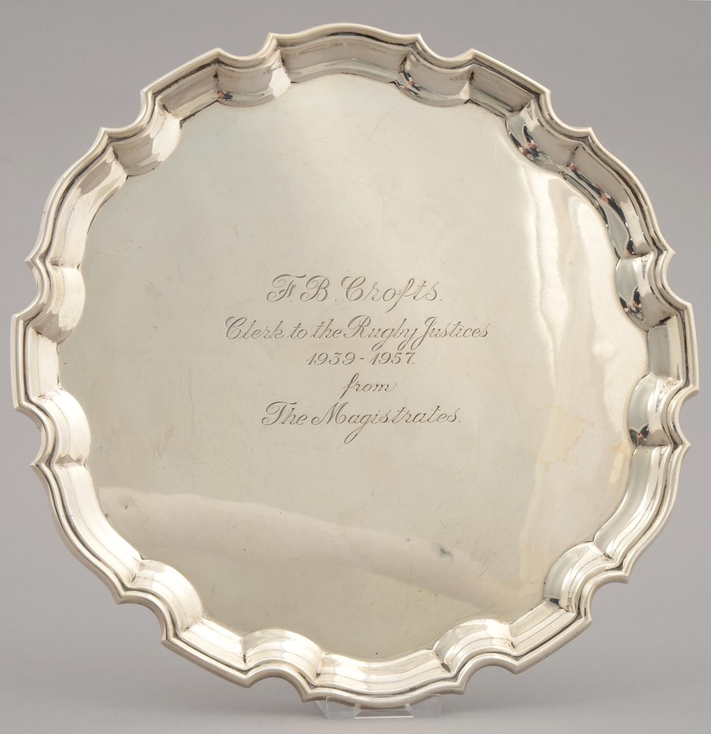 AN ELIZABETH II SILVER SALVER WITH MOULDED BORDER, 25.5CM DIAM, BY ADIE BROTHERS LTD., BIRMINGHAM 1956, 19OZS 5DWTS