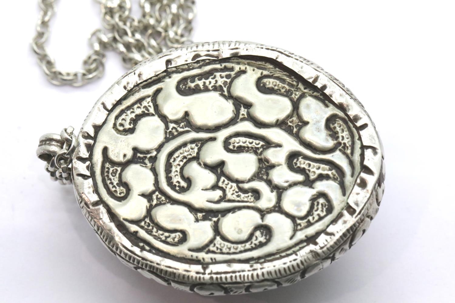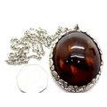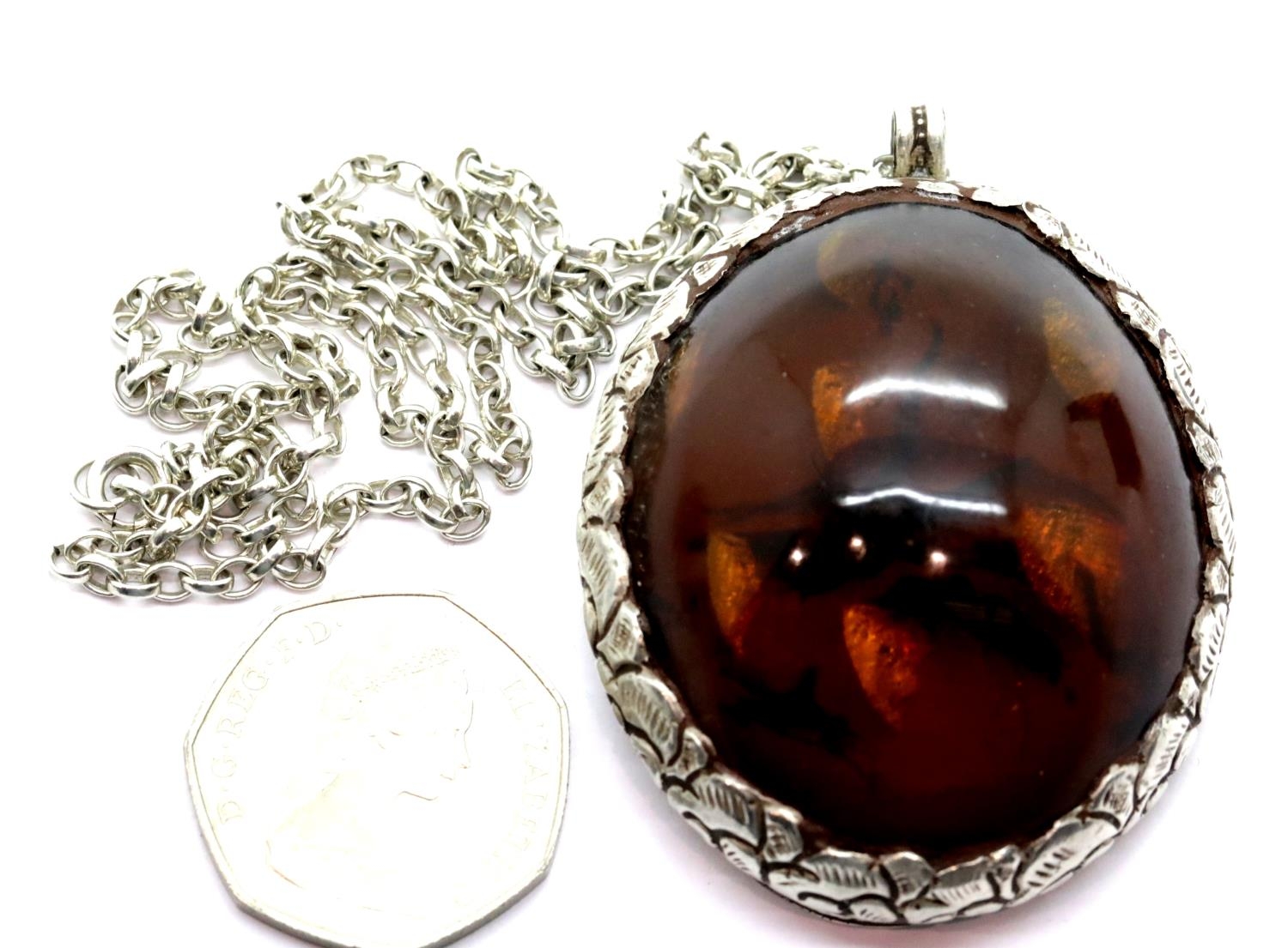 Silver and amber large pendant on a silver chain. P&P Group 1 (£14+VAT for the first lot and £1+VAT for subsequent lots)