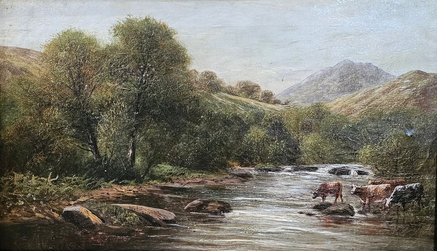 A 19TH CENTURY OIL ON CANVAS ‘HIGHLAND SCENE’ LANDSCAPE