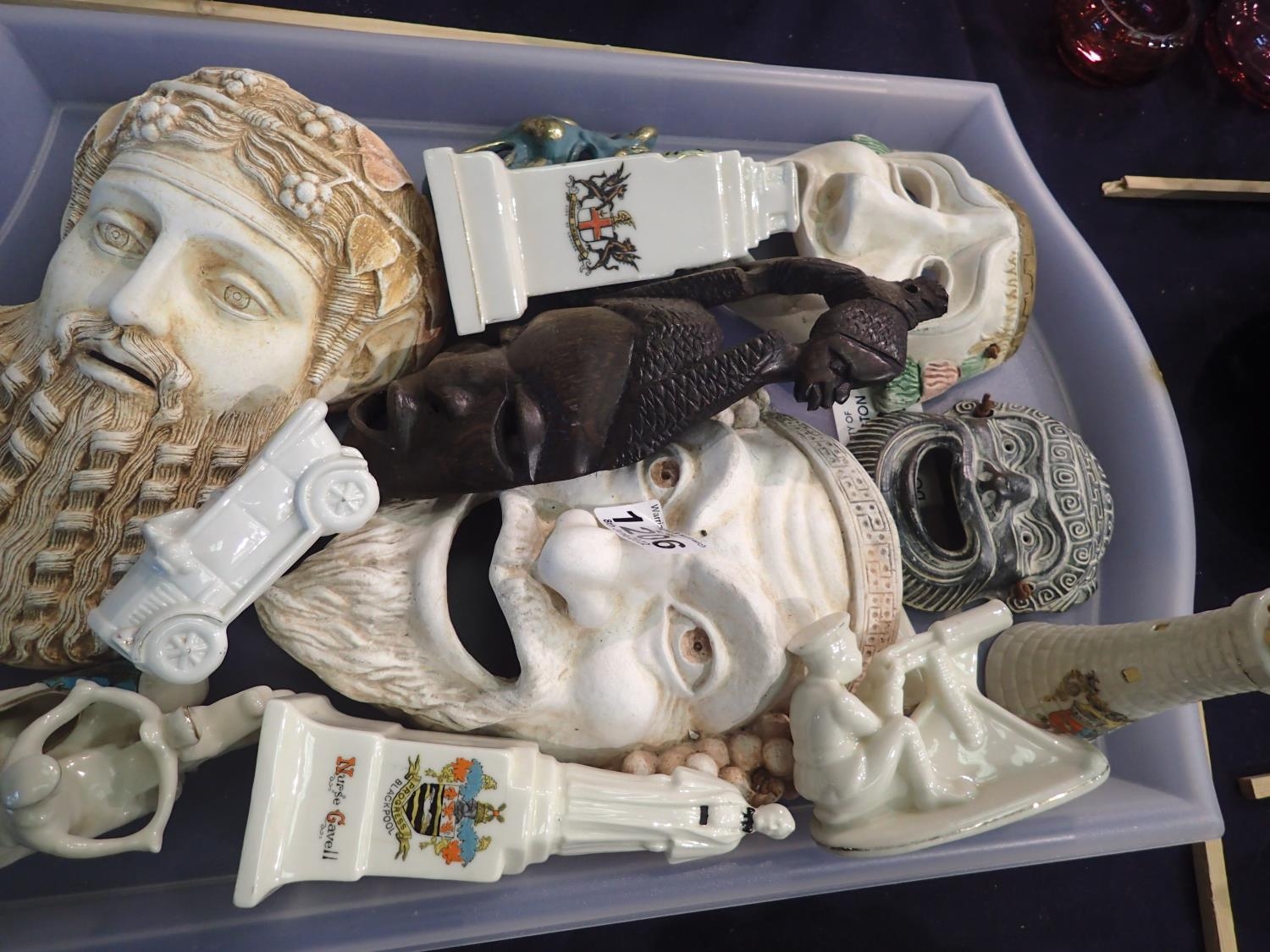 Mixed masks in ceramic wood and metal. Not available for in-house P&P, contact Paul O'Hea at Mailboxes on 01925 659133