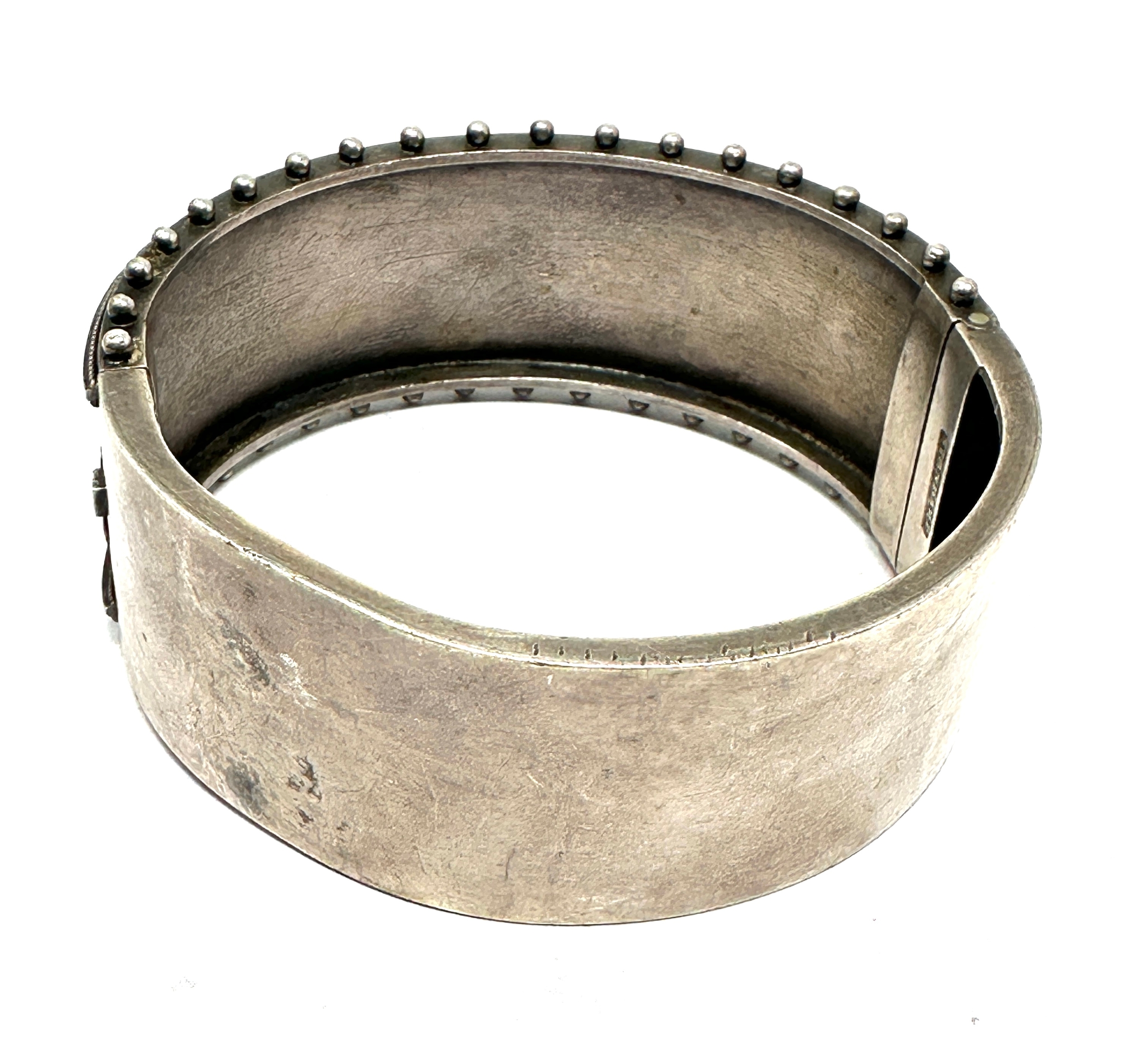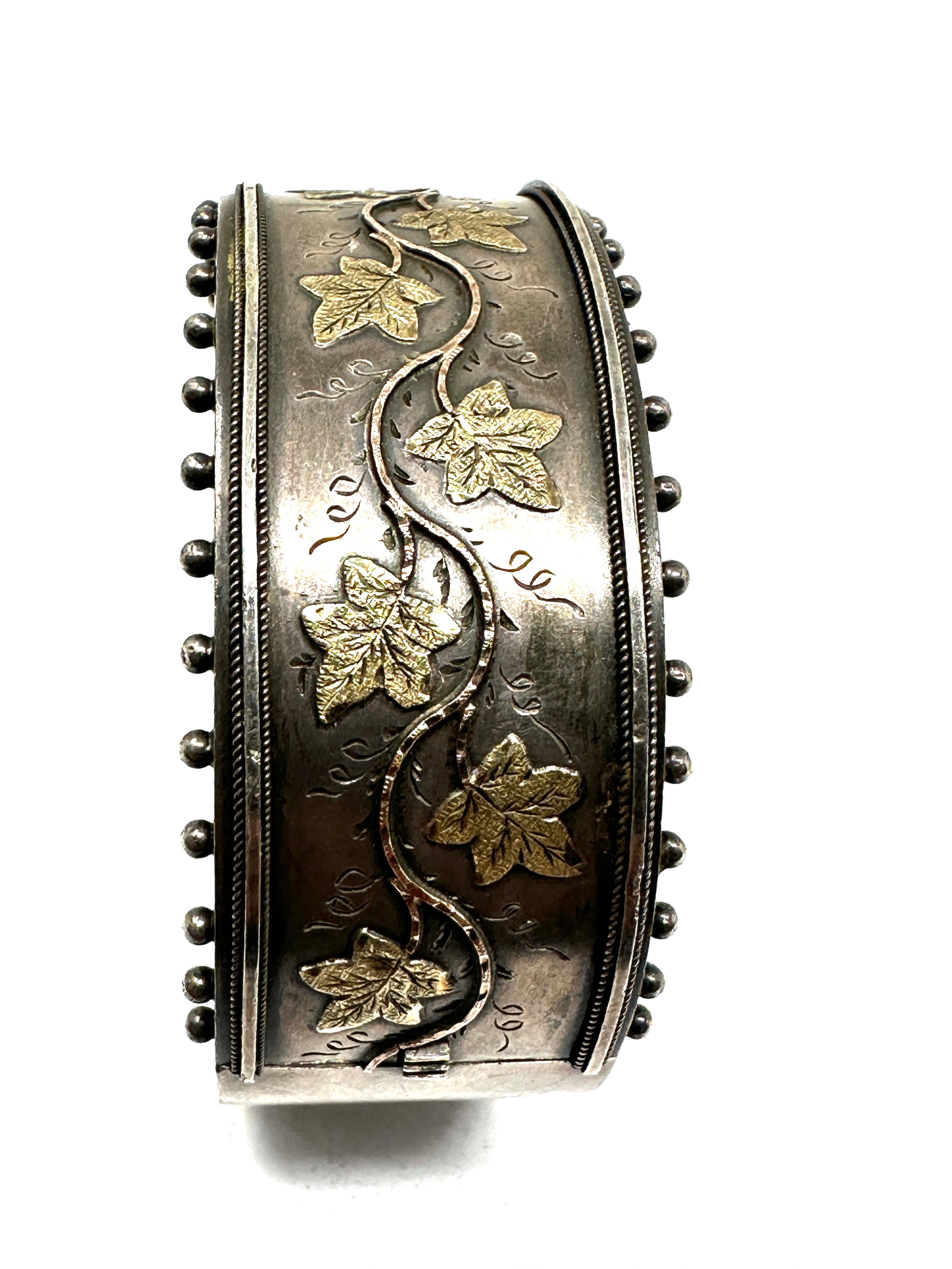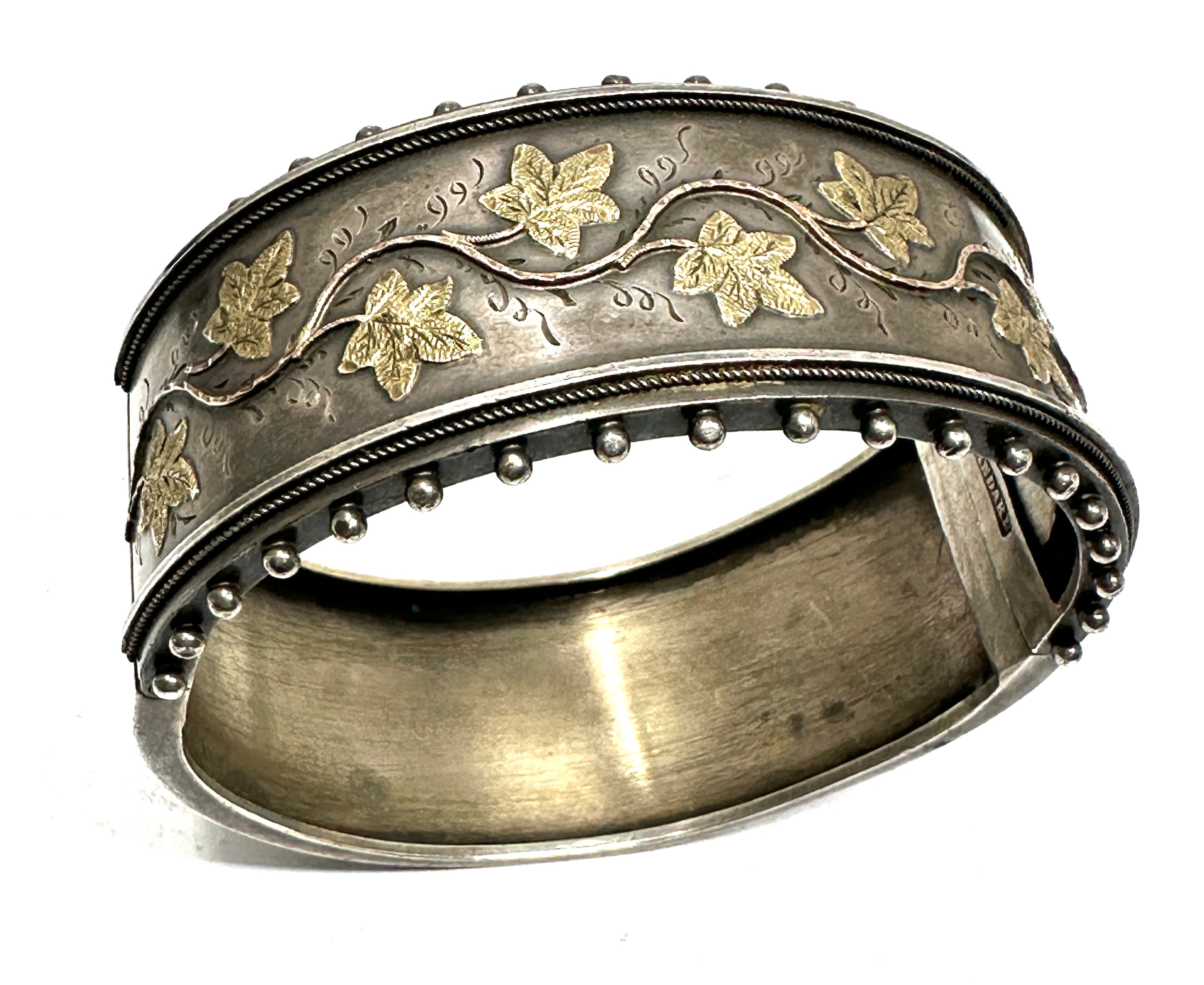 Victorian silver cuff bangle gold detail marked standard xrt tested as silver