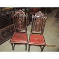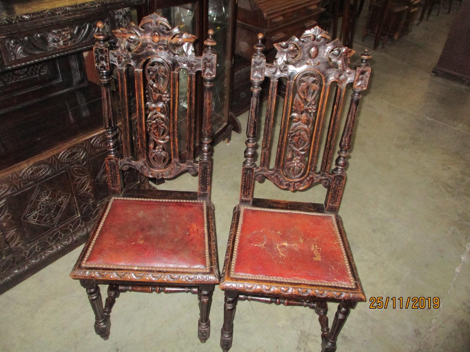 A Pair of Heavily Carved Early Victorian Gothic Revival Chairs with Leather Seats