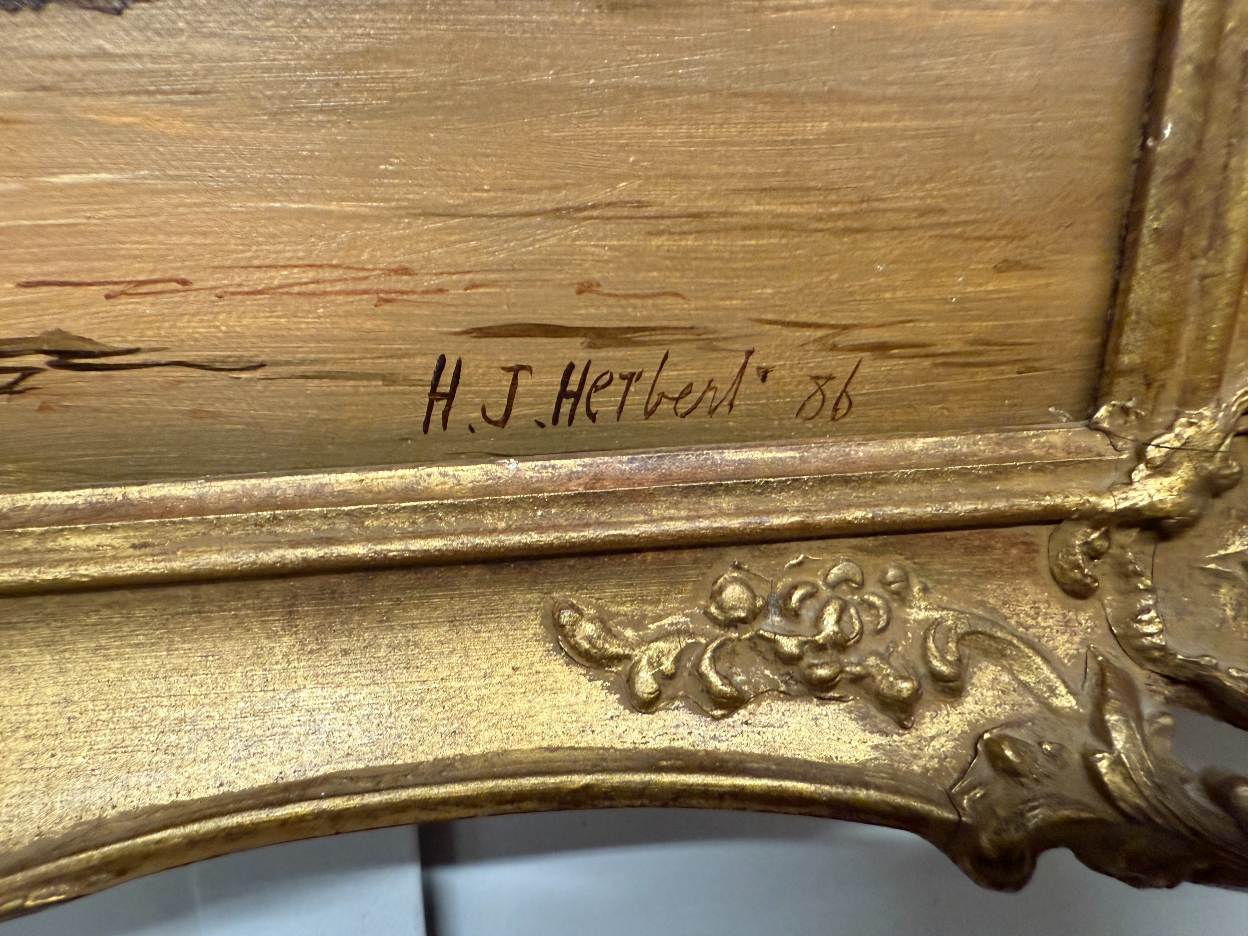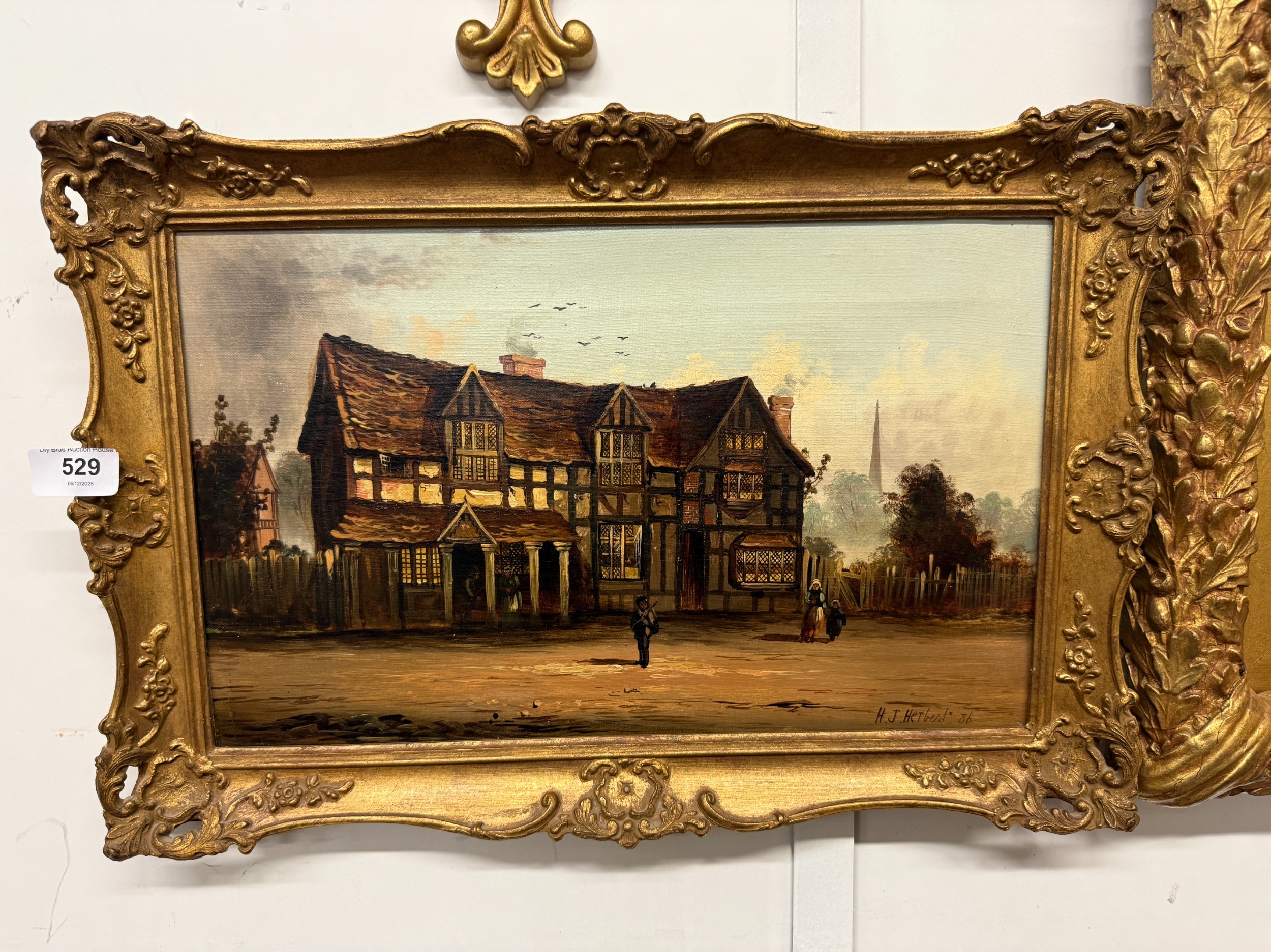 Oil on Canvas Signed H J Herbert depicting a Tudor Building in a Landscape Setting Approx. IS 25cm x 40cm