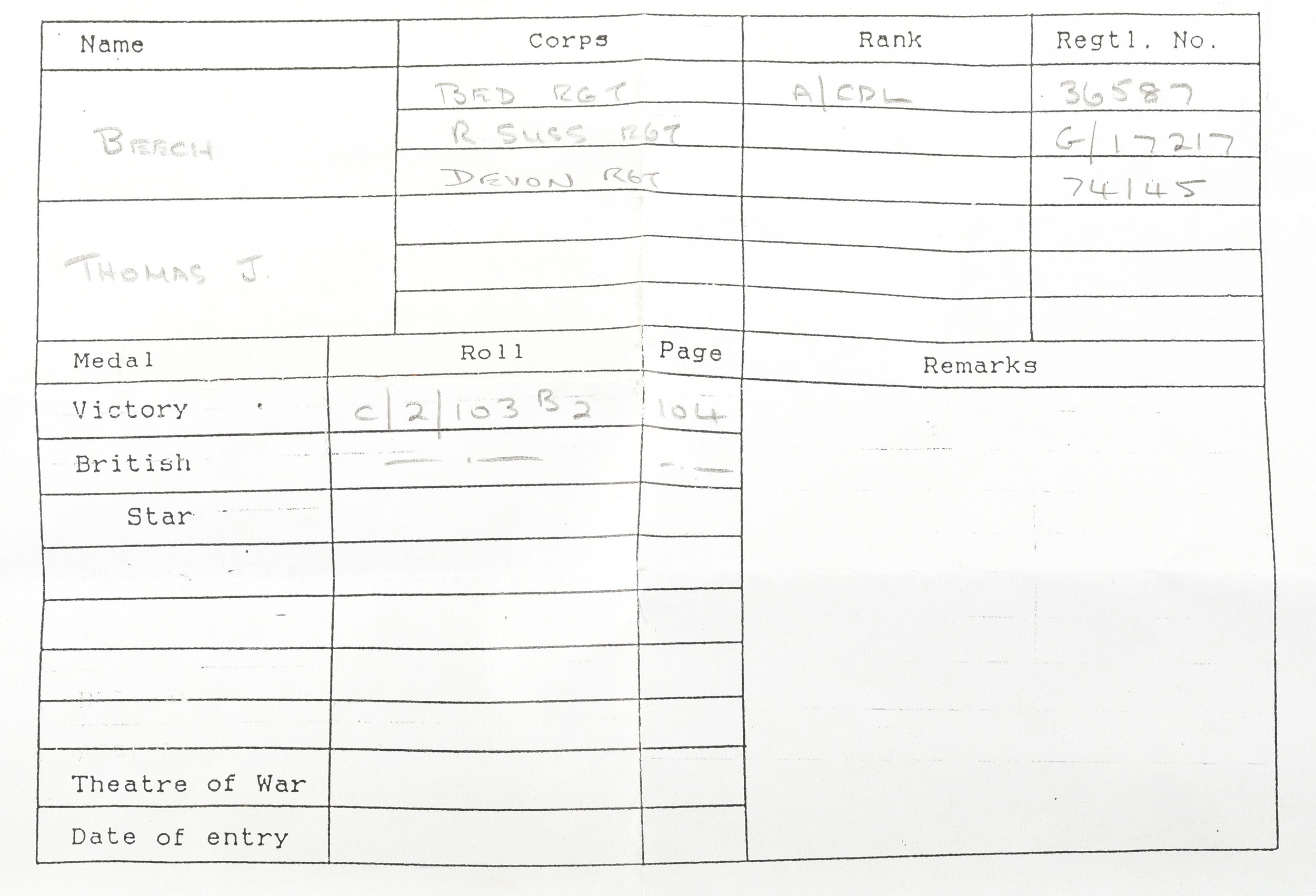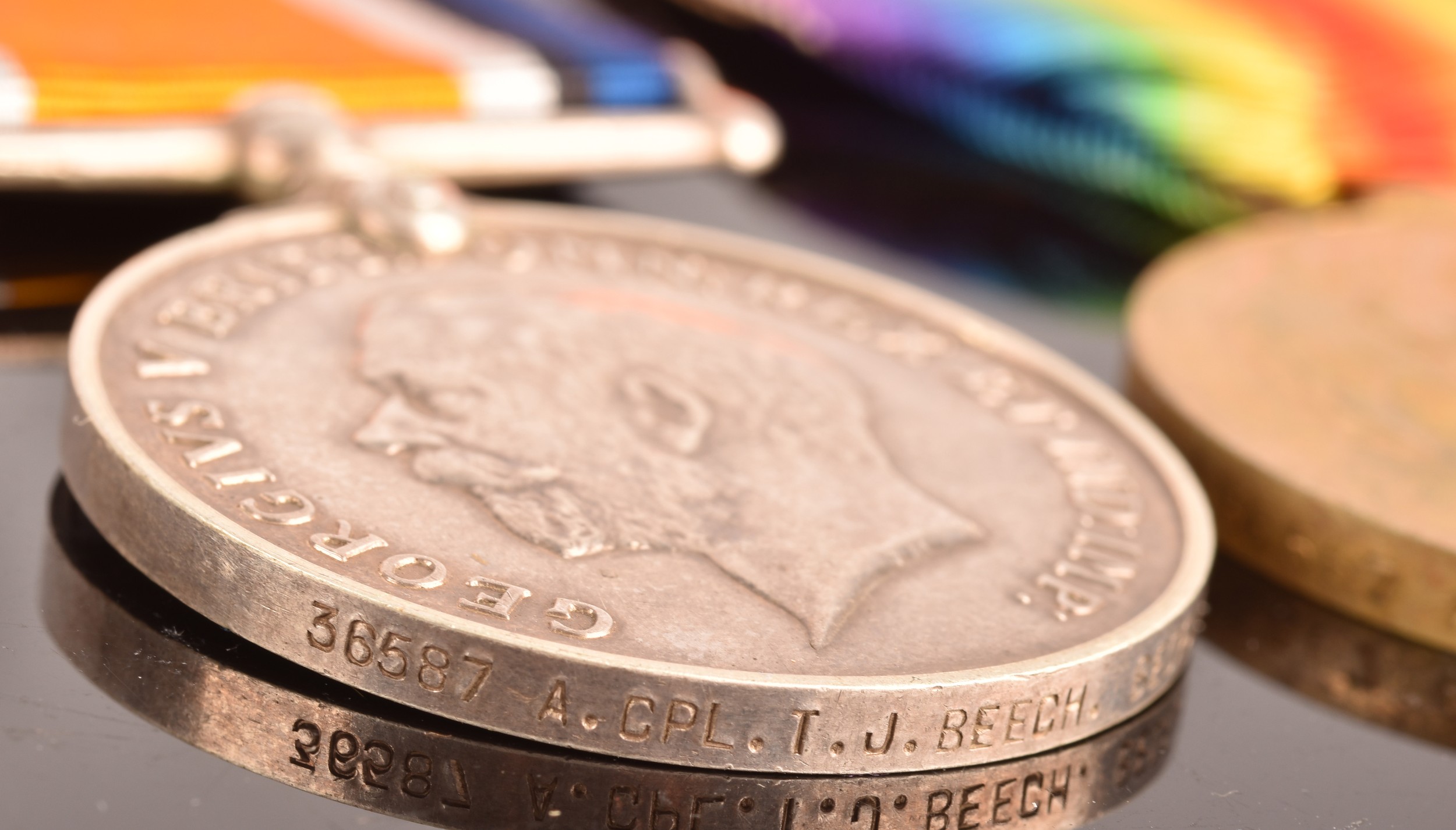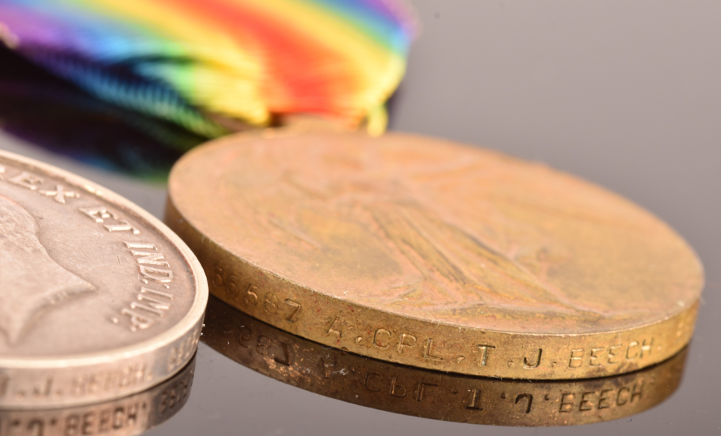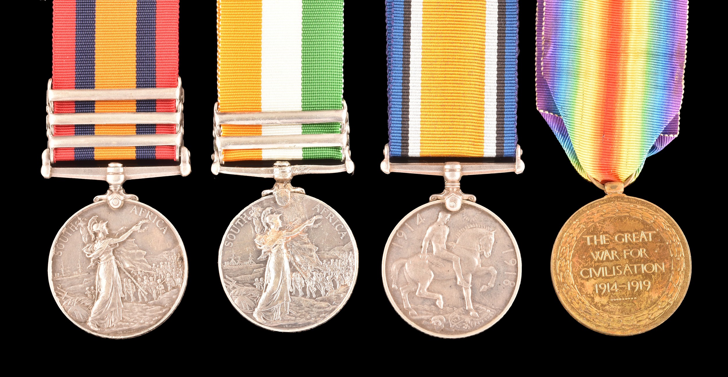 A Boer and Great War four medal group awarded to: 5006 Private T. Beech Berkshire and Bedfordshire Regiments. Comprising: a Queen’s South Africa QSA medal with 3 clasps Cape Colony, Orange Free State, Transvaal (5006 Pte. T. Beech 2: Rl: Berks: Regt); a King's South Africa KSA medal with 2 clasps South Africa 1901 and South Africa 1902 (5006 Corpl. T. Beech Rl: Berks: Regt); the British War Medal (36587 A. Cpl. T. J. Beech Bedf. R.) and the Victory Medal (36587 A. Cpl. T. J. Beech Bedf. R.).