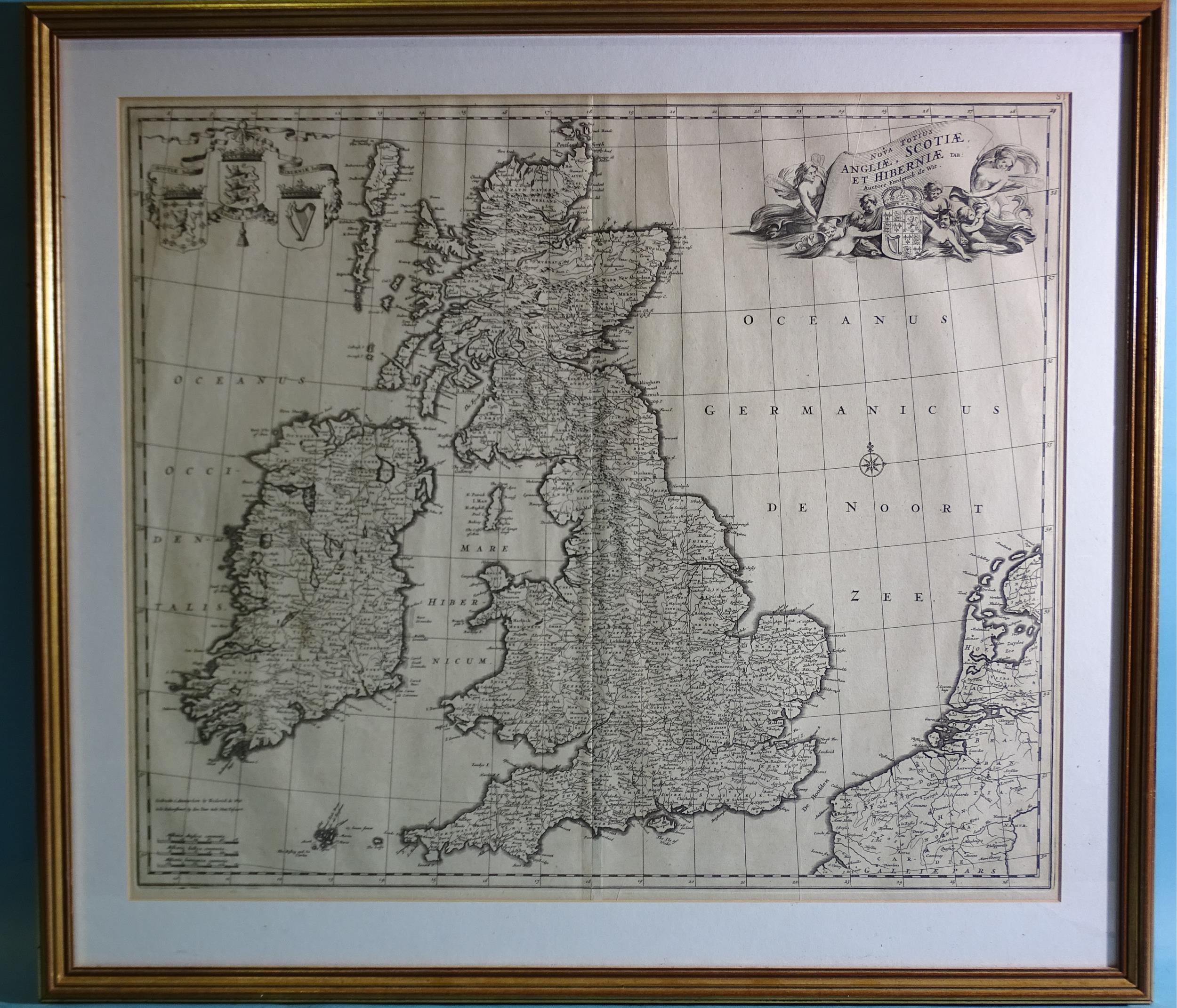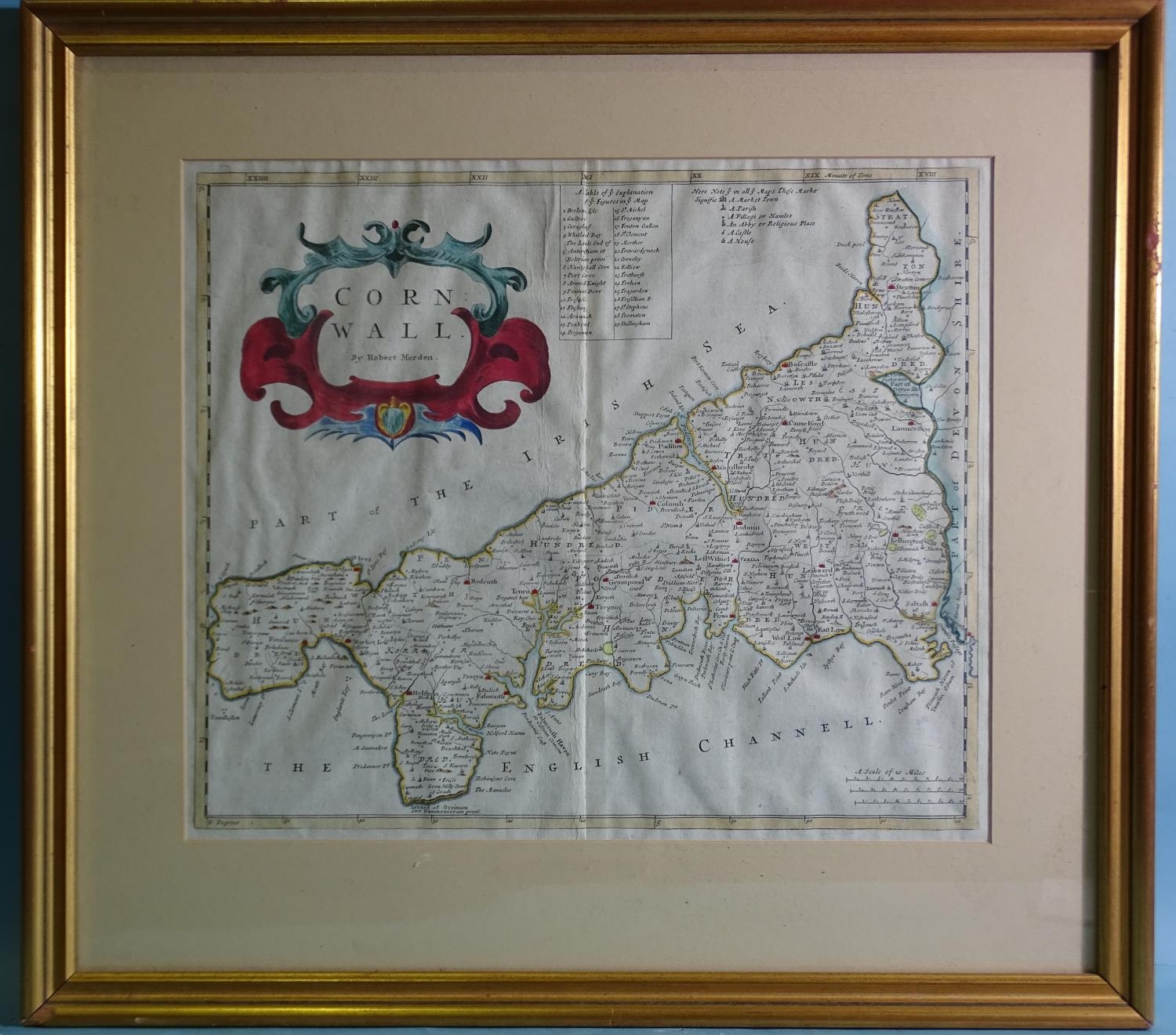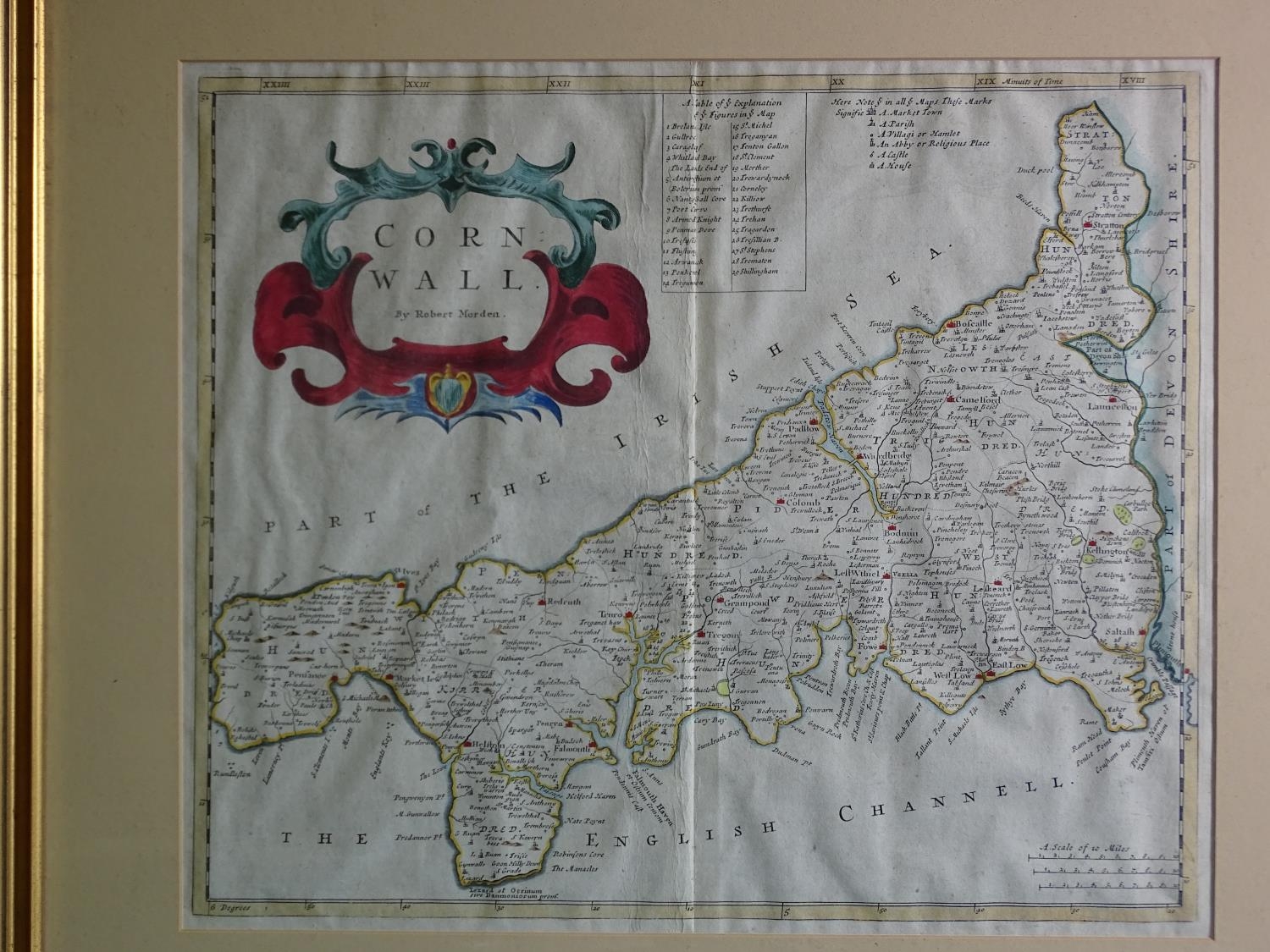 A Robert Morden hand-coloured map "Cornwall", 37 x 44cm, together with Frederick de Wit, "Angliae, Scotia et Hibernia", an uncoloured map of the British Isles, 49 x 57cm, (2).