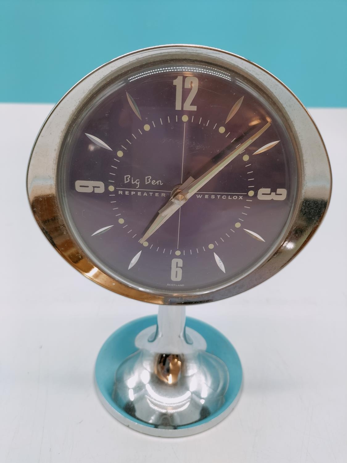 Vintage19cm Westclox Purple and Chrome 'Big Ben' Repeater Alarm Clock.