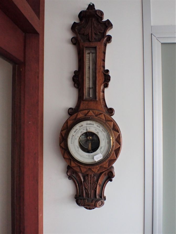 AN OAK CASED ANEROID BAROMETER