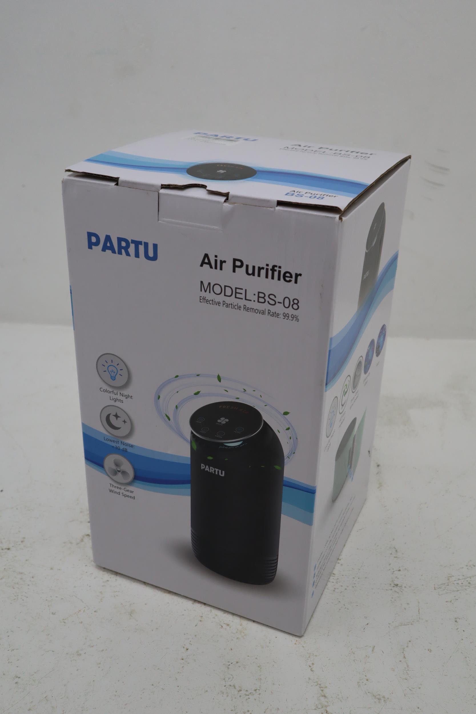 A Boxed Partu BS-08 Air Purifier, Powers on When Tested.