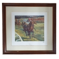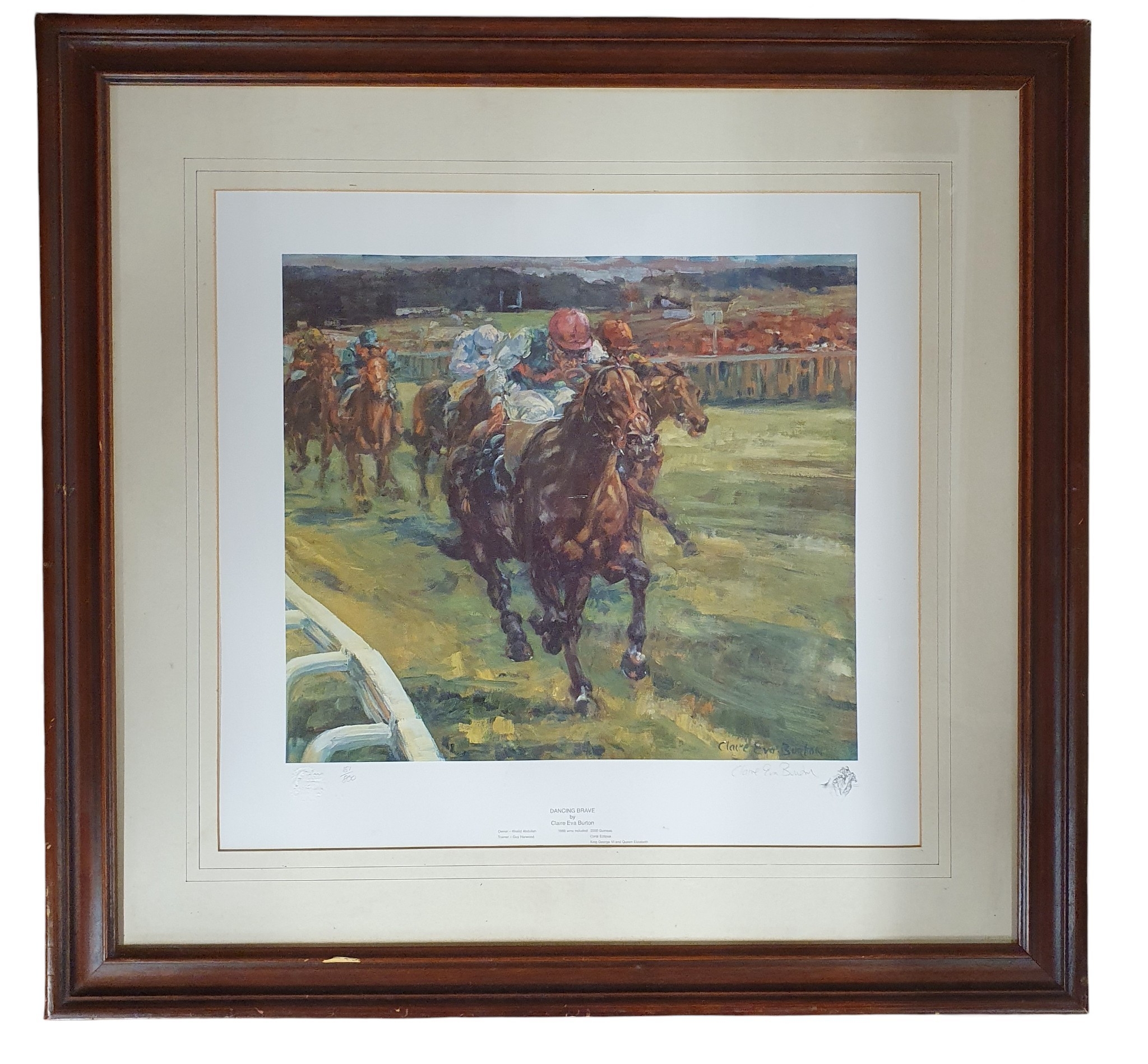 After Claire Eva Burton. A limited edition Print from an artist proof coloured Print of Dancing Brave. Signed in pencil in the margin. 69 x 72 cm approx.