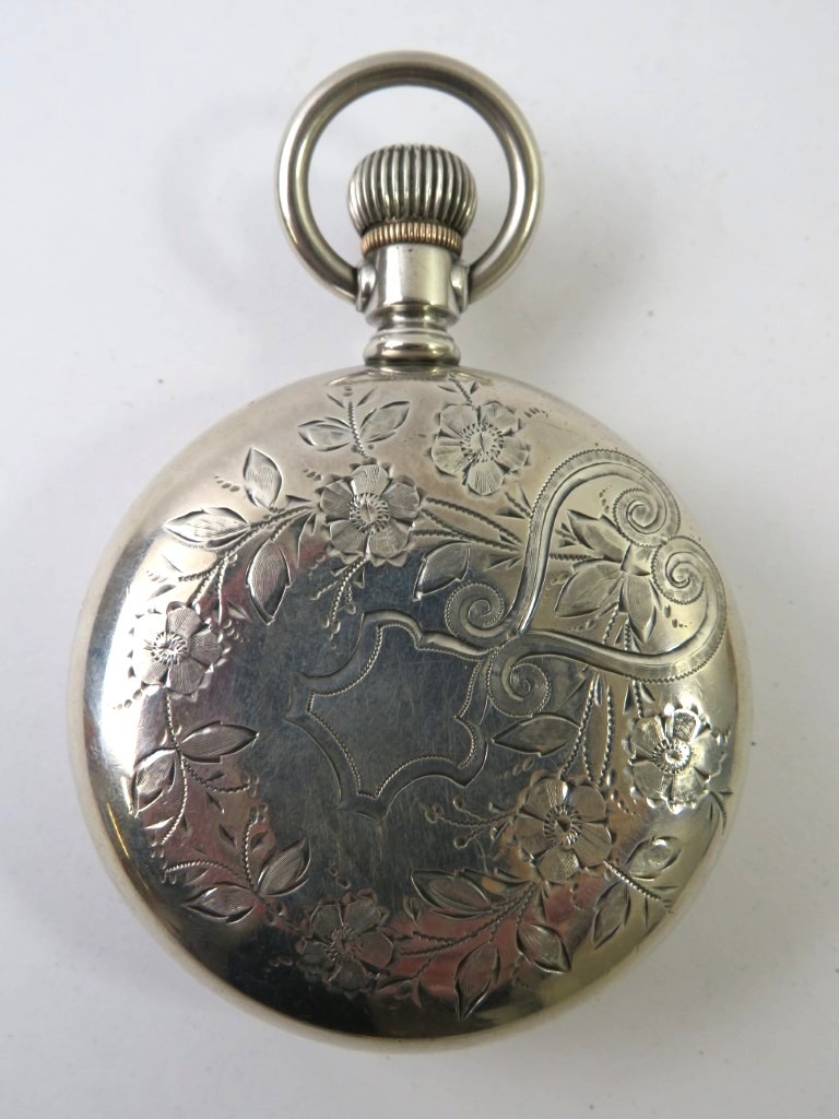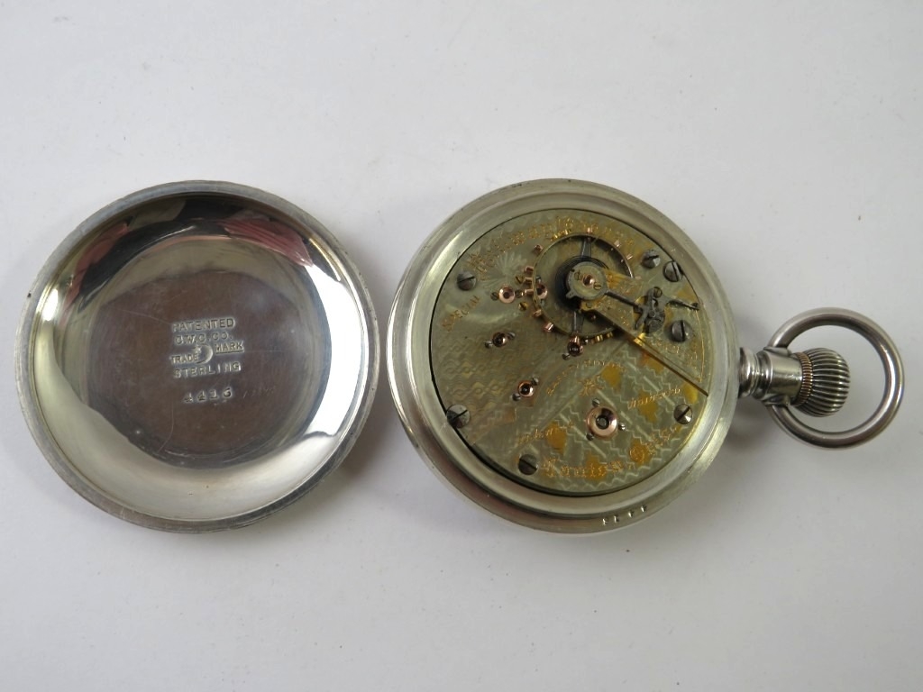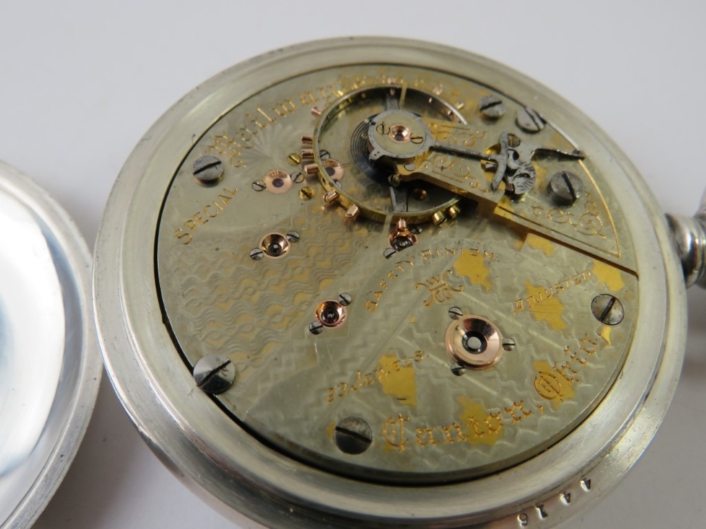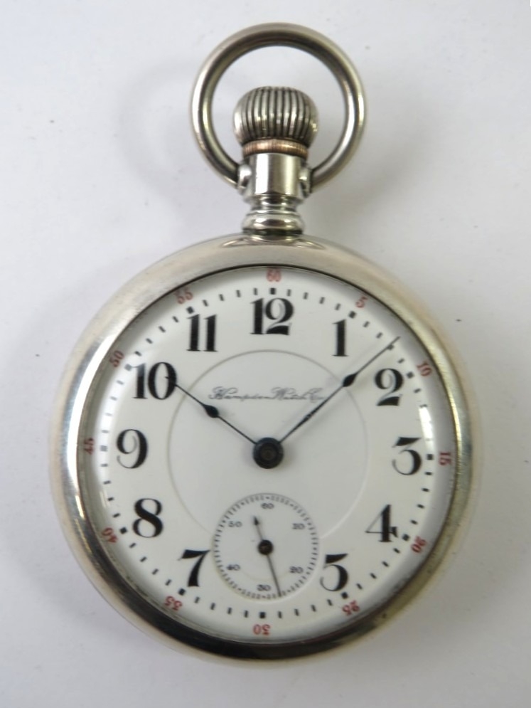 An American Hampden Watch Co Railway Special silver cased pocket watch. Movement number 1836924. Case diameter 52mm. Please note that Bentley's does not guarantee the future working of the movement