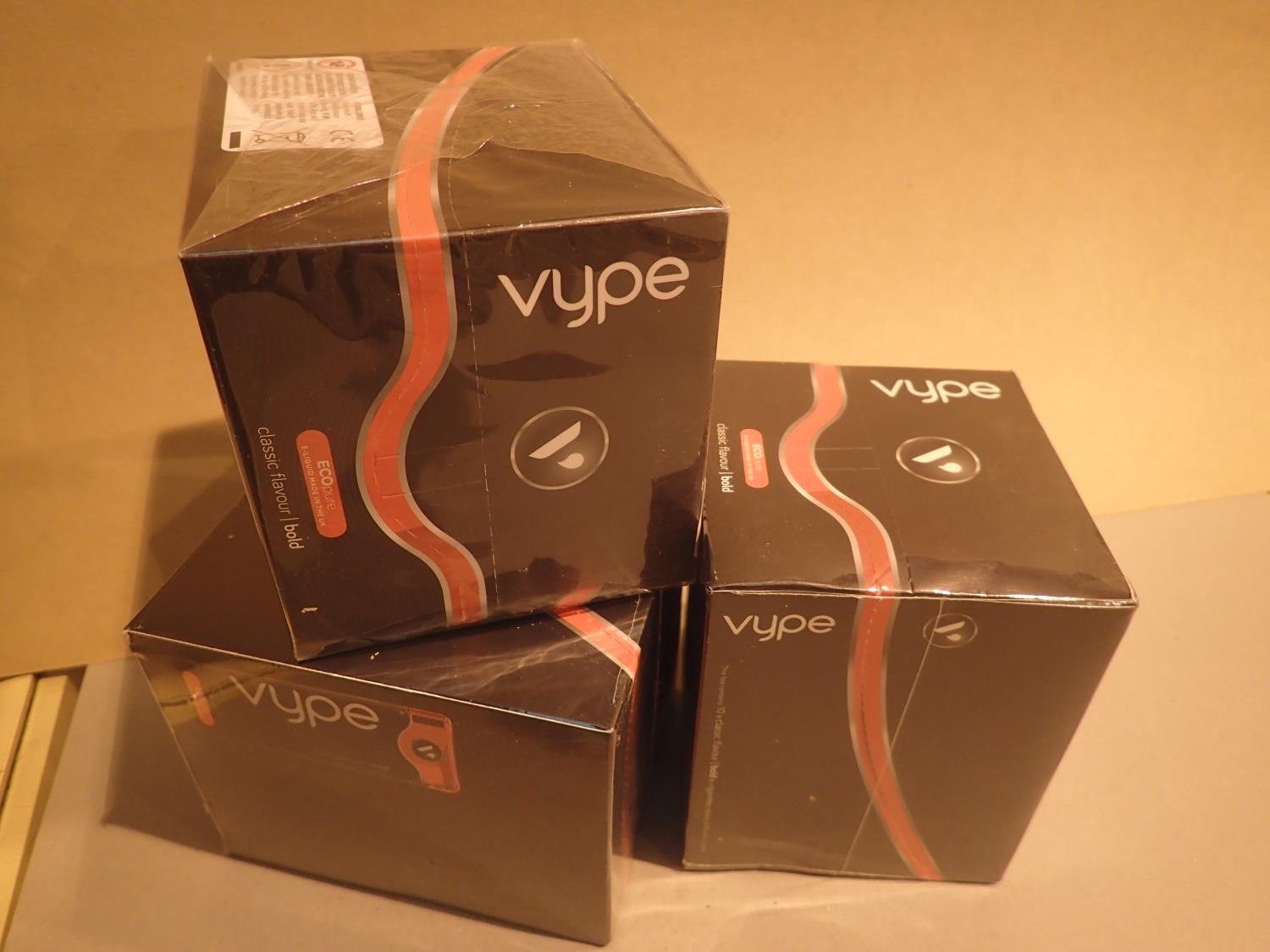 Three boxes of 10 Classic Flavour Bold Vype e cigarettes, factory sealed. Not available for in-house P&P, contact Paul O'Hea at Mailboxes on 01925 659133