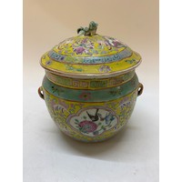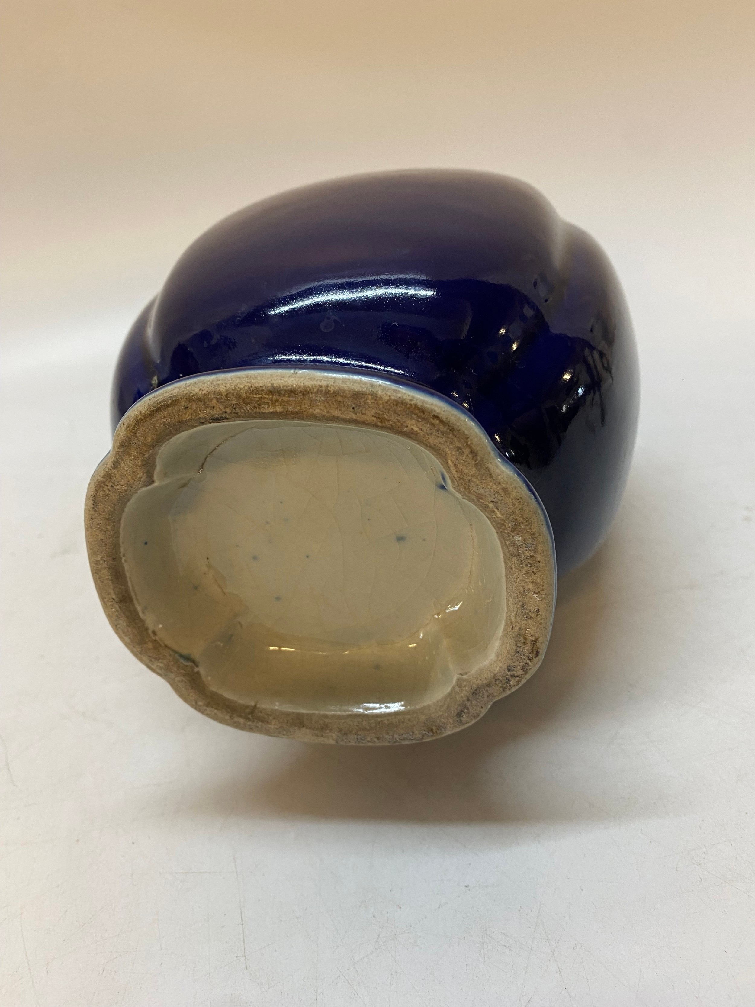 A Chinese blue glazed panelled vase with stylised handles - ...