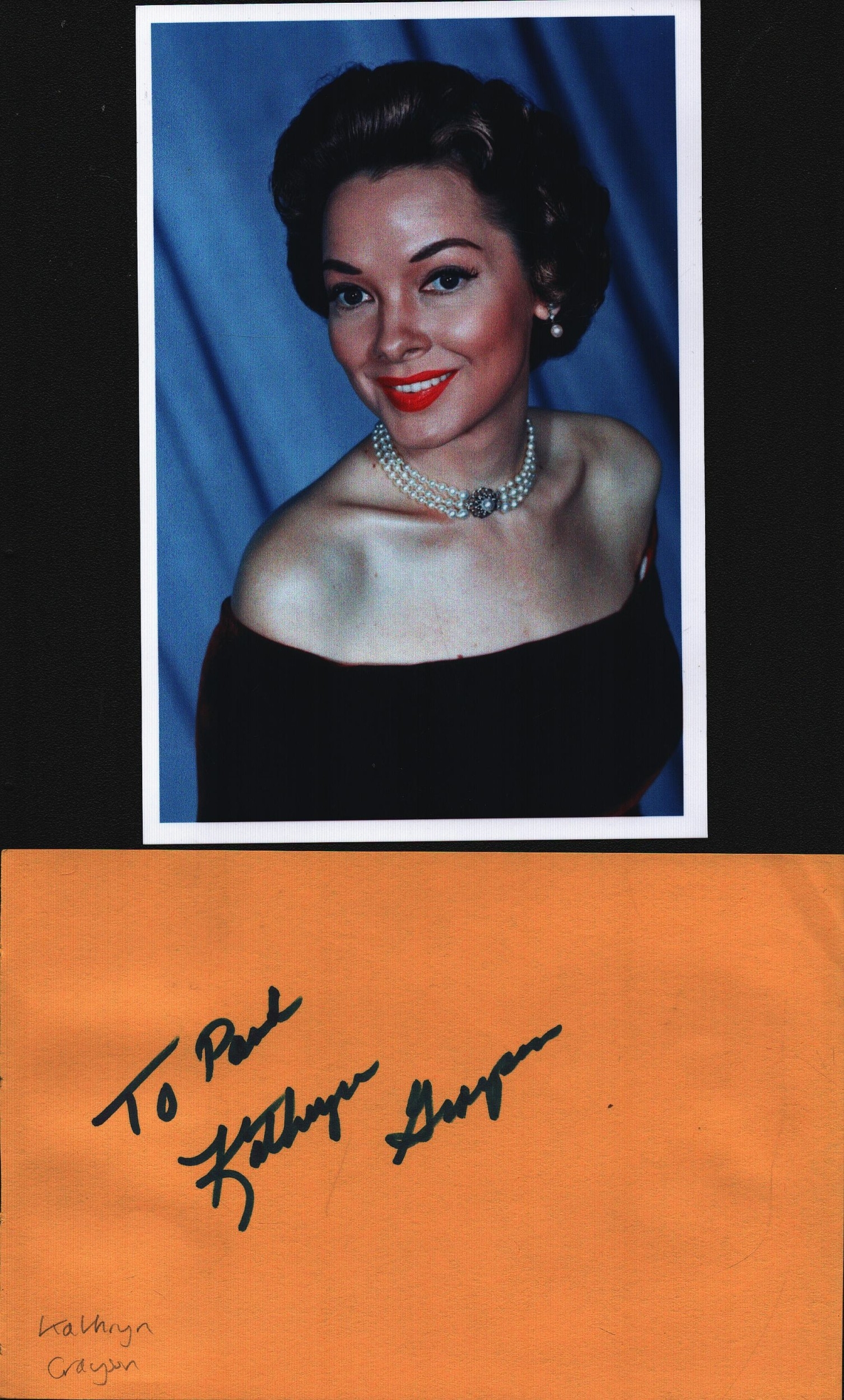 Kathryn Grayson signed 6x4 inch Album page Dedicated includes 6x4 inch colour photo unsigned.