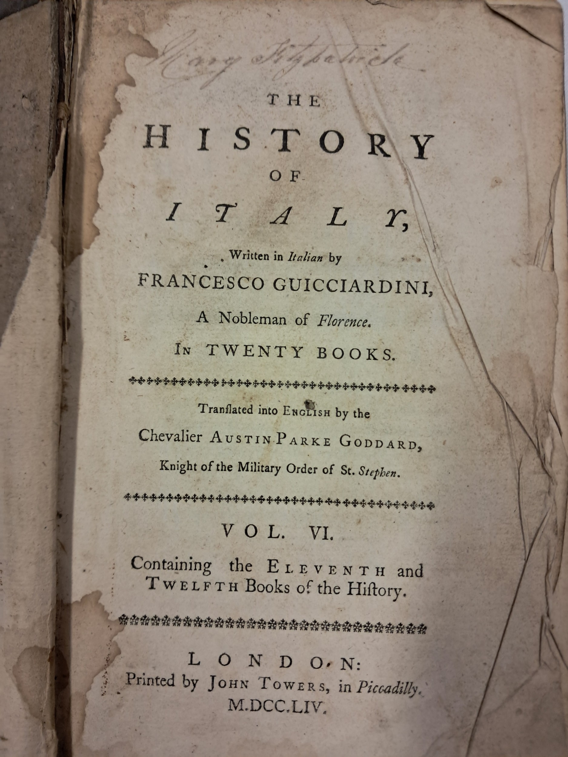 "The History of The Revolutions" 5th Edition - 2 Vols - including a Memorial by Earl Stanhope, Published 1836 and "The History of Italy" Volume VI (1754)