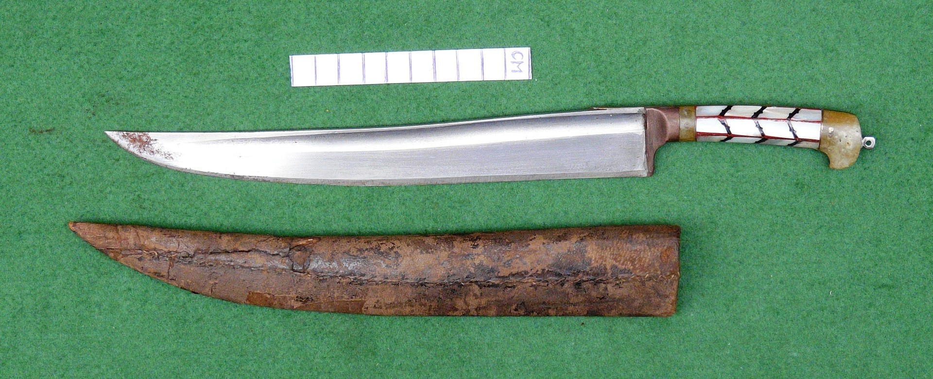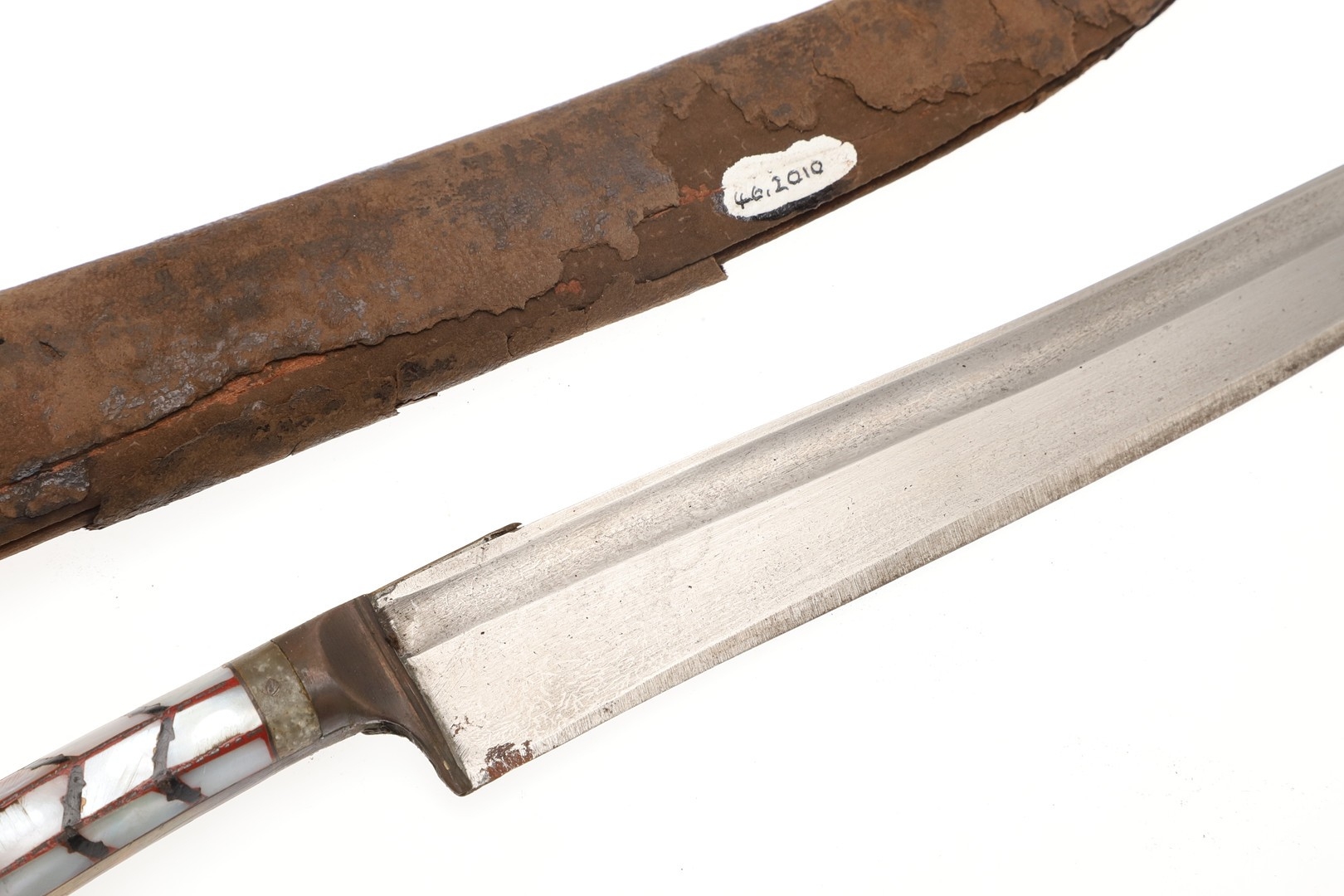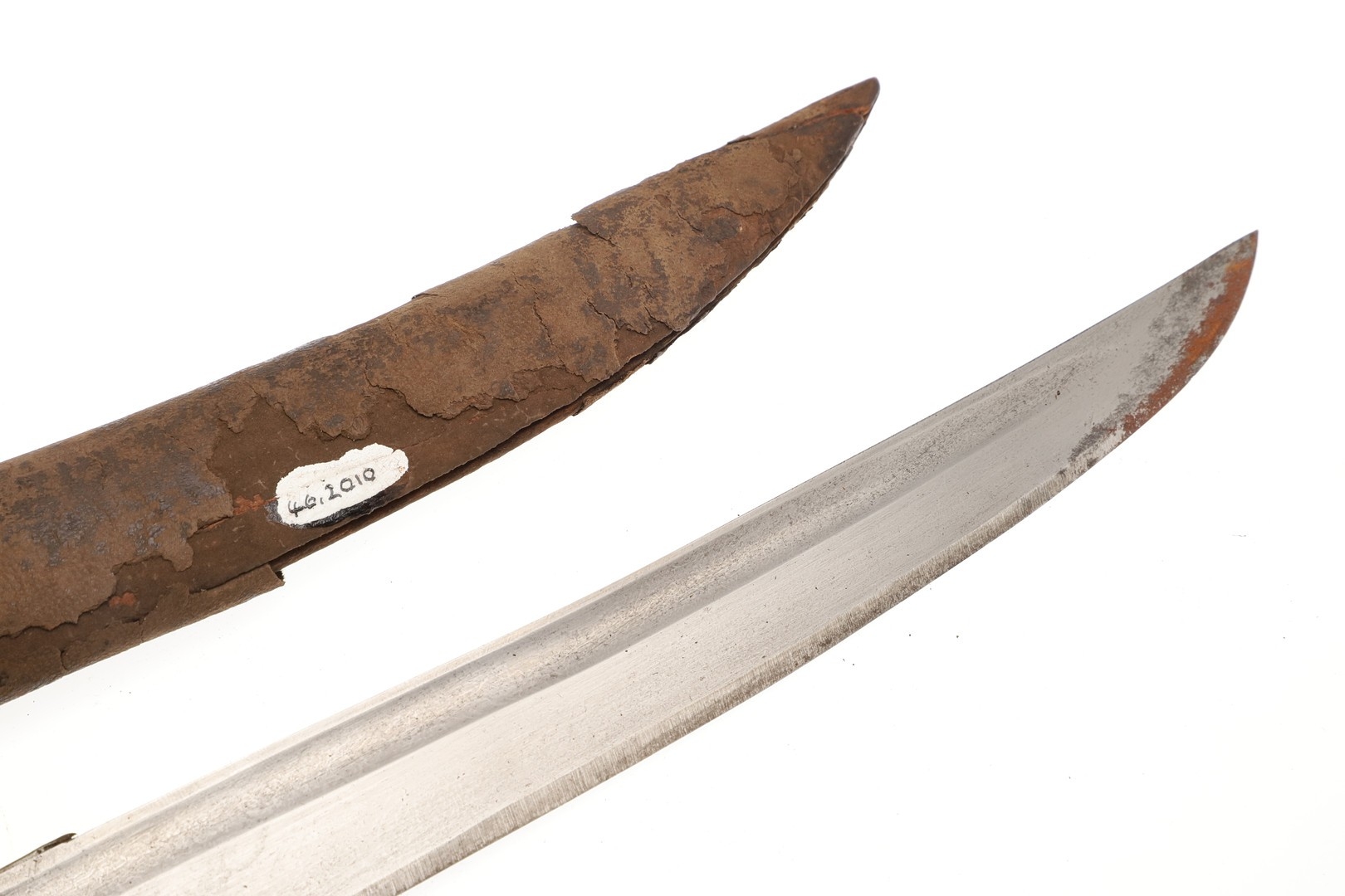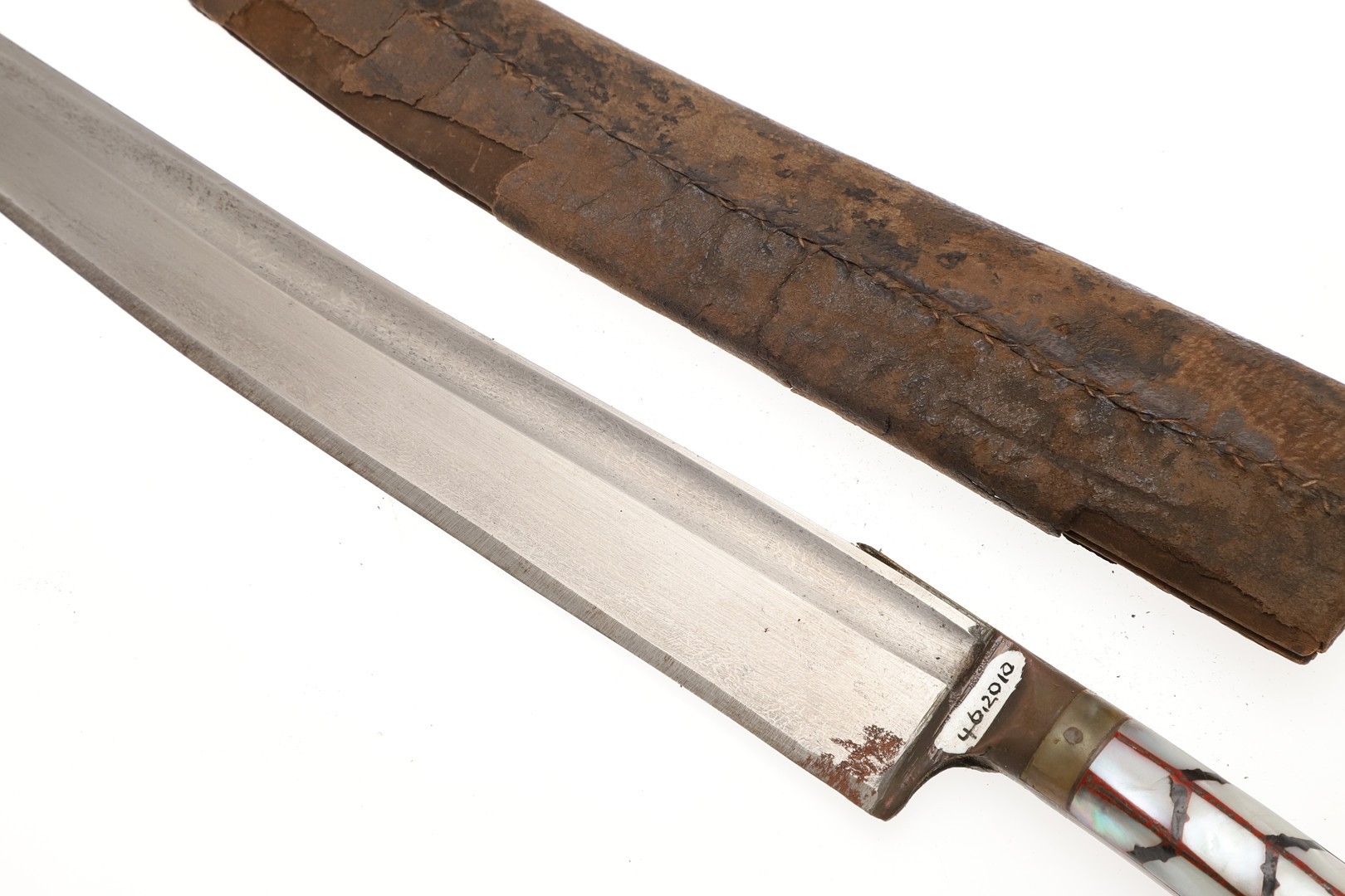 Splits and scuffing to scabbard, slight marking to blade. Collection numbers.