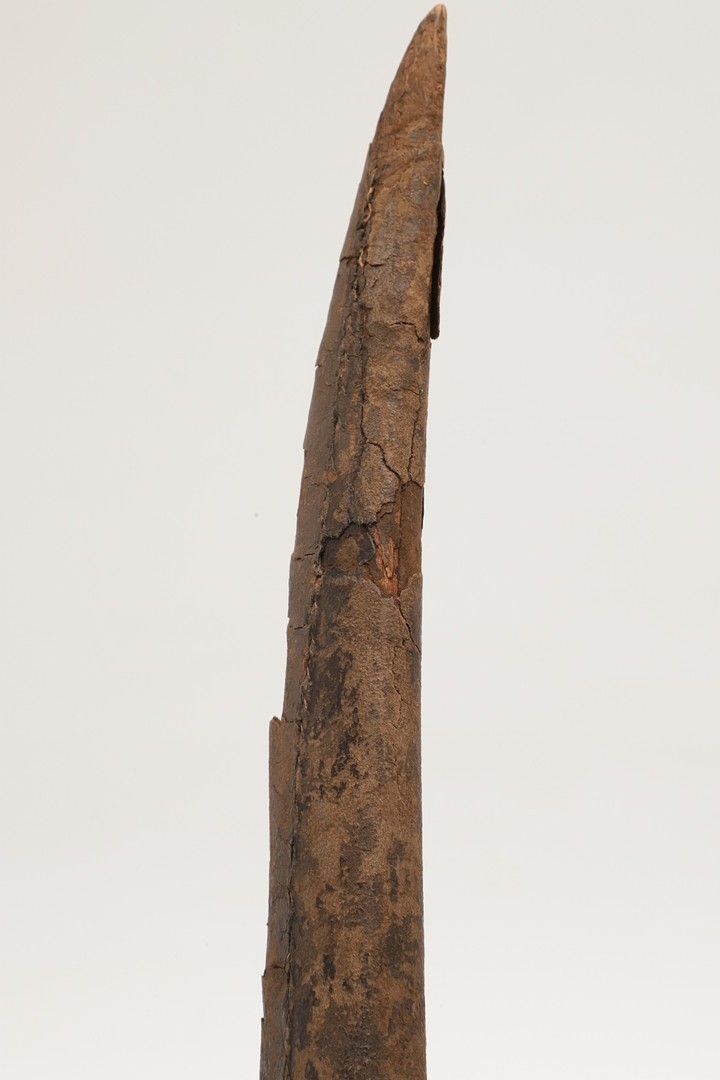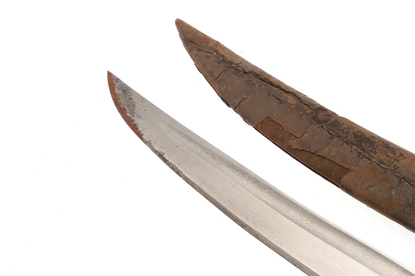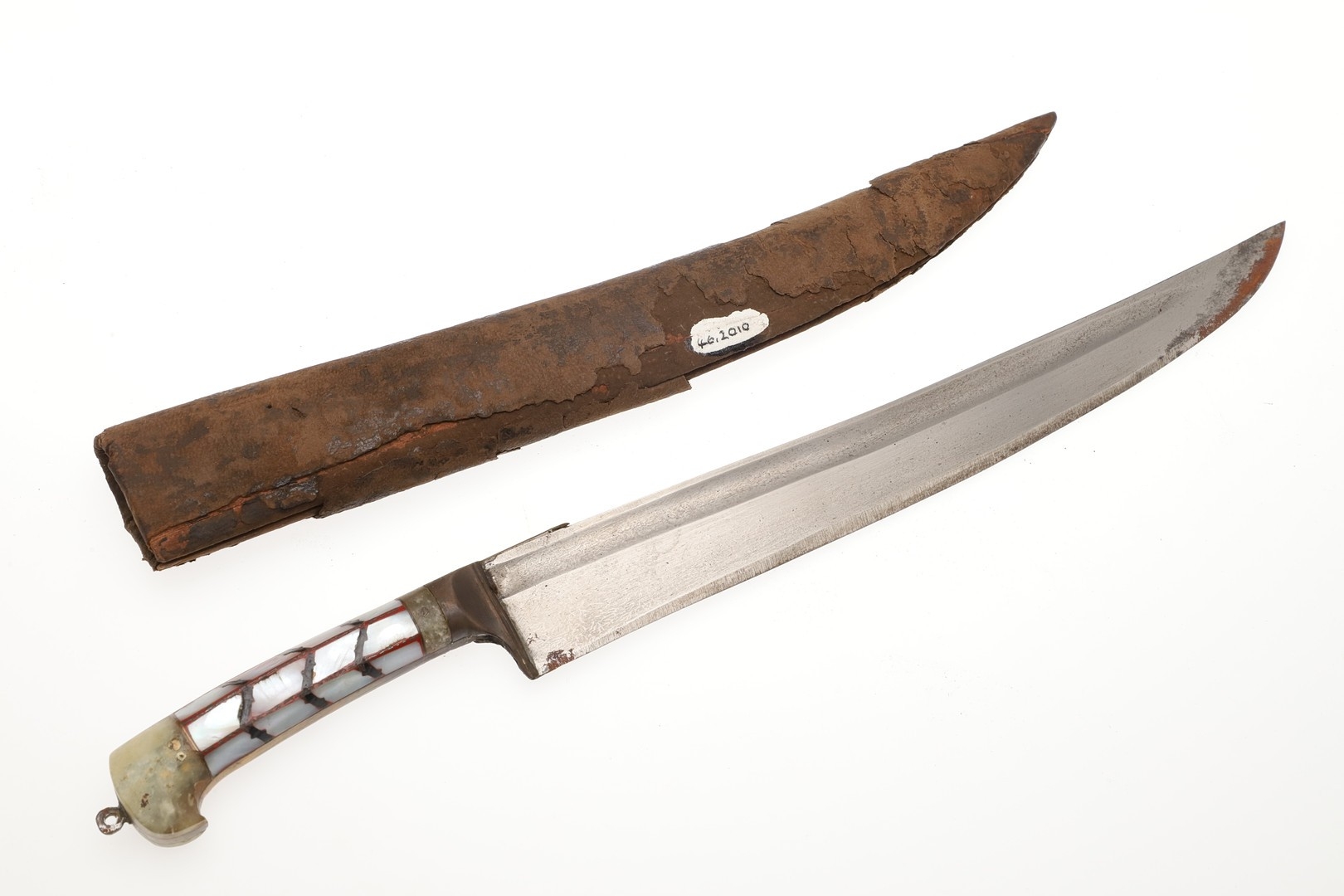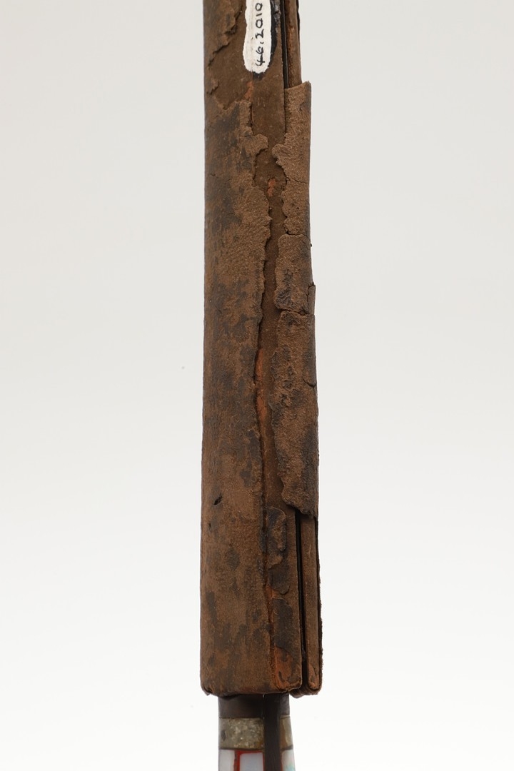 Splits and scuffing to scabbard, slight marking to blade. Collection numbers.