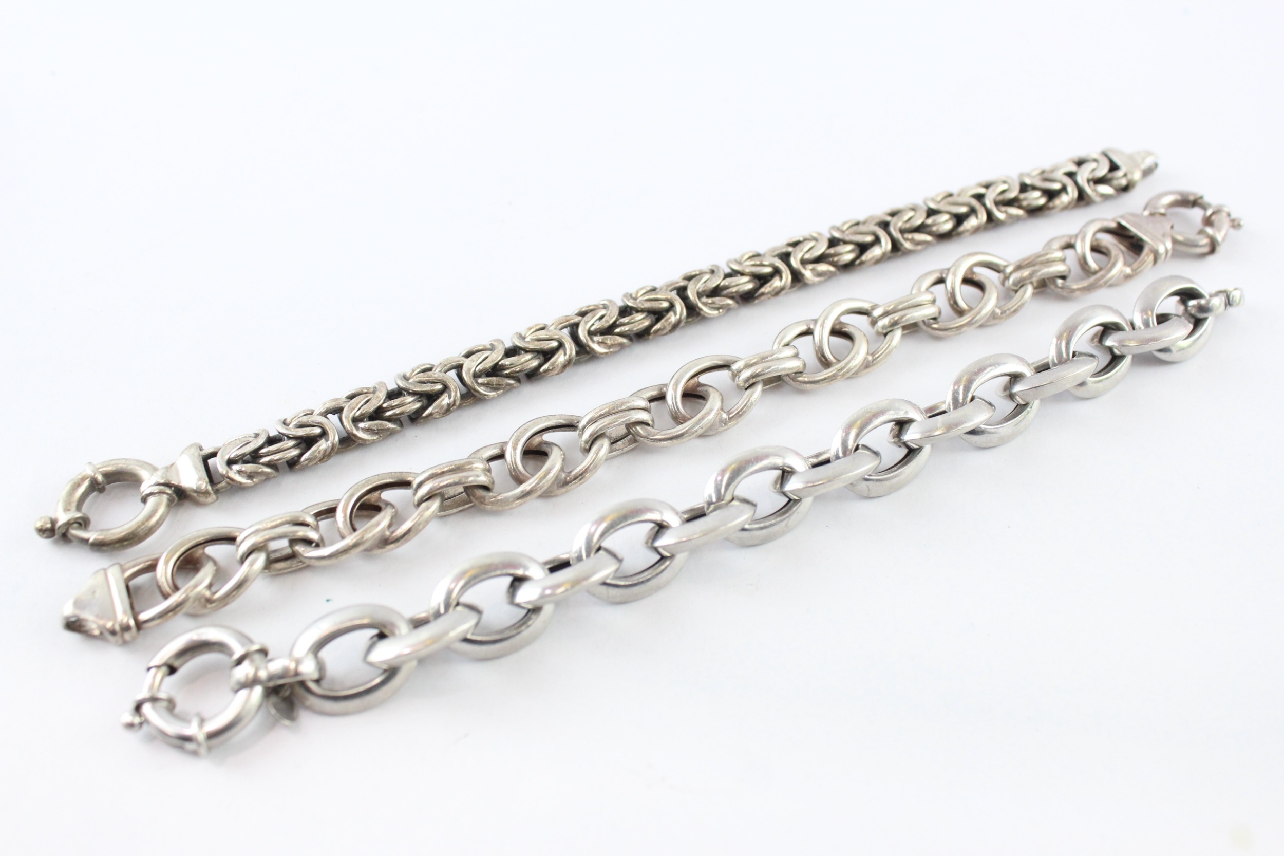 Collection of Sterling Silver Bracelets, inc. Buoy Clasp, Byzantine, Belcher x 3 (103g)