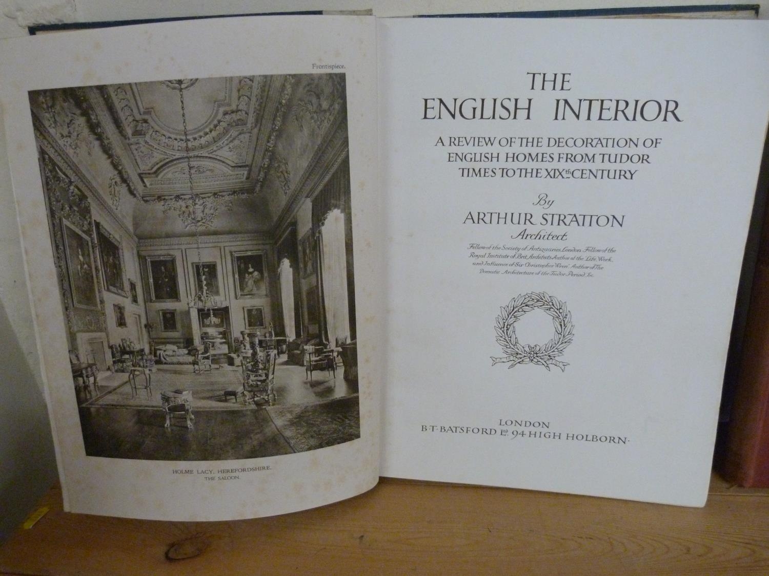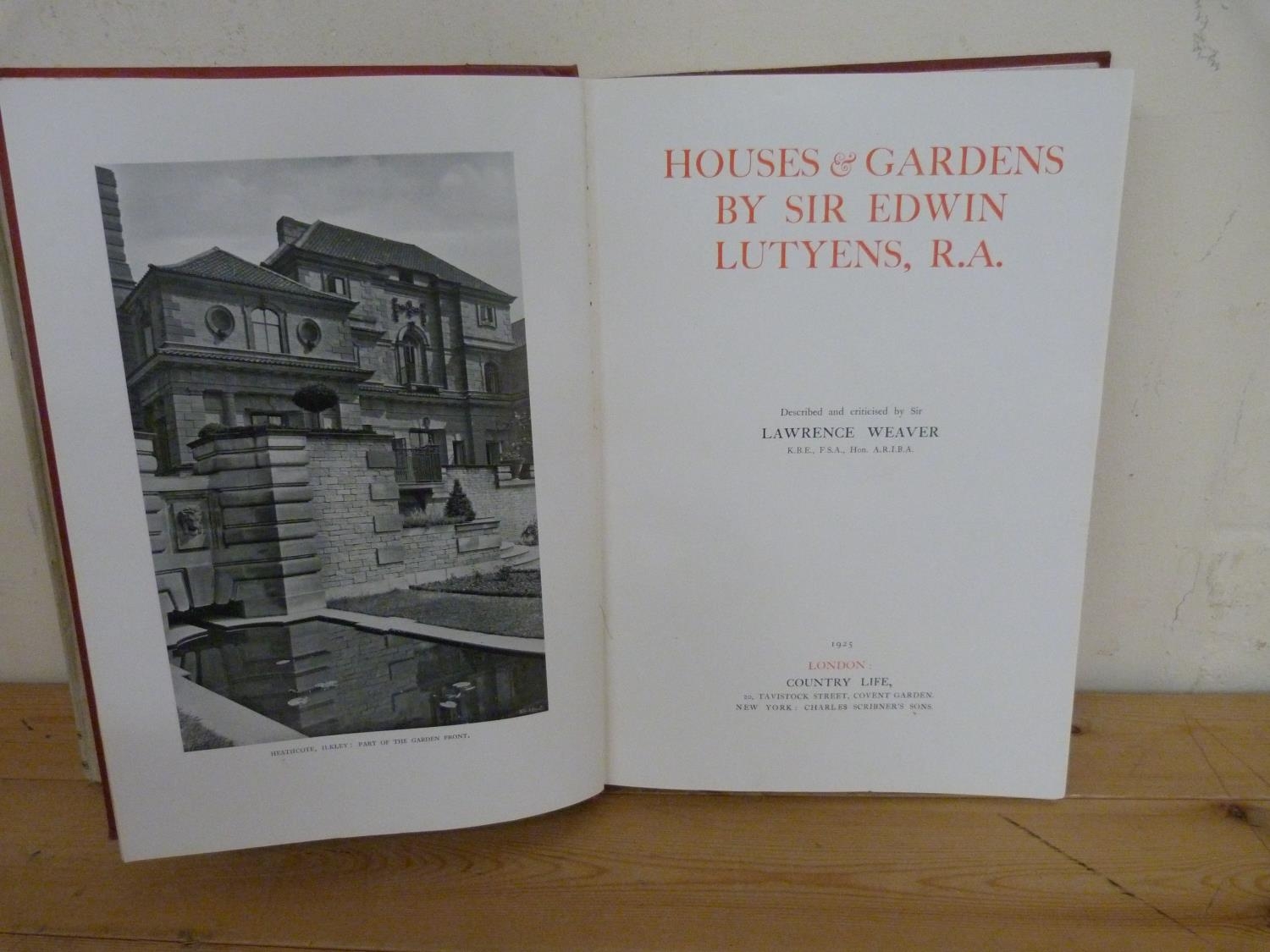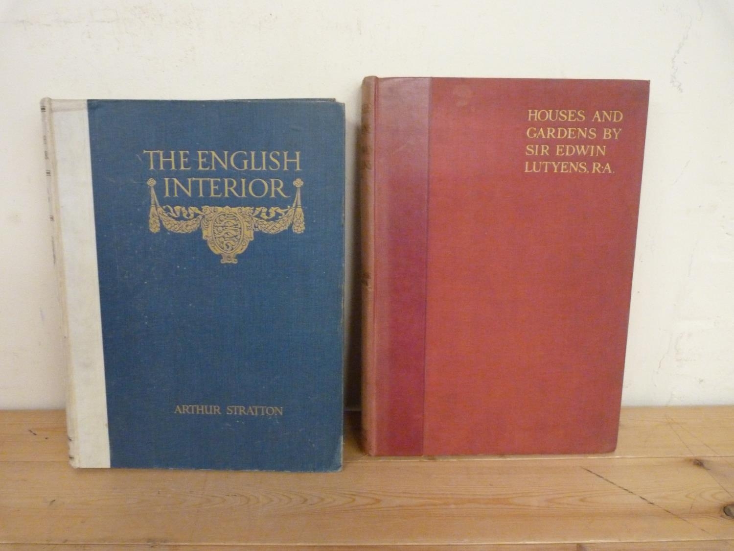 WEAVER LAWRENCE (Ed). Houses & Gardens by Sir Edwin Lutyens. Many illus. Folio. Orig. qtr. maroon cloth. 1925; also Arthur Stratton, The English Interior, col. & other illus., folio, qtr. cream cloth (some splitting), Batsford, n.d. (2).