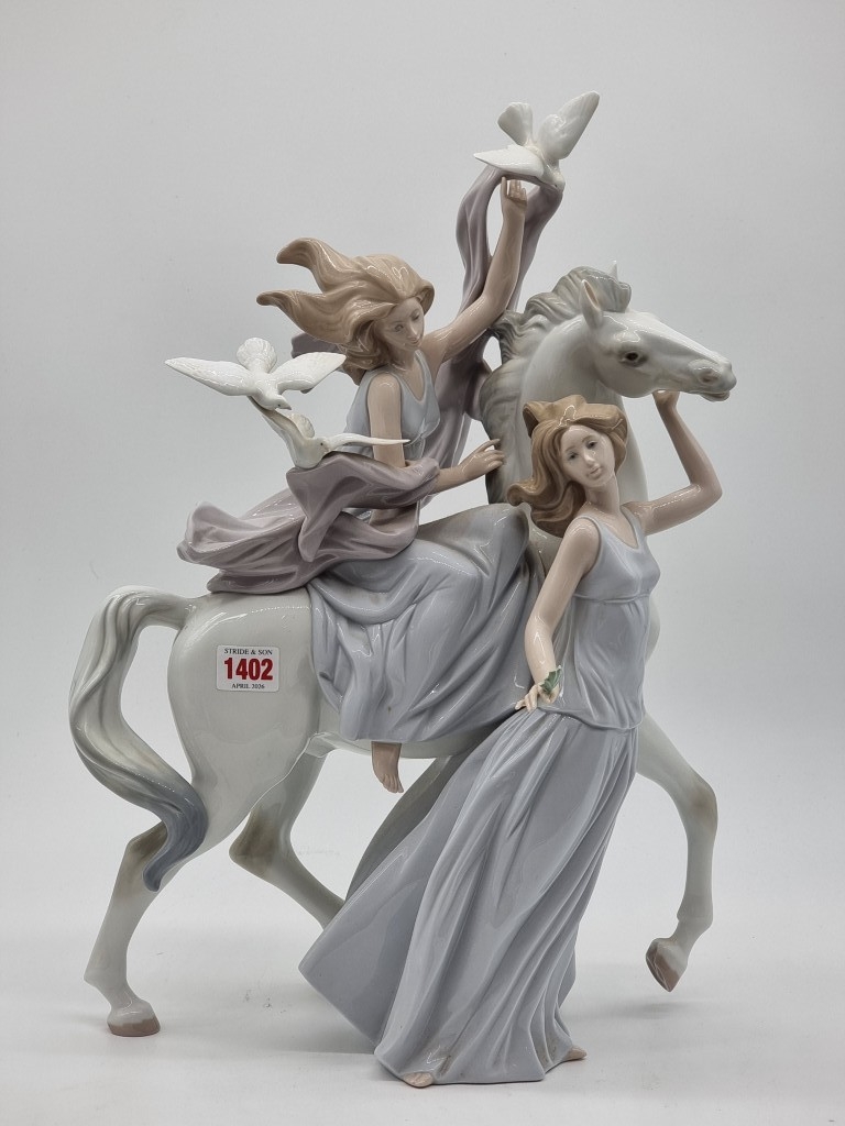A large Lladro porcelain figure group of ‘Peace & Liberty’, 48cm high.